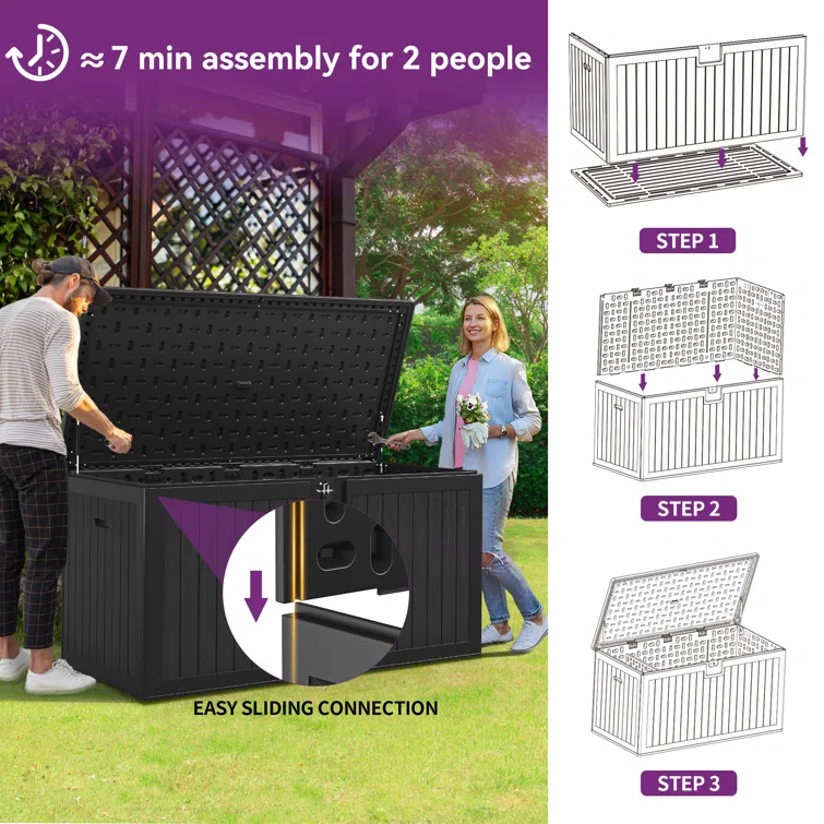 Winado 22'' W 51 Gallons Water Resistant Plastic Deck Box