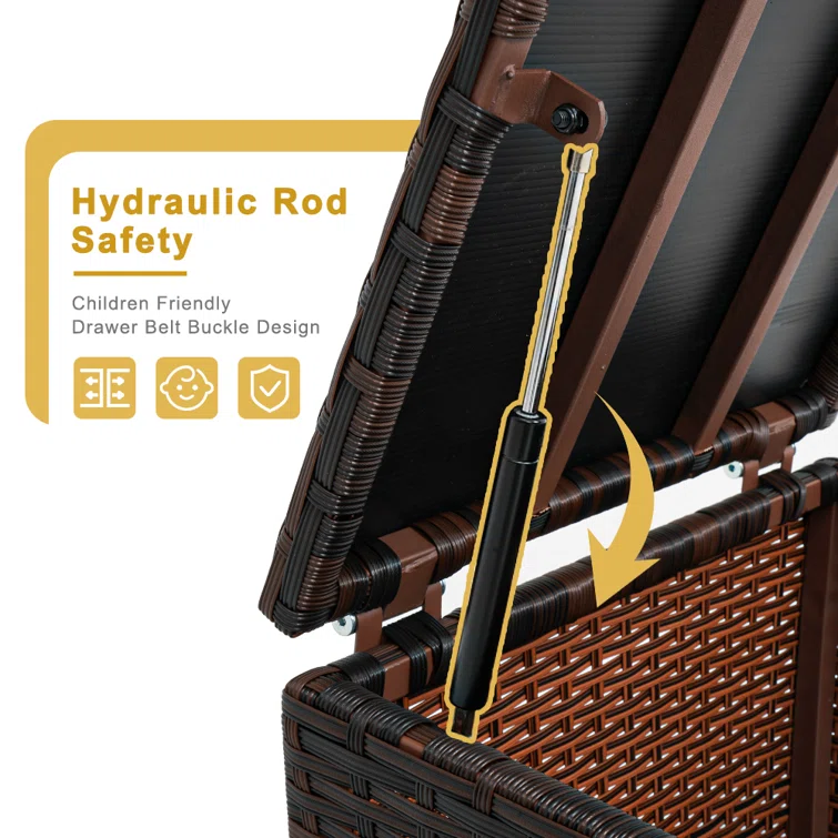 Rattaner 150 Gallons Resistant Wicker Deck Box with Gas Spring Lid and Zippered Waterproof Inner Bag