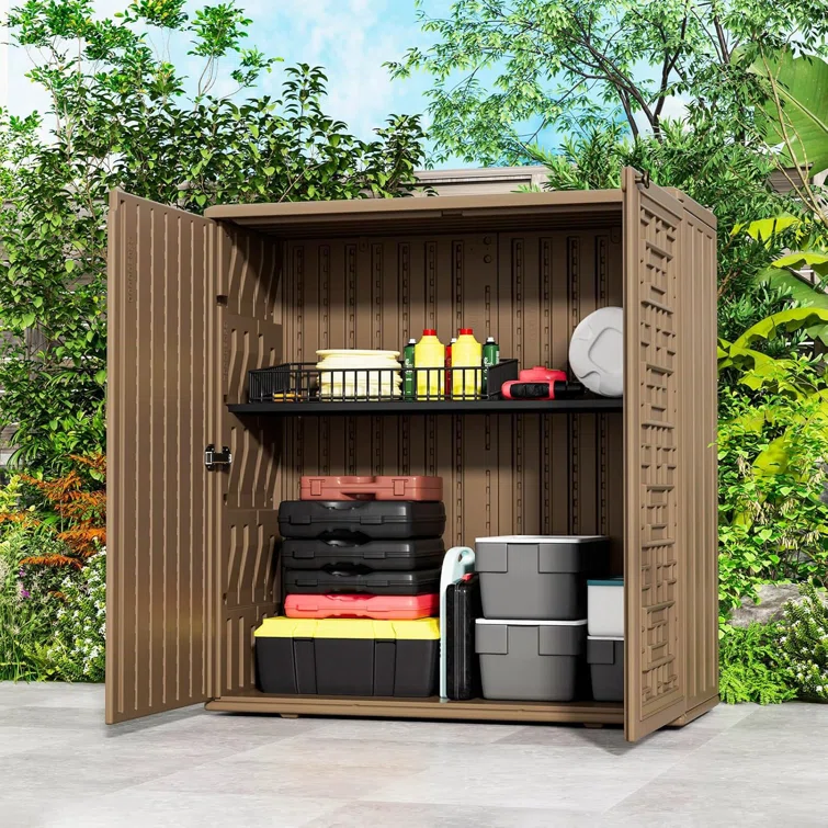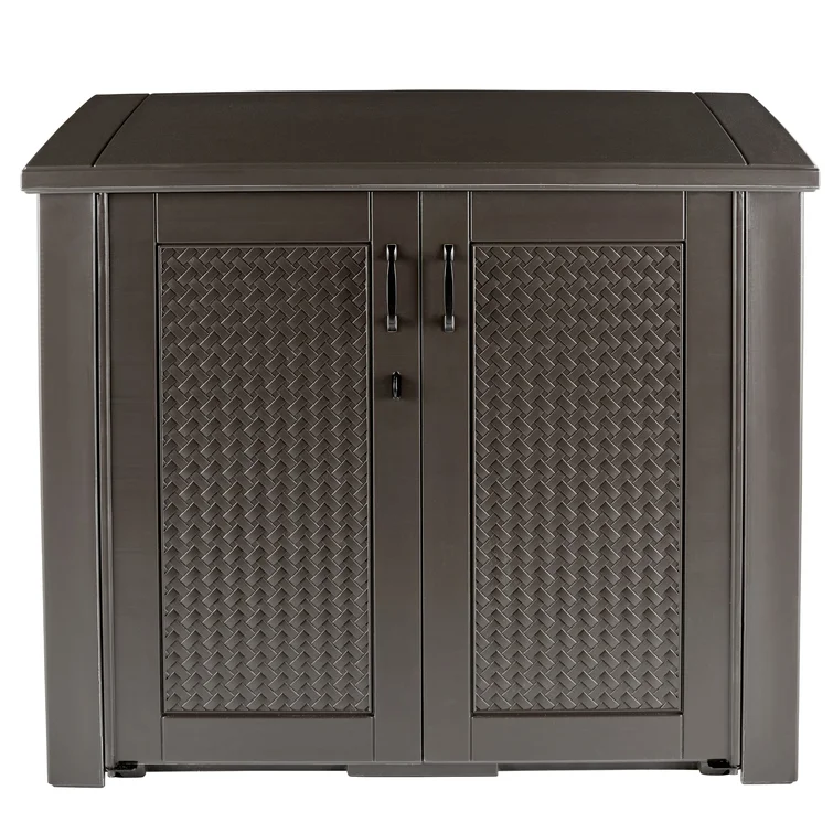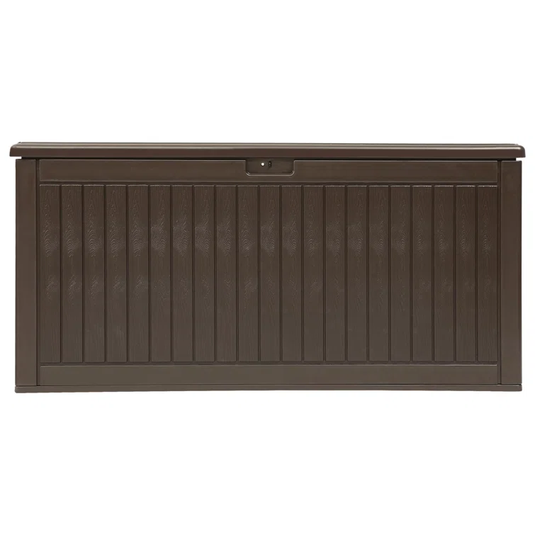 Patio 123 Gallon Water Resistant Plastic Lockable Cabinet Deck Box in Chocolate