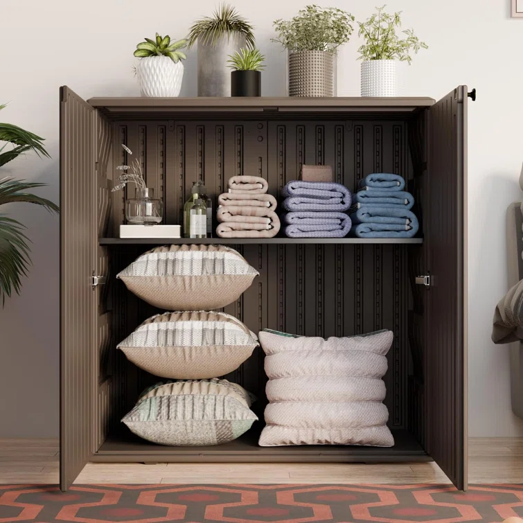 Arts Box Trading 14.96 W 60 Storage Cabinet with Doors and Shelves, 60 Gallon Indoor & Outdoor Deck Box