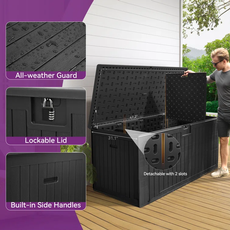 Winado 47'' W 120 Gallons Water Resistant Plastic Lockable Deck Box