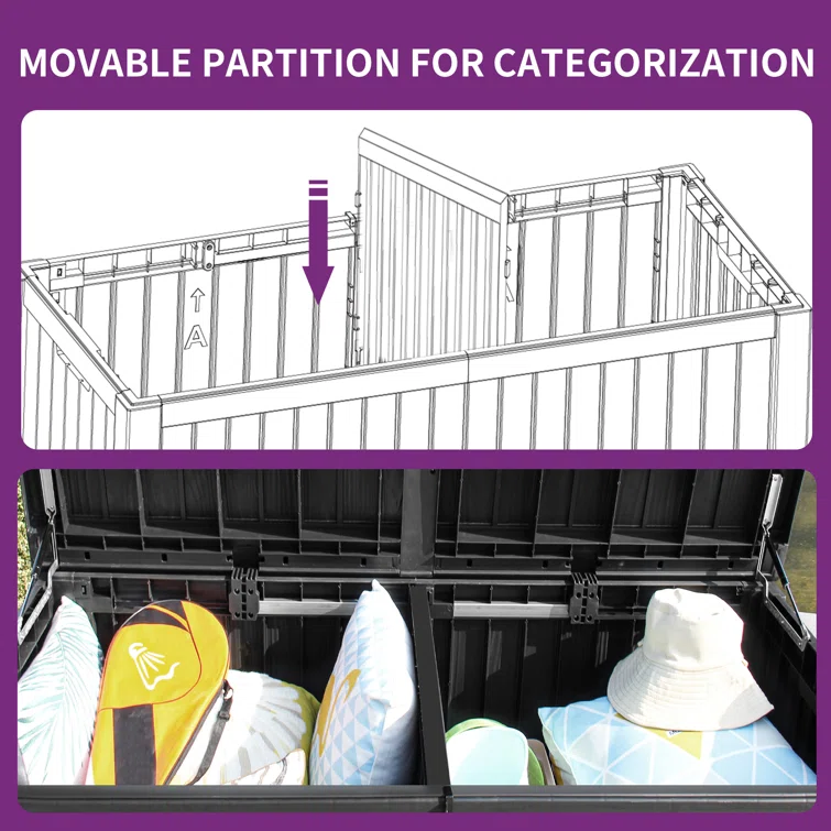 YITA 150 Gallon Large Outdoor Storage Deck Box with Built-in Divider