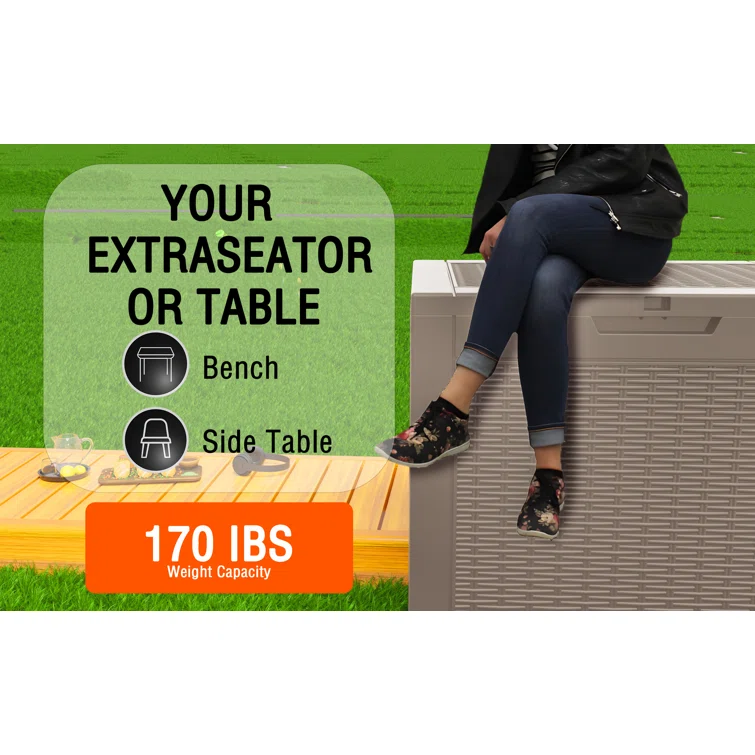 Edrosie Inc 69.6'' W 260 Gallons Water Resistant Resin Lockable Deck Box