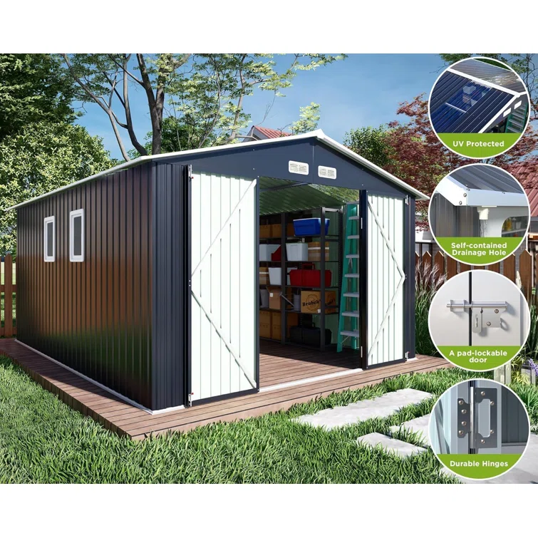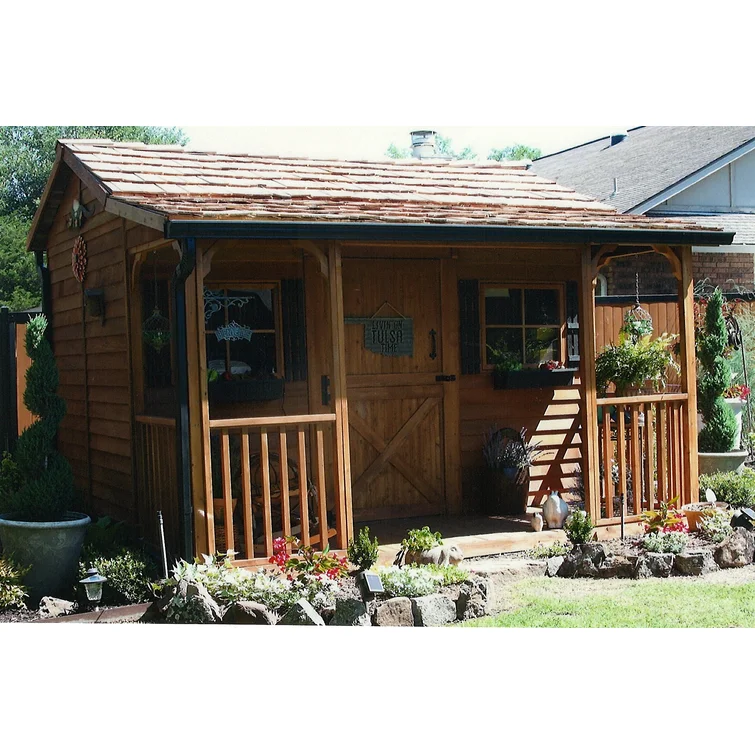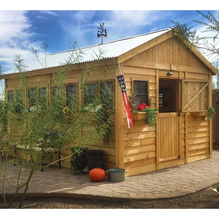 12 ft. W x 16 ft. D Cedar Wood Sunshed Garden Shed with Metal Roof