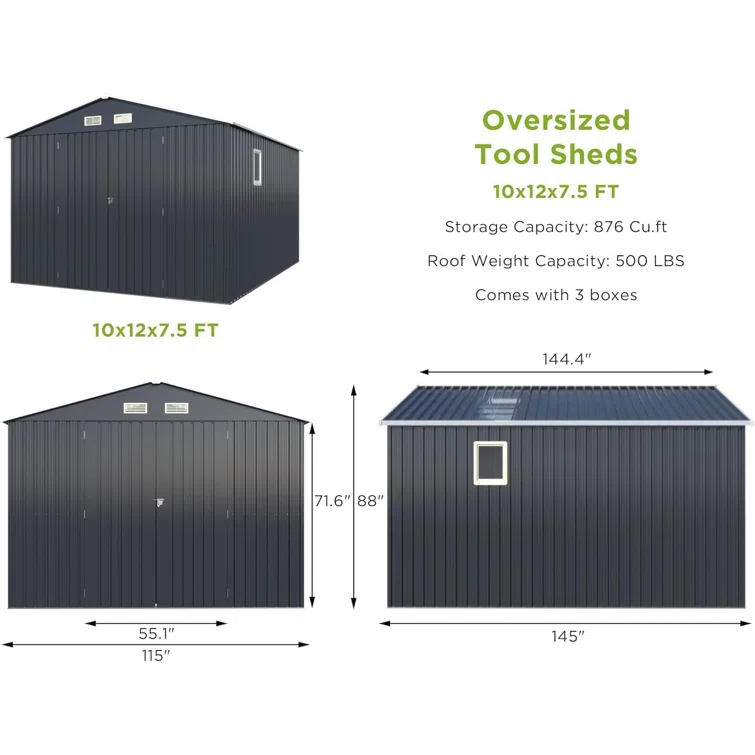 6 Ft. W X 3 Ft. D Galvanized Steel Horizontal Garage Shed