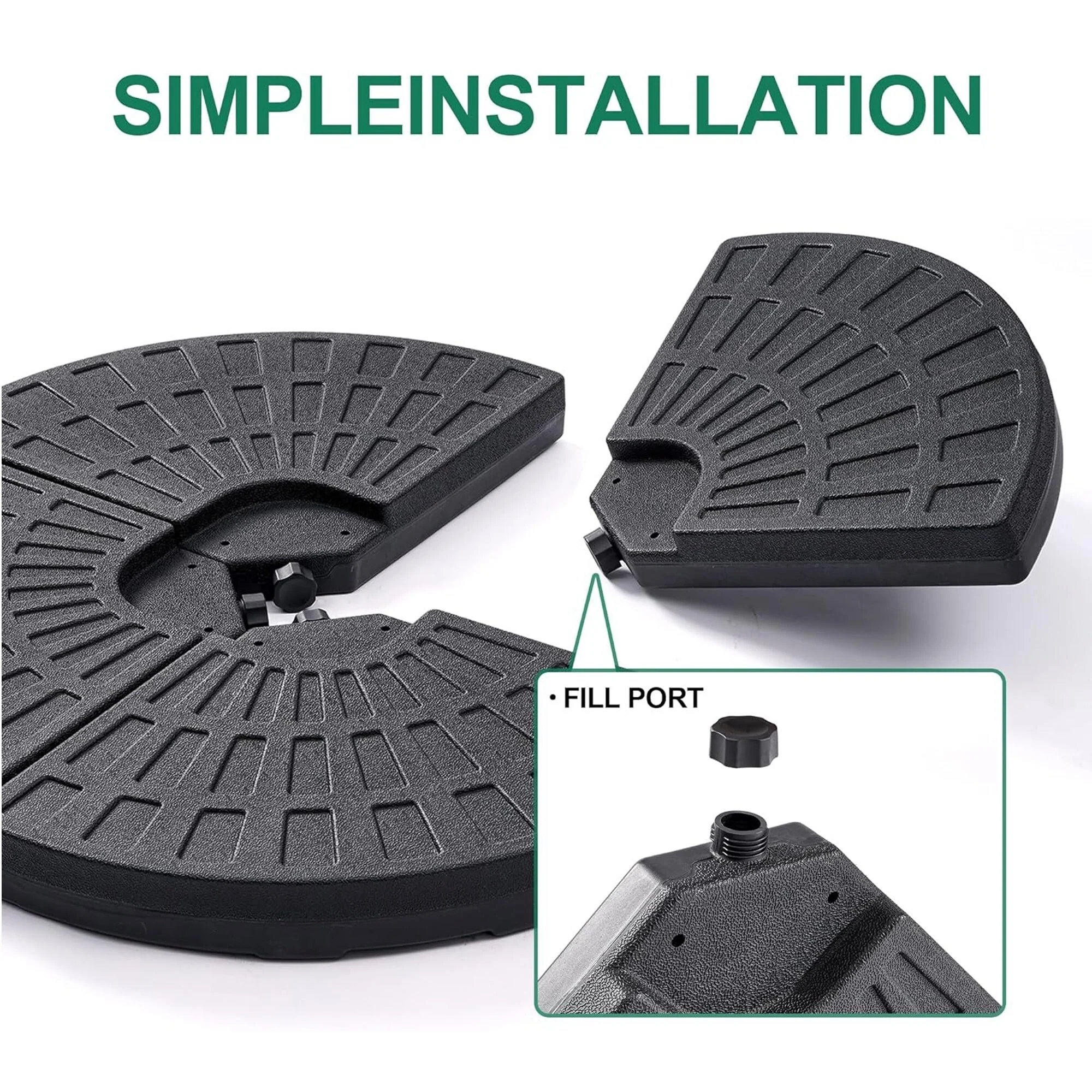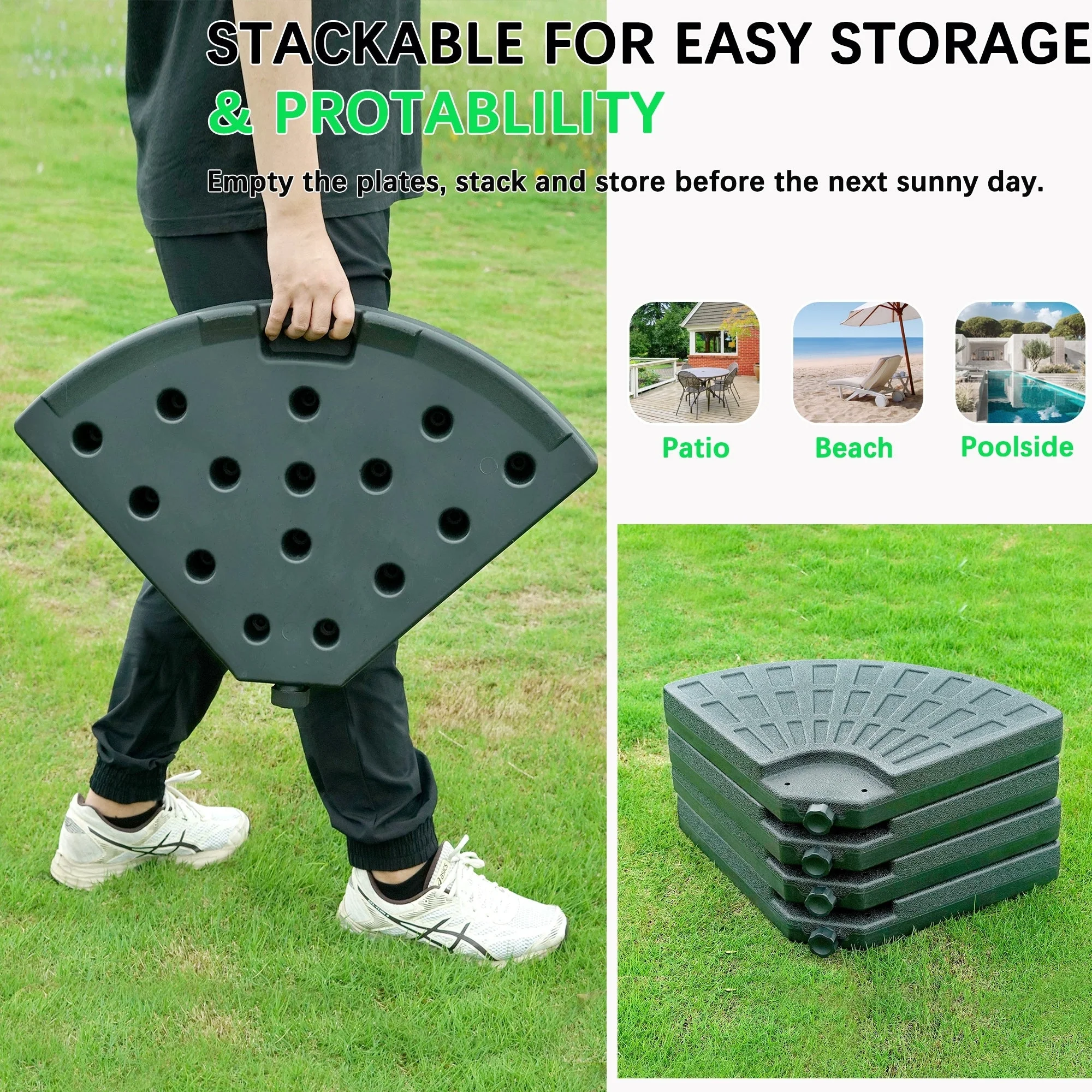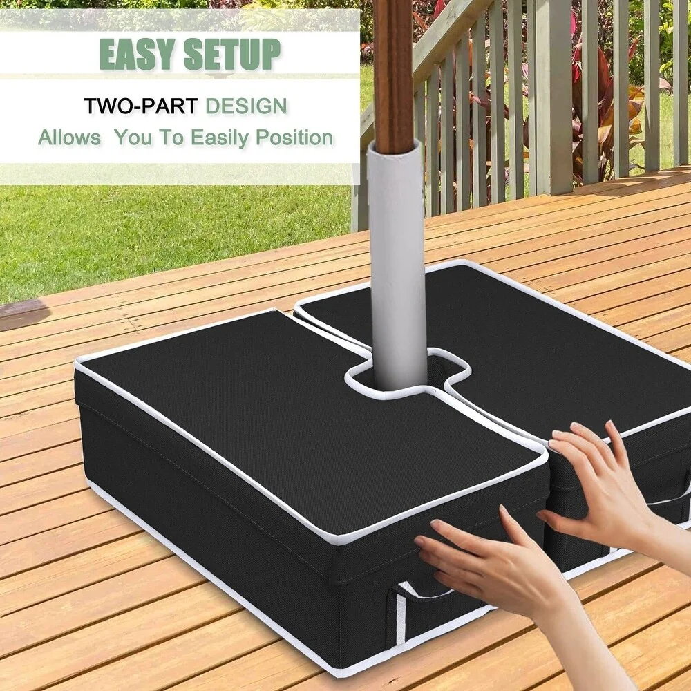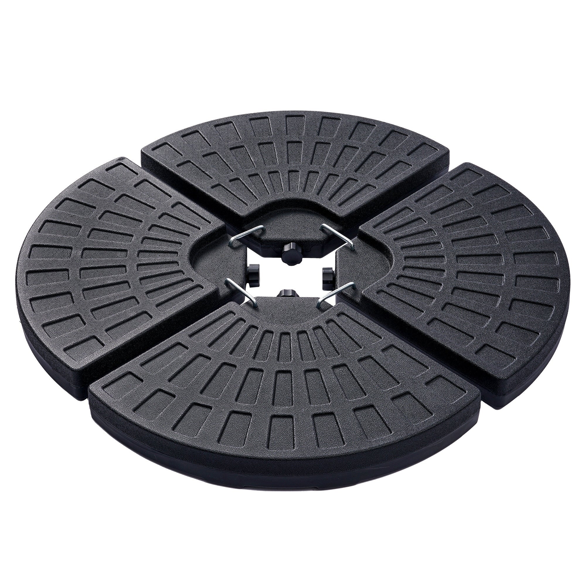 4-Piece Fillable Umbrella Base Stand w/Carry Handles, Round Plastic Patio Umbrella Base Stand, Base Connector Hooks