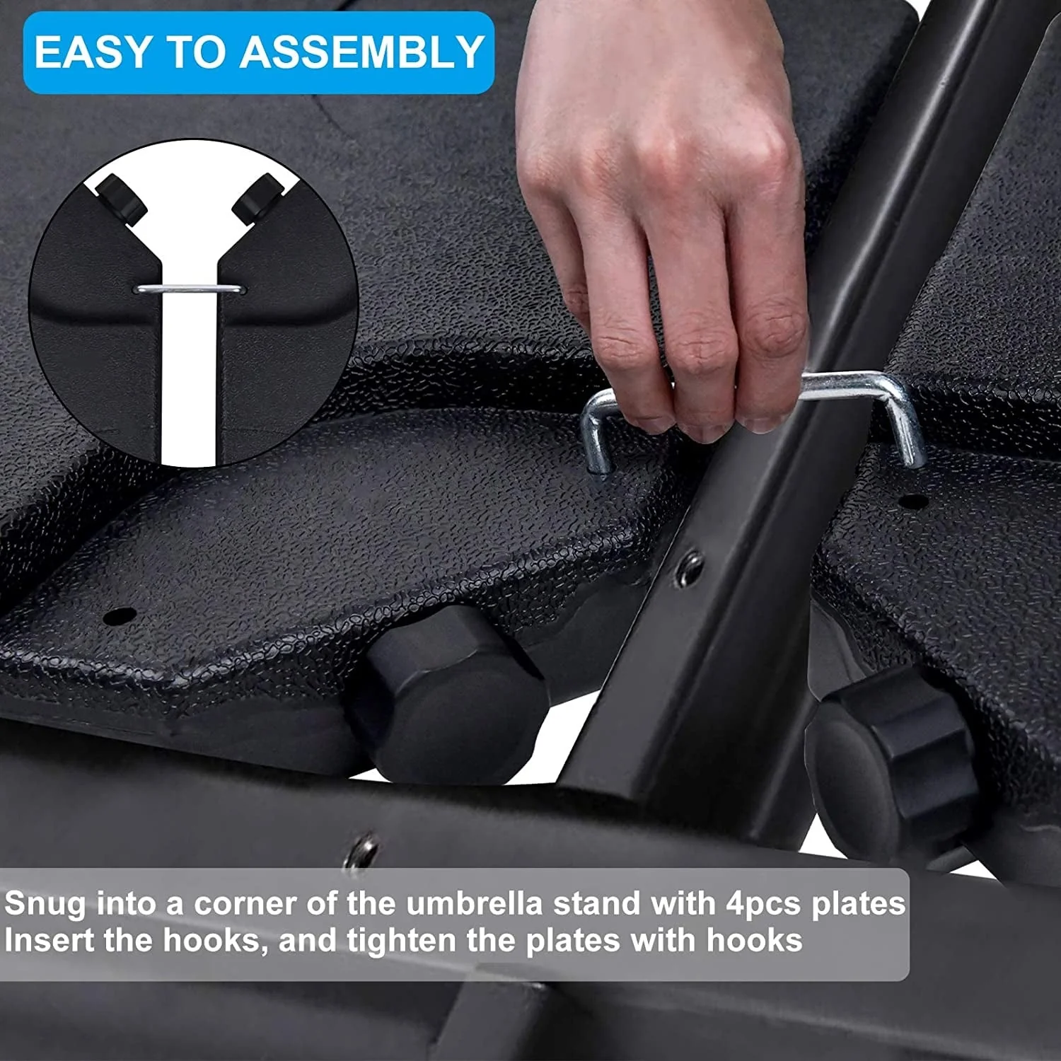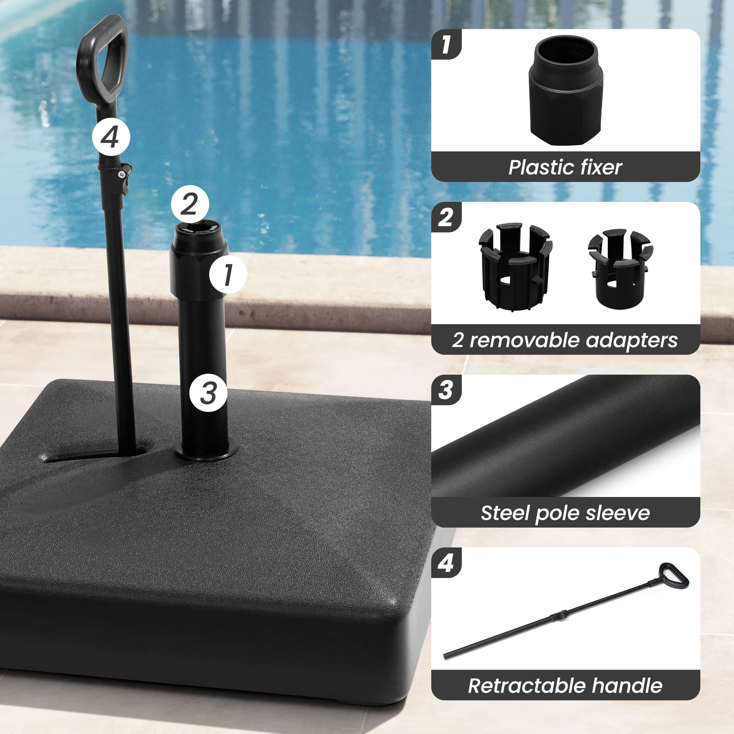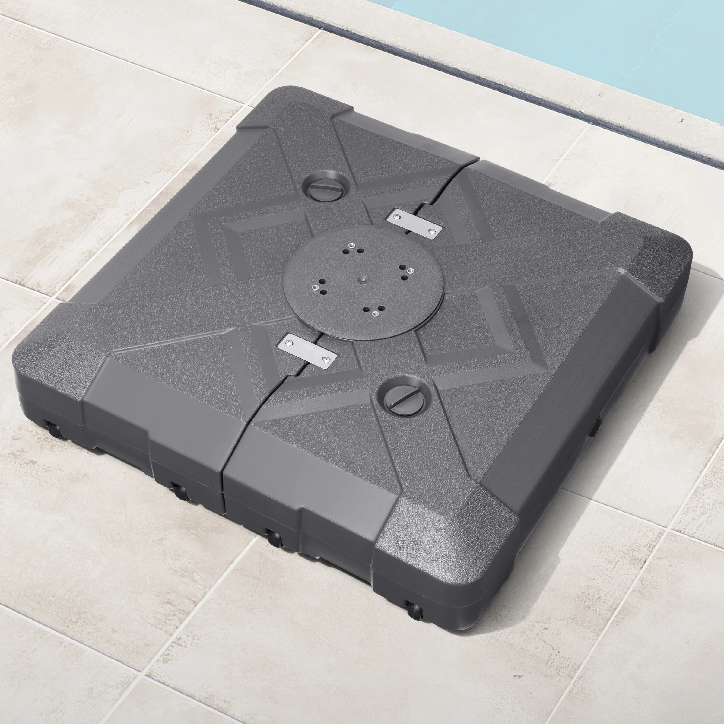 4-Piece Fillable Umbrella Base Stand w/Carry Handles, Round Plastic Patio Umbrella Base Stand, Base Connector Hooks