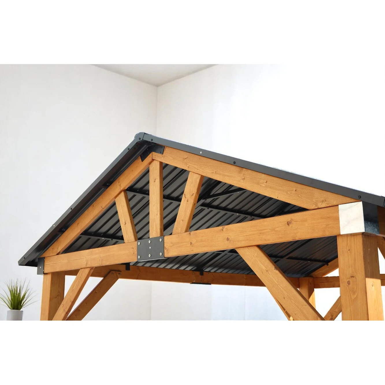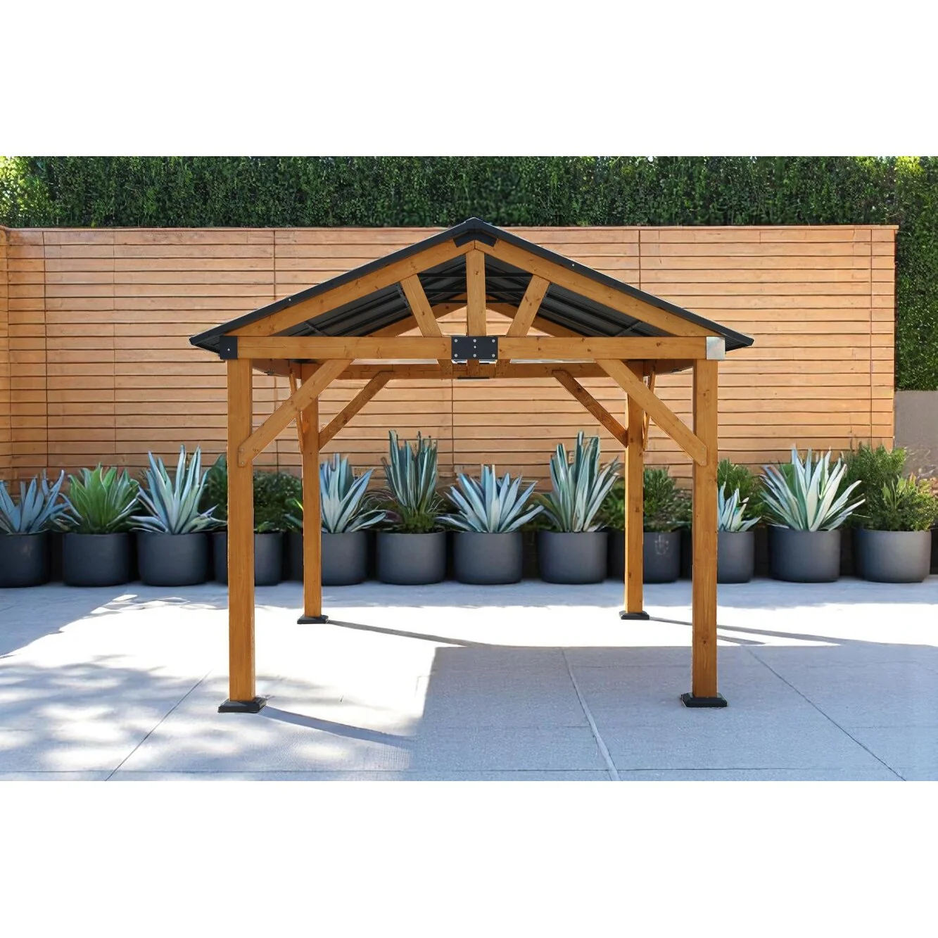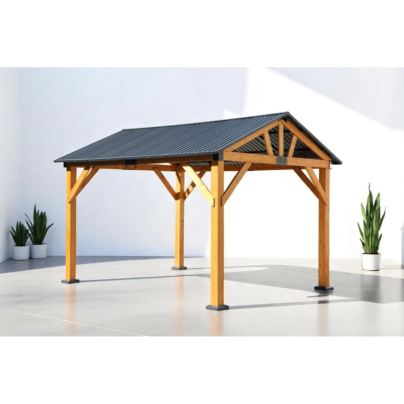 Outdoor Fir Wood Carport Pavilion Gazebo with Steel Roof, Durable Wood Frame, and UV Protection for Patio, Garden, and Backyard