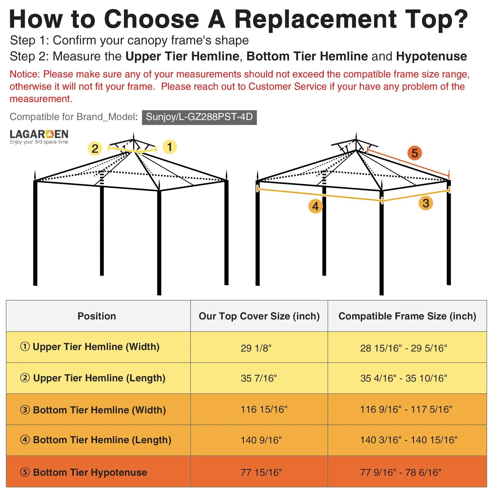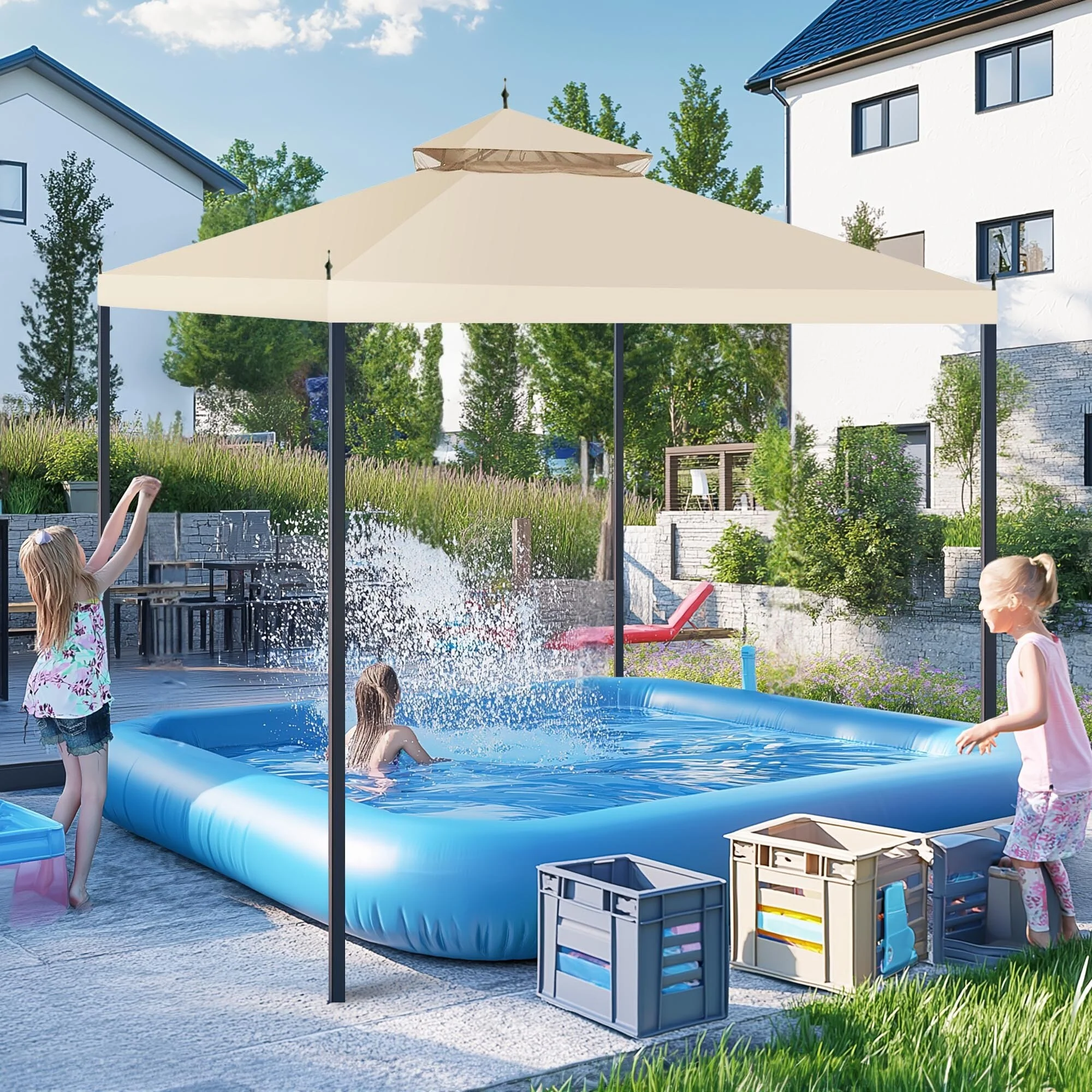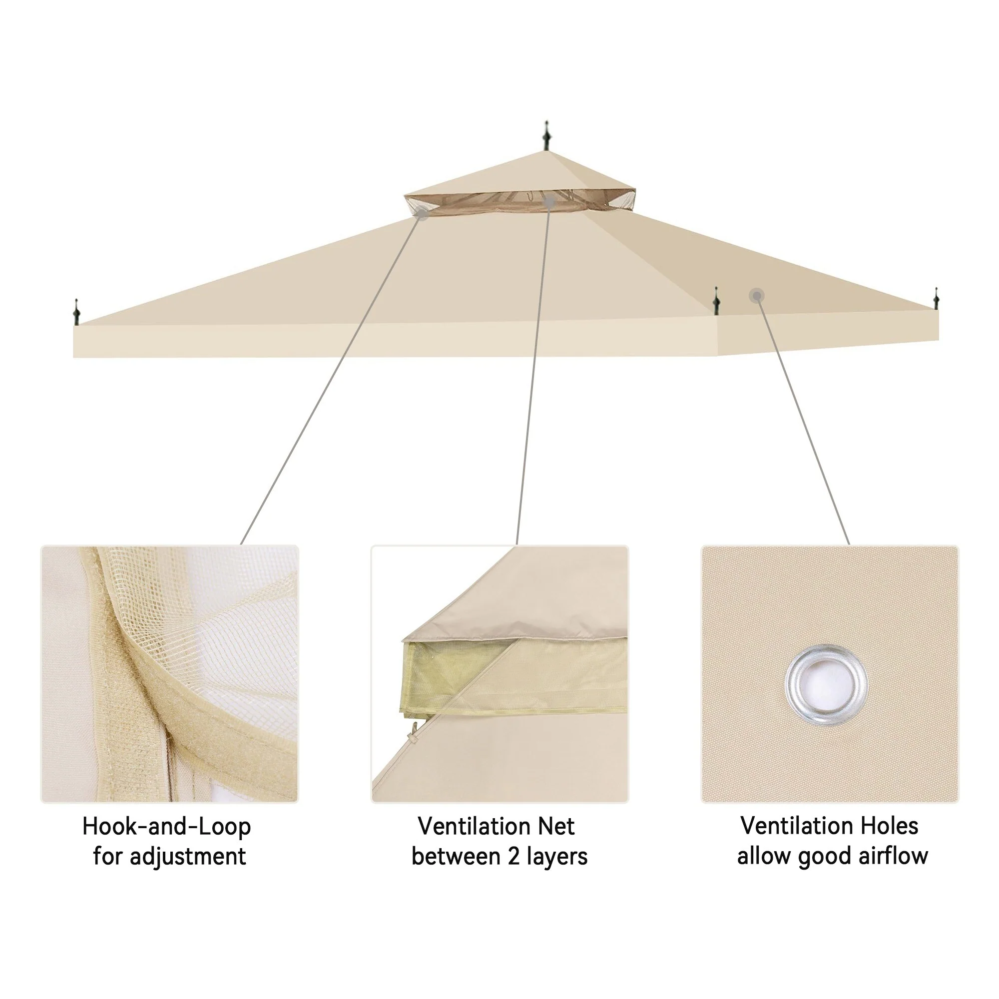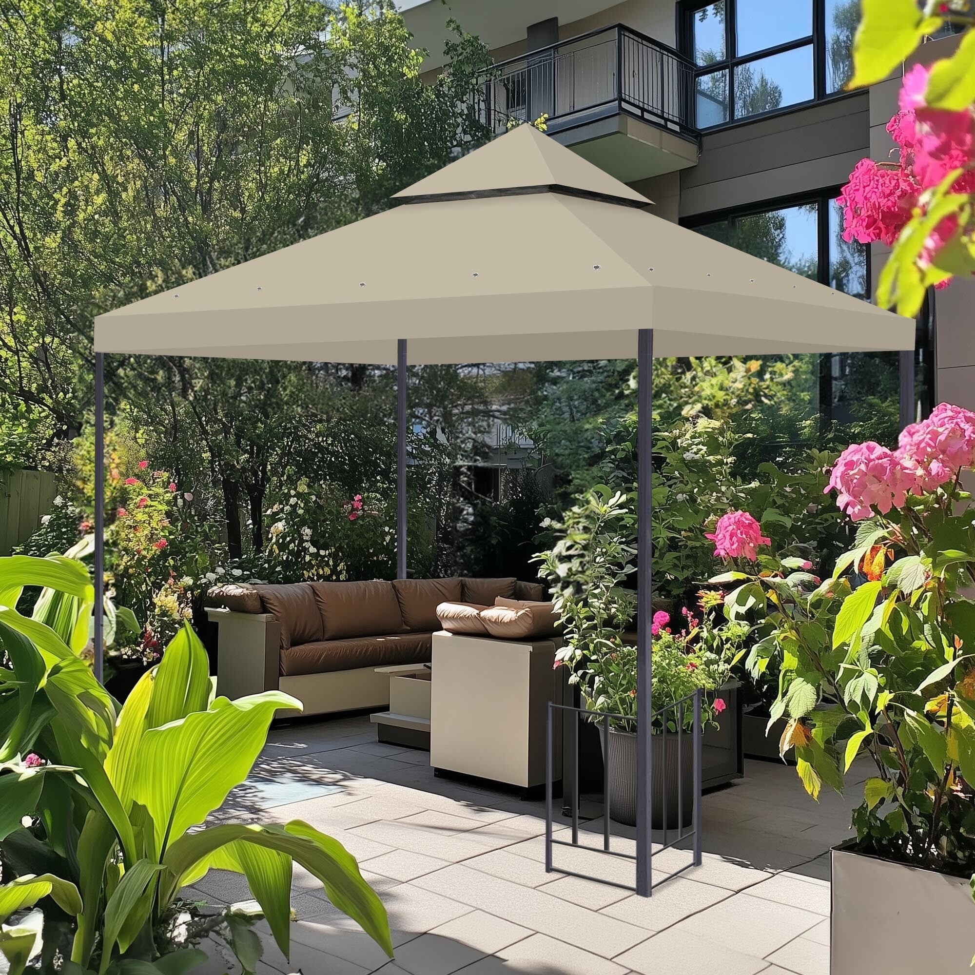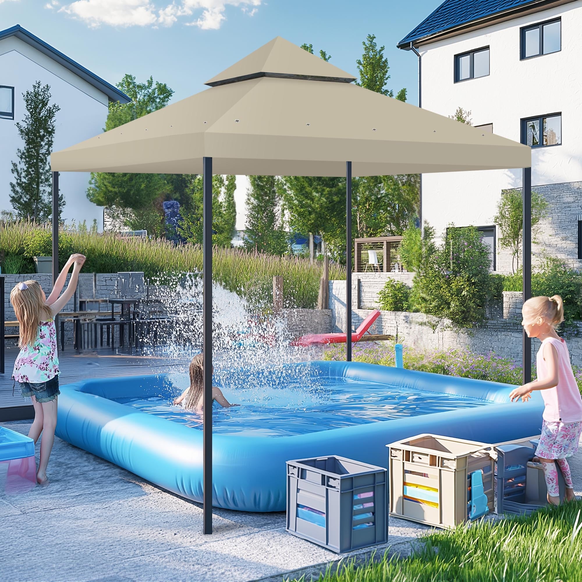 Yescom 11.7'x9.8' Canopy Top Replacement Coffee Liqueur for 2-Tier Sunjoy L-GZ288PST-4D Gazebo Cover