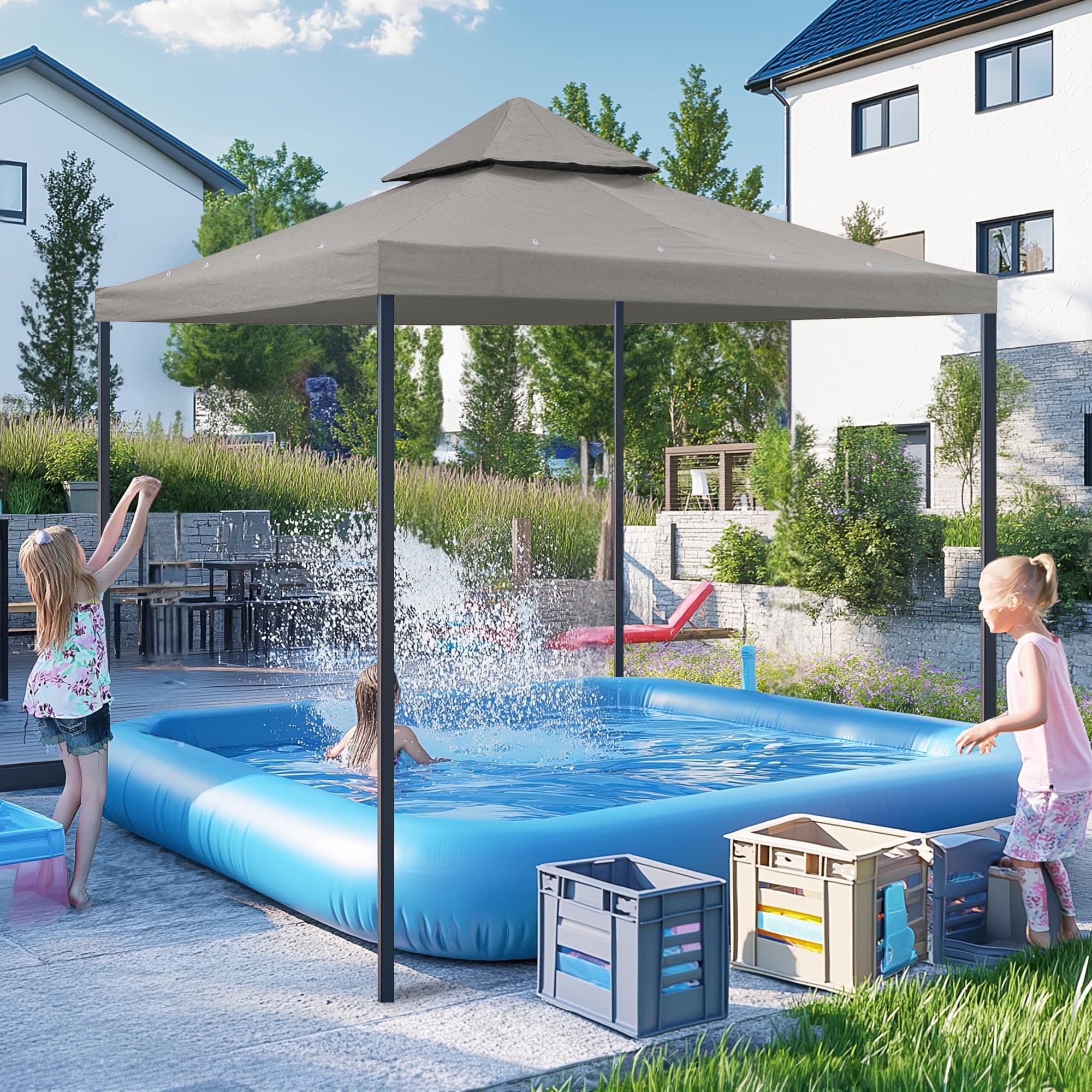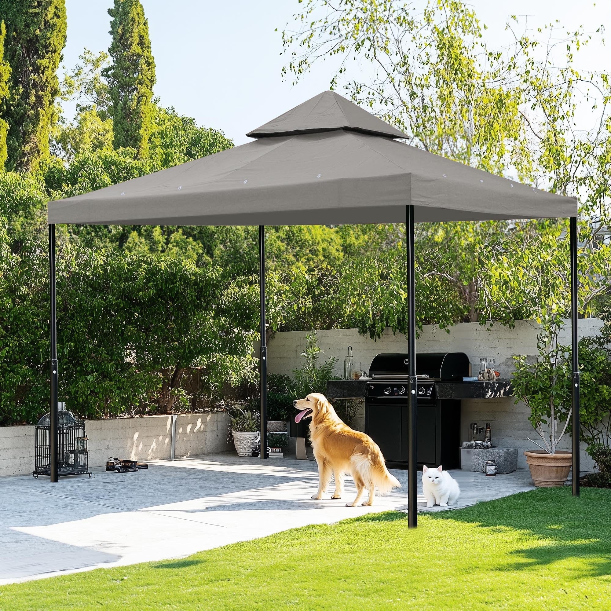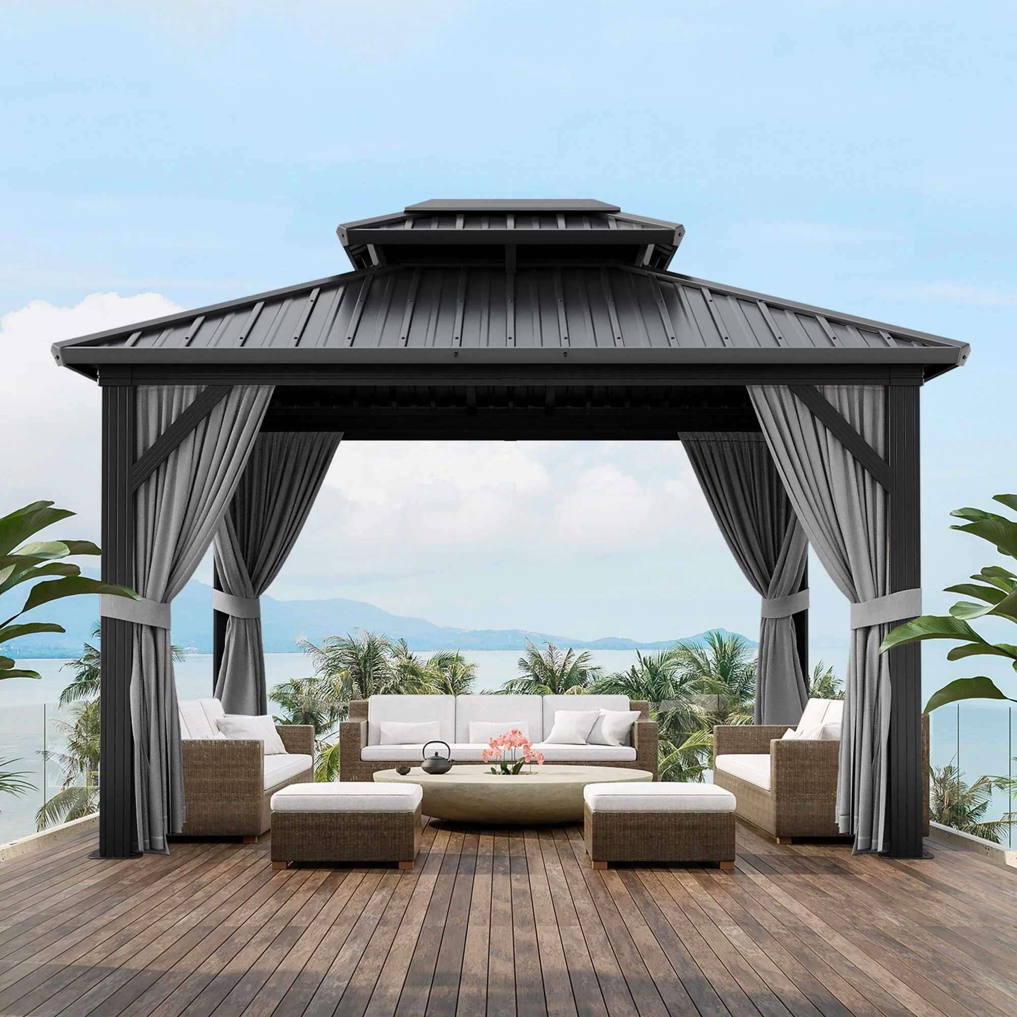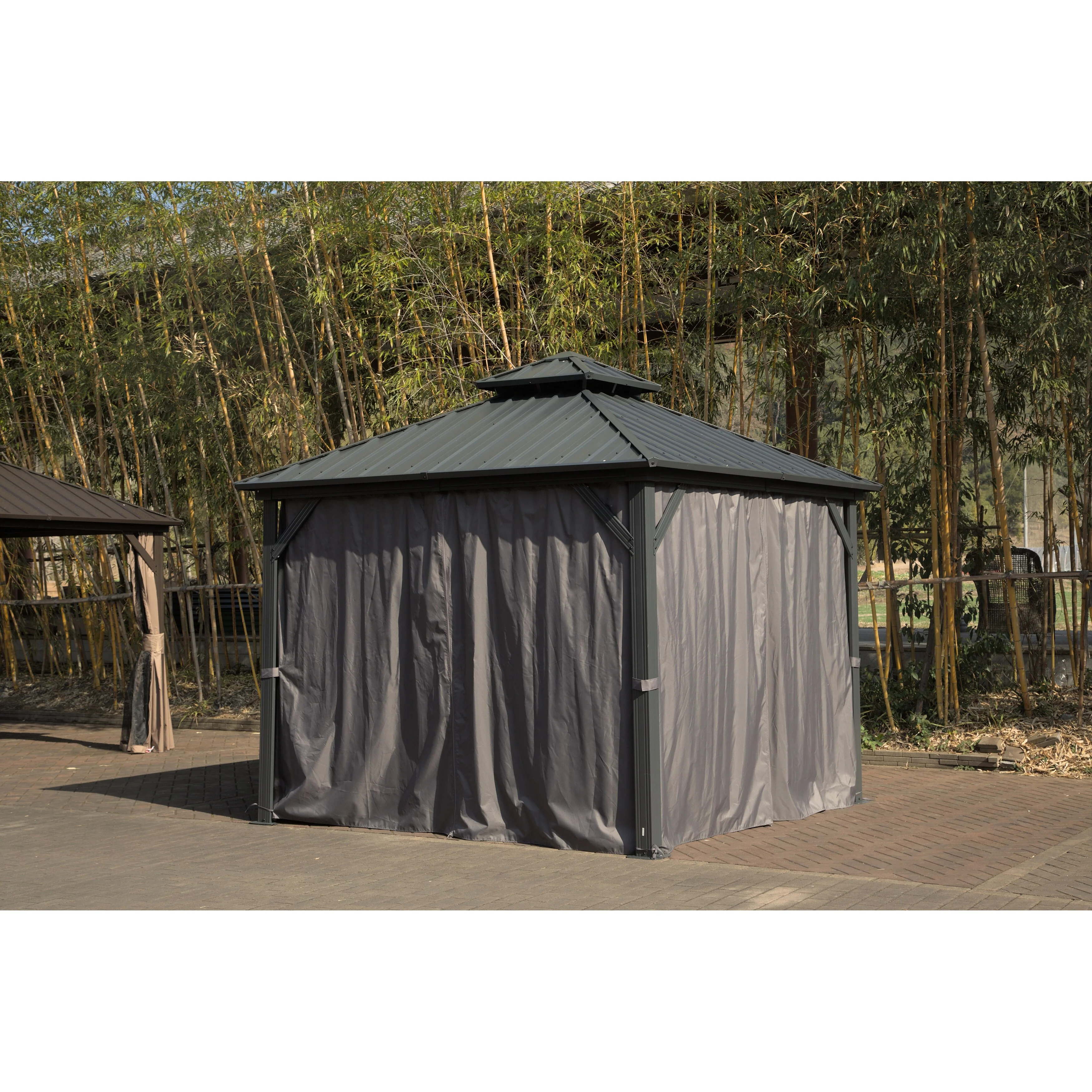 GDFStudio - Terry 8' x 8' Gray Aluminum Hardtop Gazebo with Galvanized Steel Double Roof