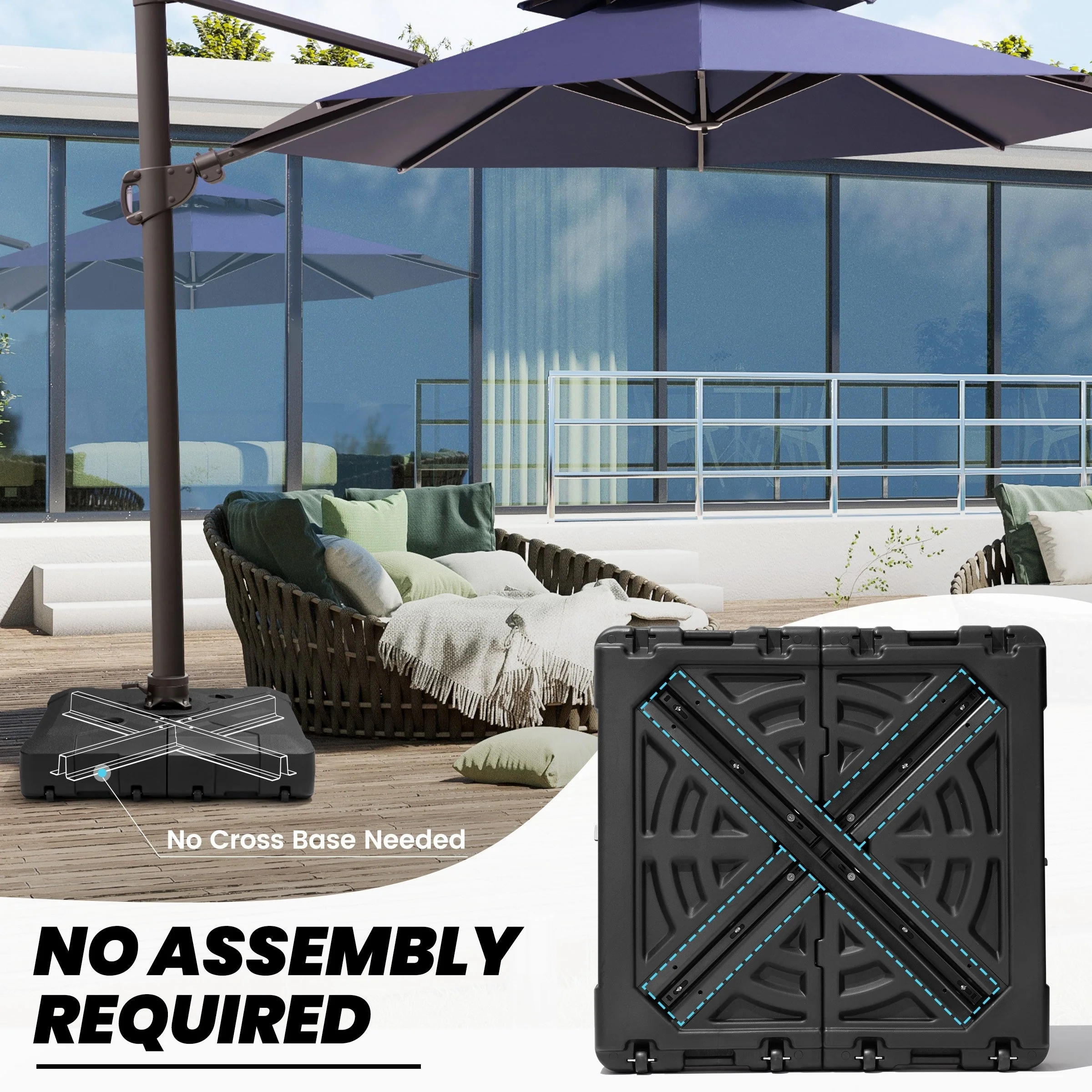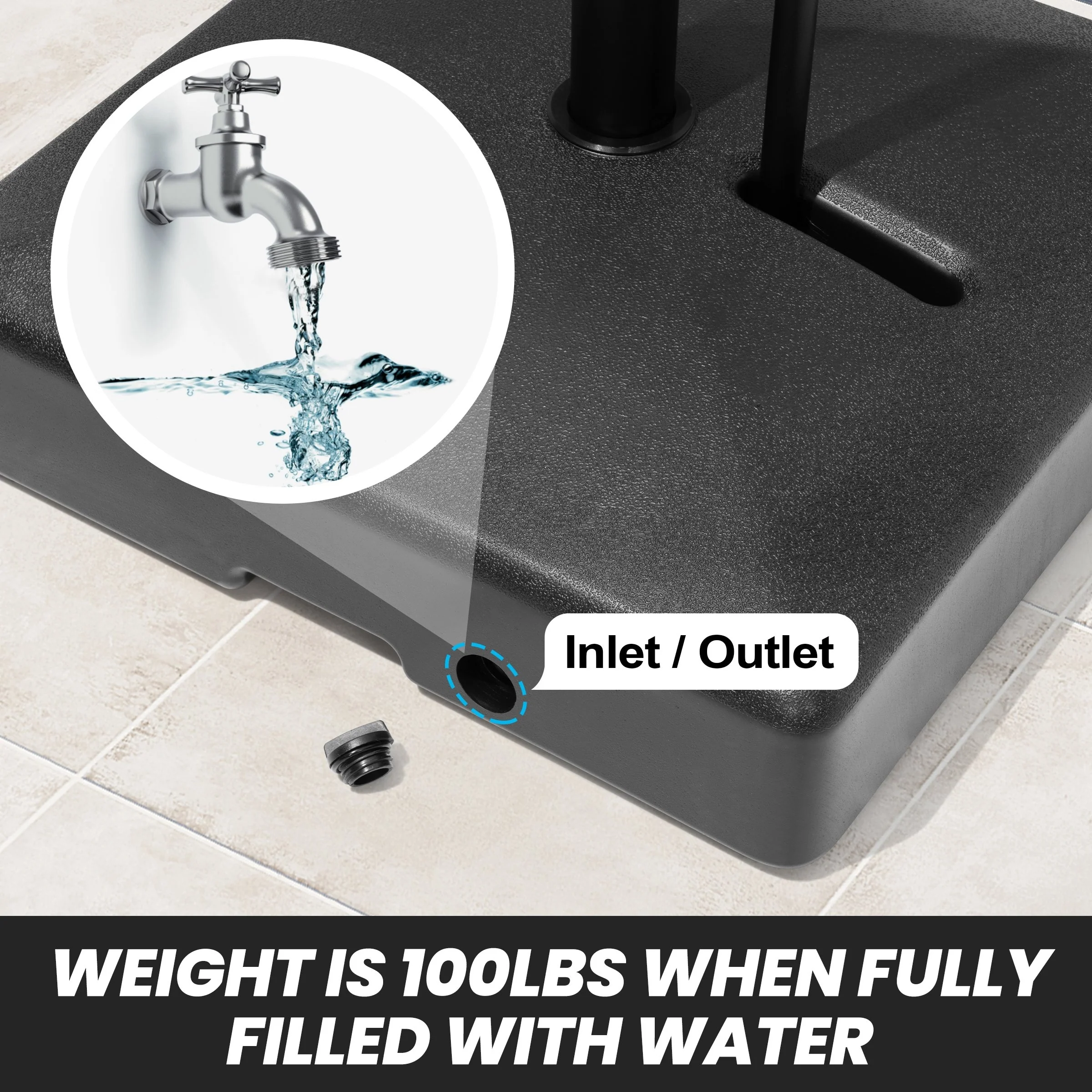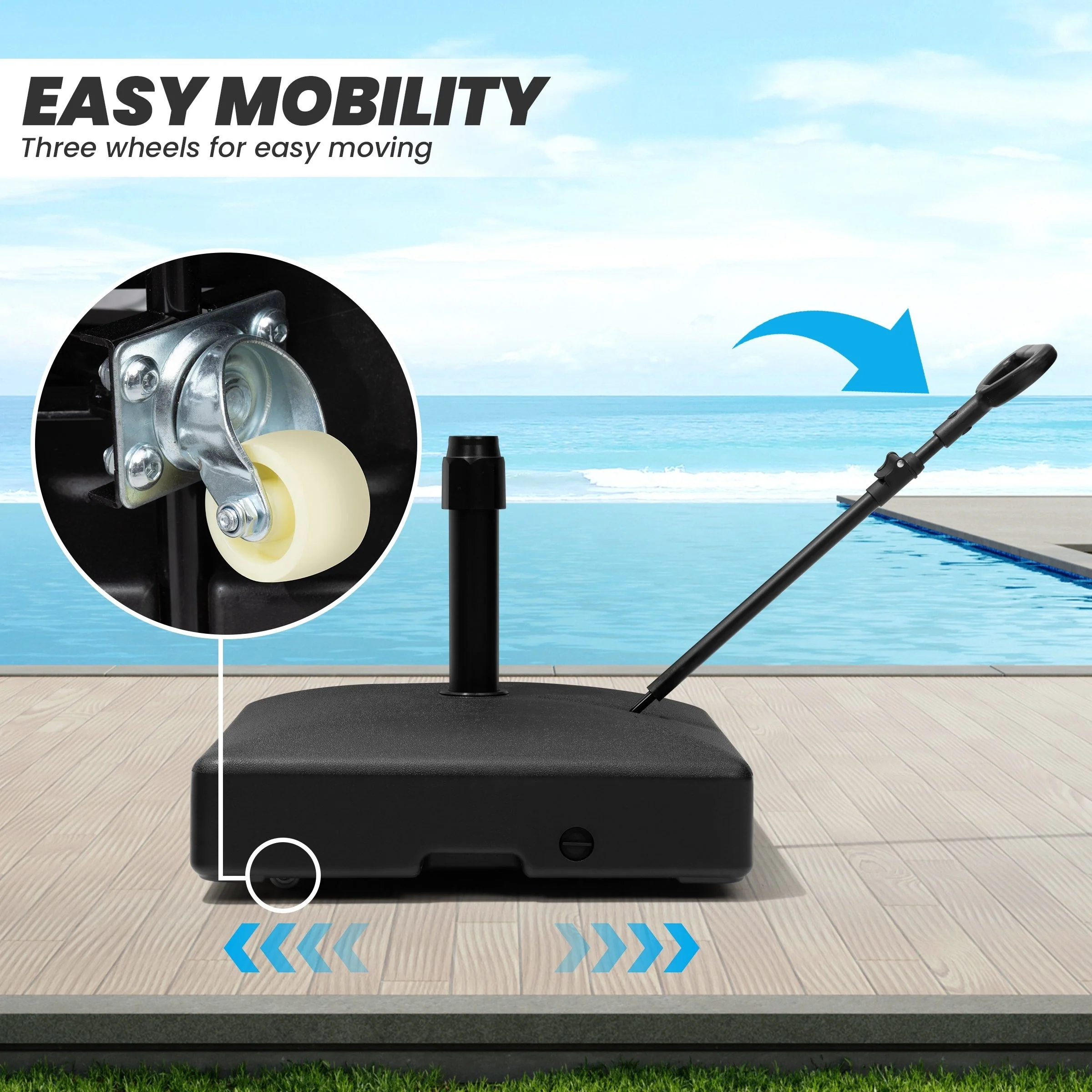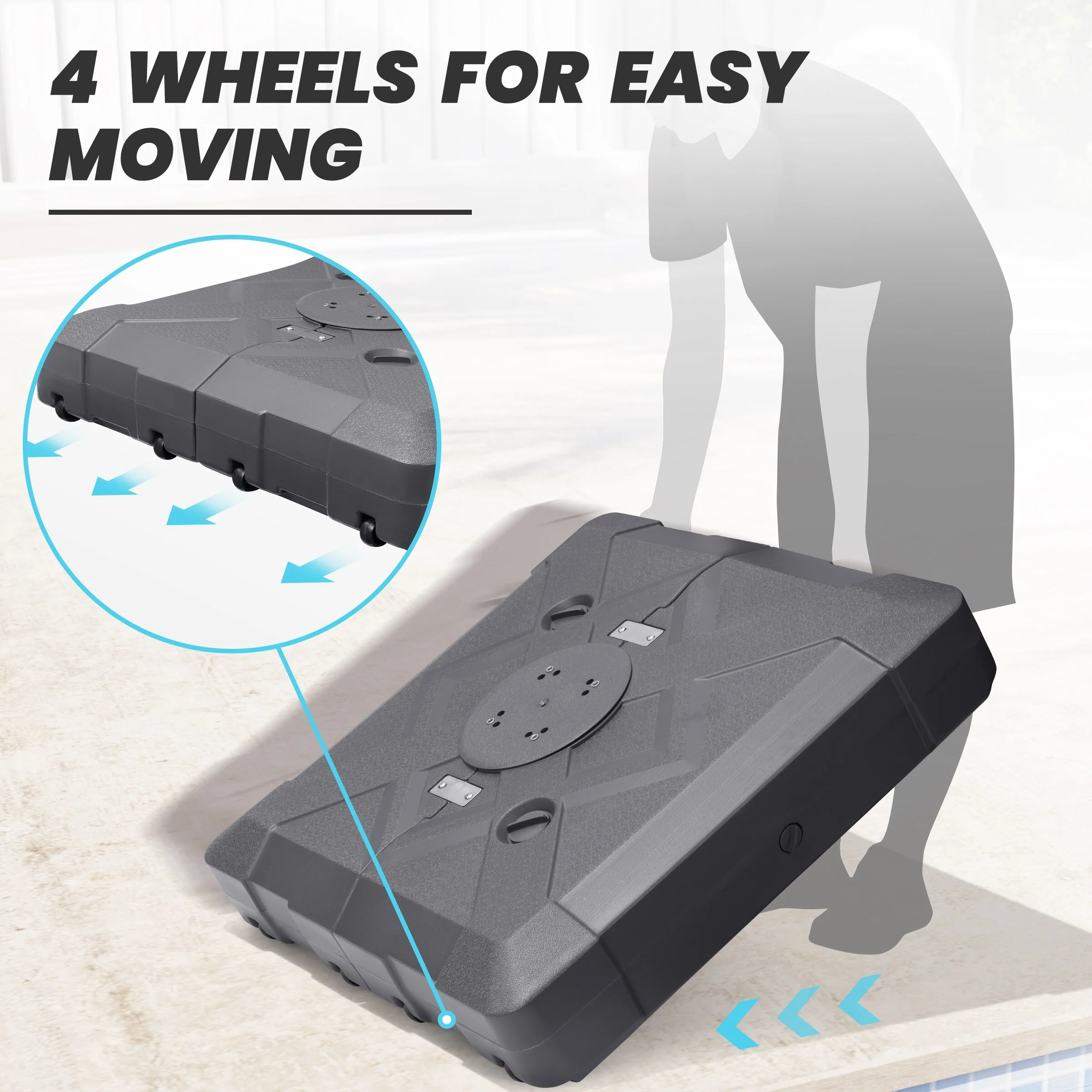 Heavy Duty Sand Water Fillable Patio Offset Cantilever Umbrella Base with Wheels