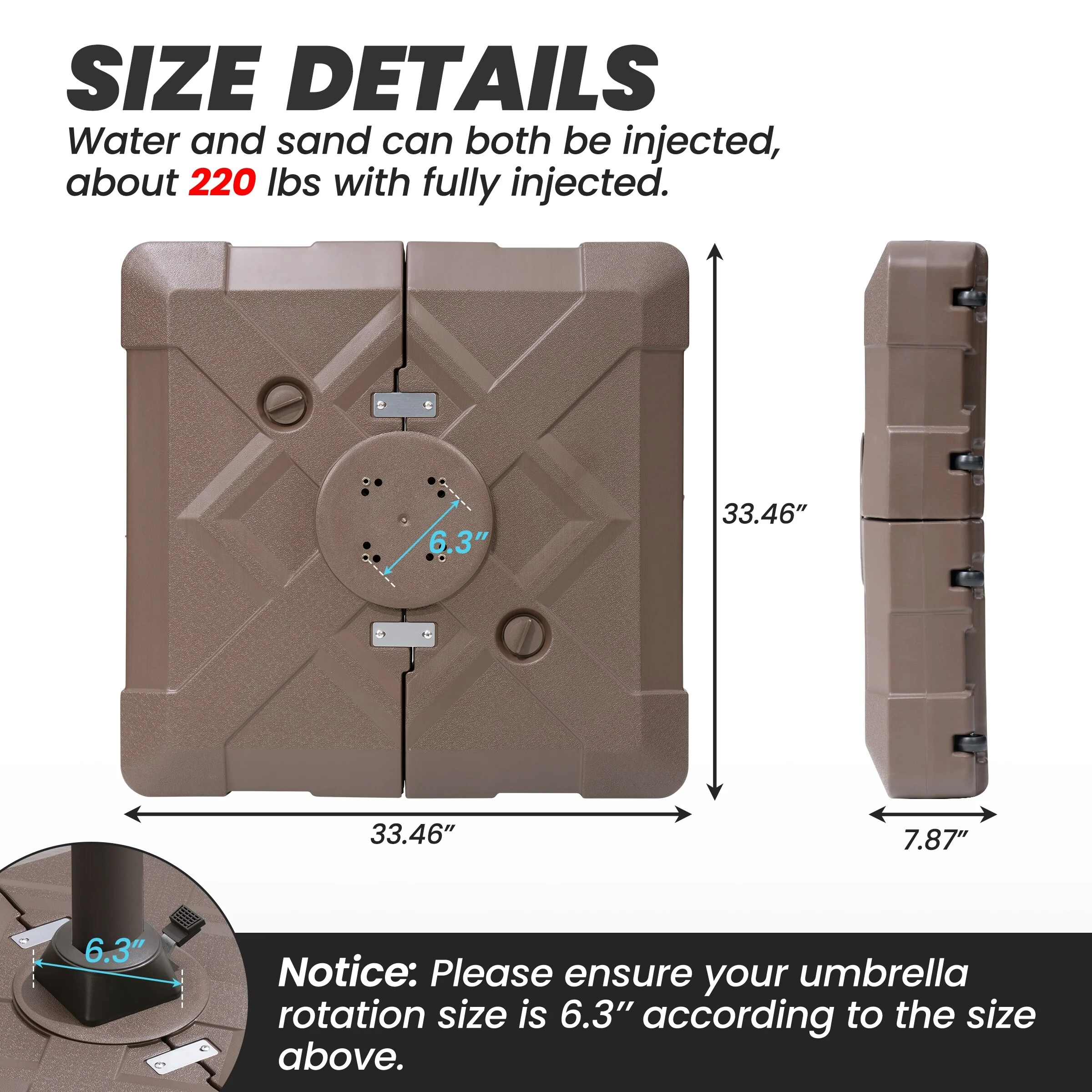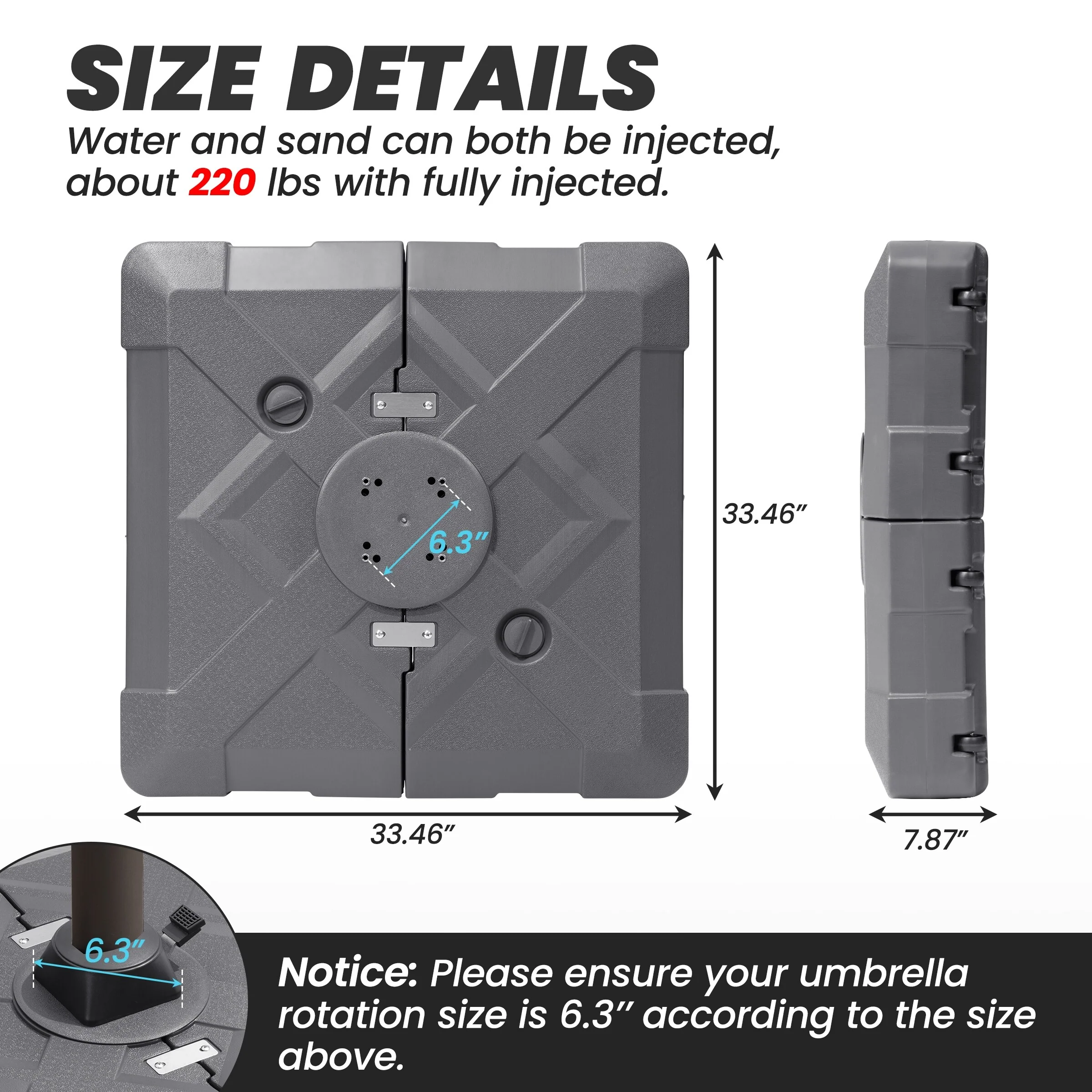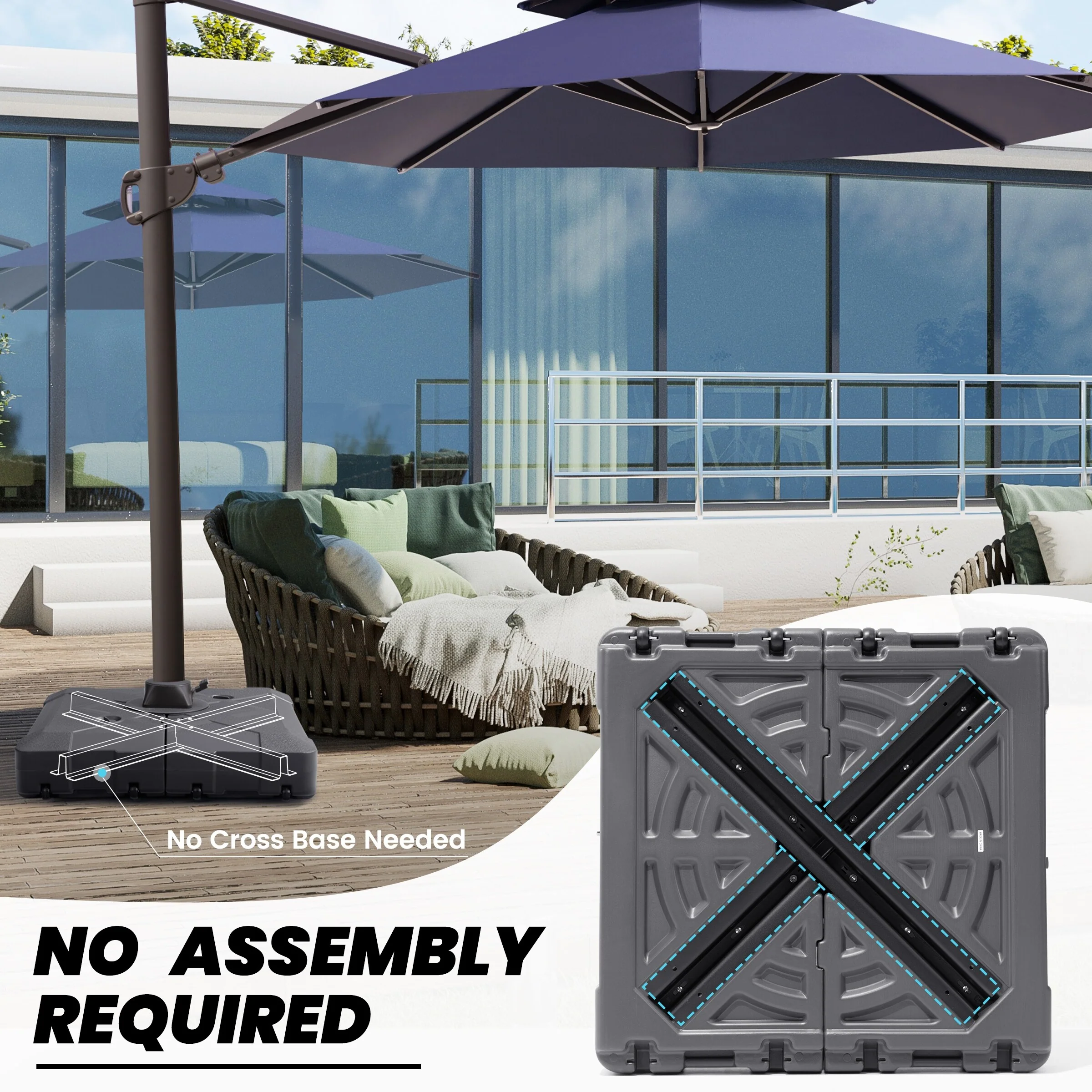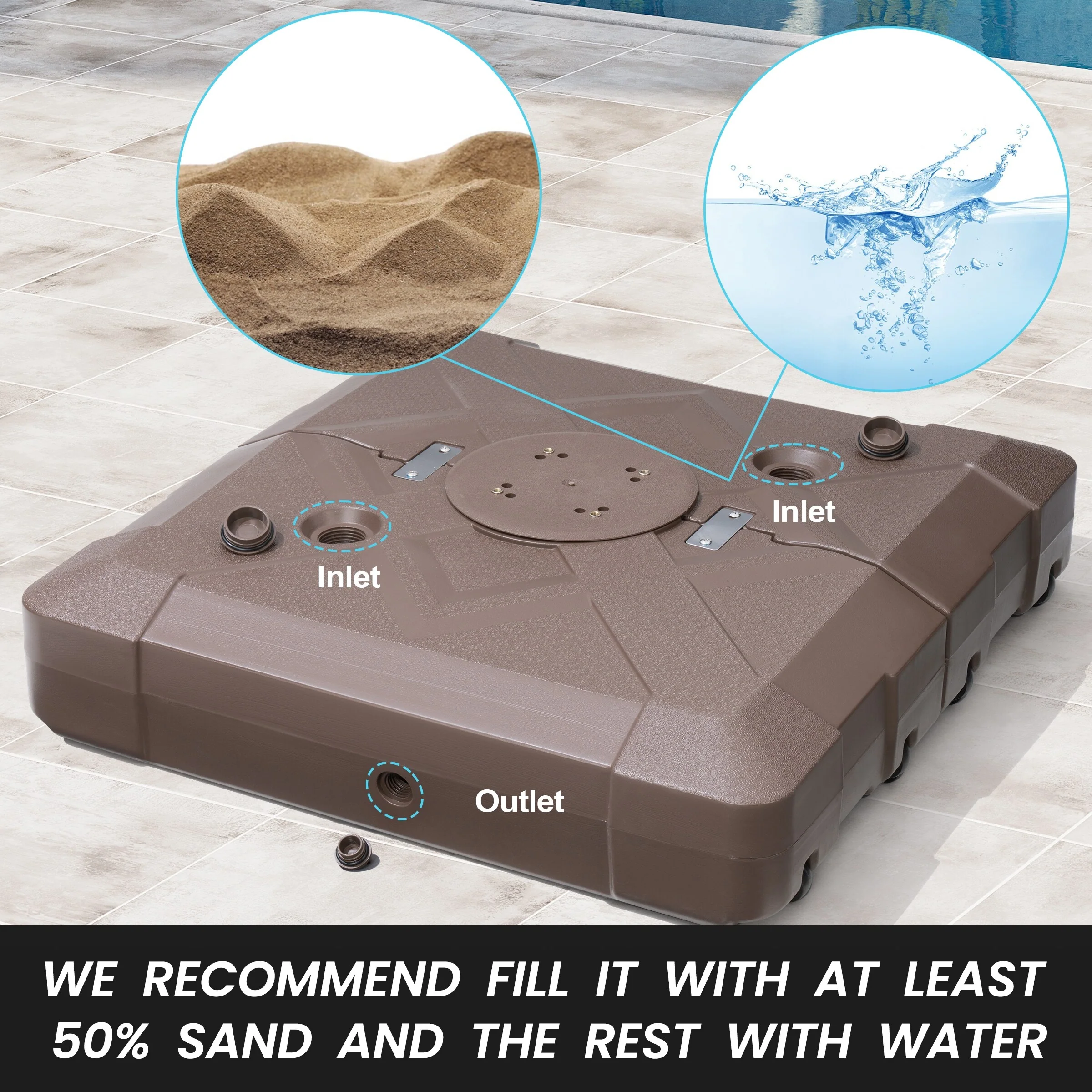 Heavy Duty Sand Water Fillable Patio Offset Cantilever Umbrella Base with Wheels