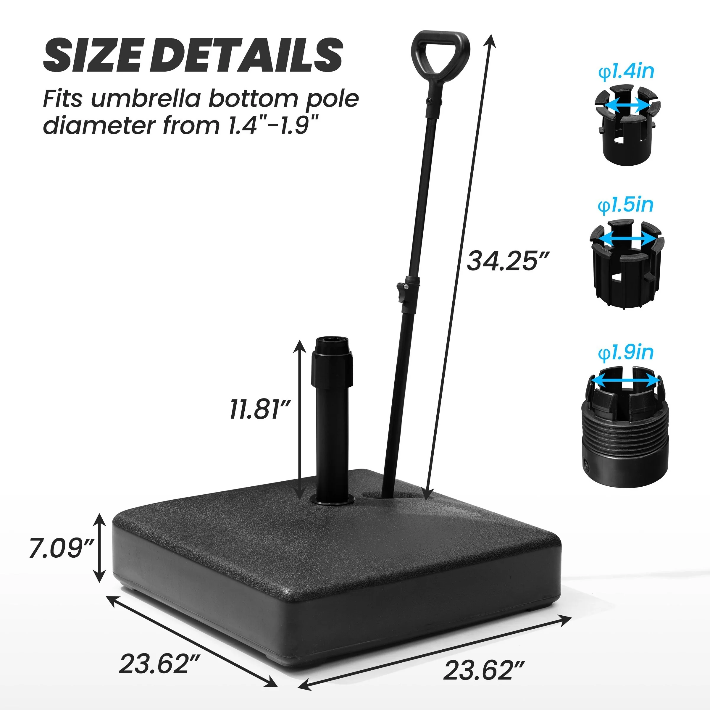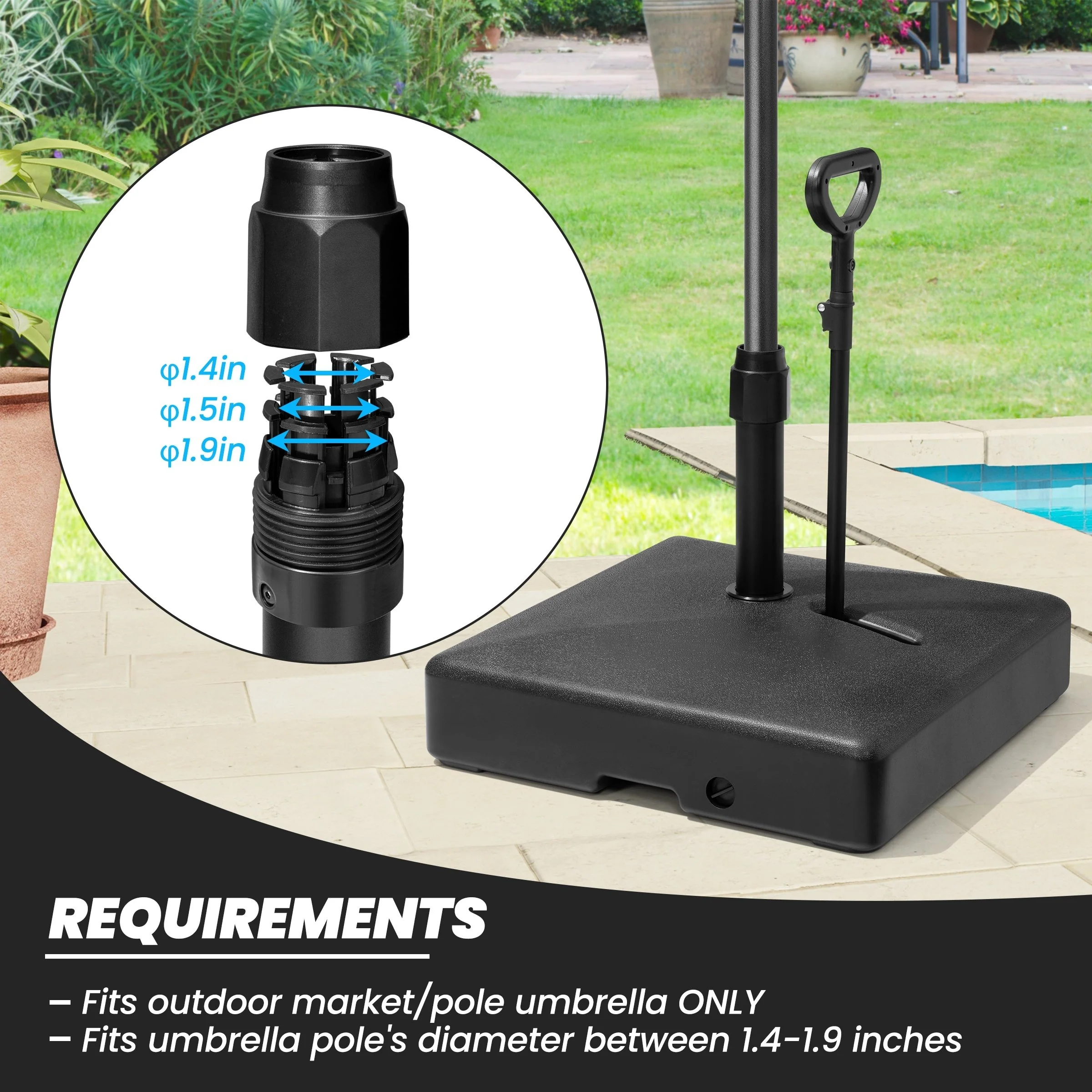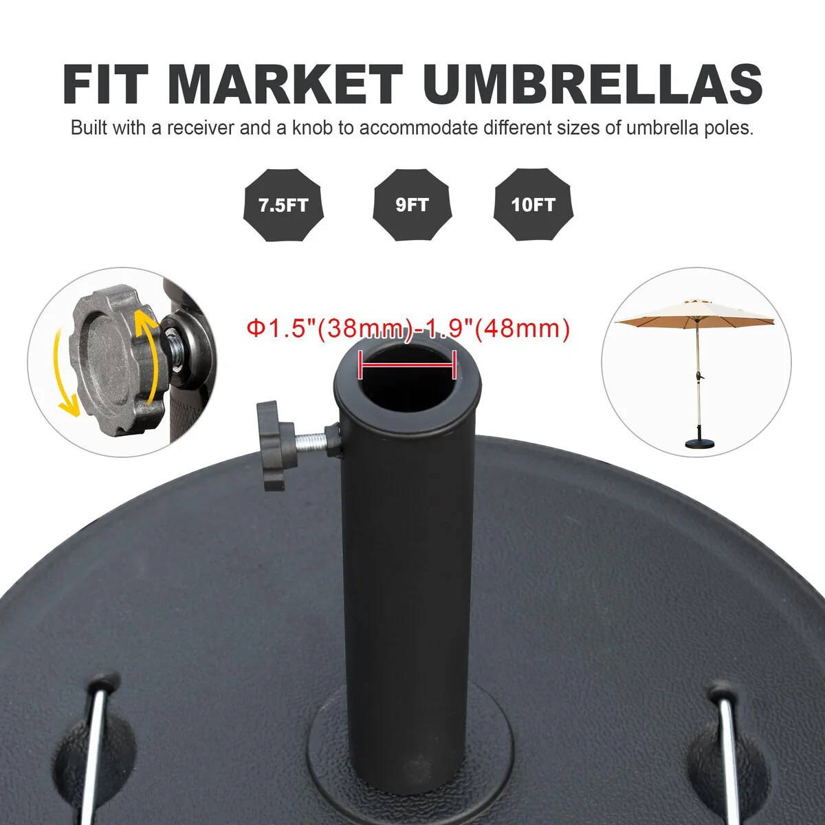 Umbrella Stand Base with Adjustable Knob, for Outdoor 1.5''~1.9'' Market Umbrella Heavy Duty Umbrella Holder