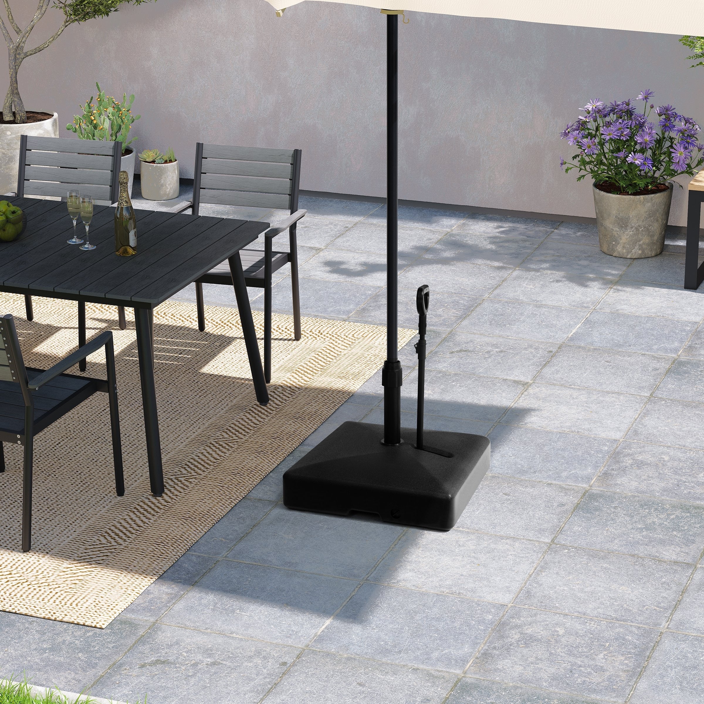 4-Piece Plastic Cantilever Offset Patio Umbrella Base Plate Set with Easy-Fill Spouts in Black