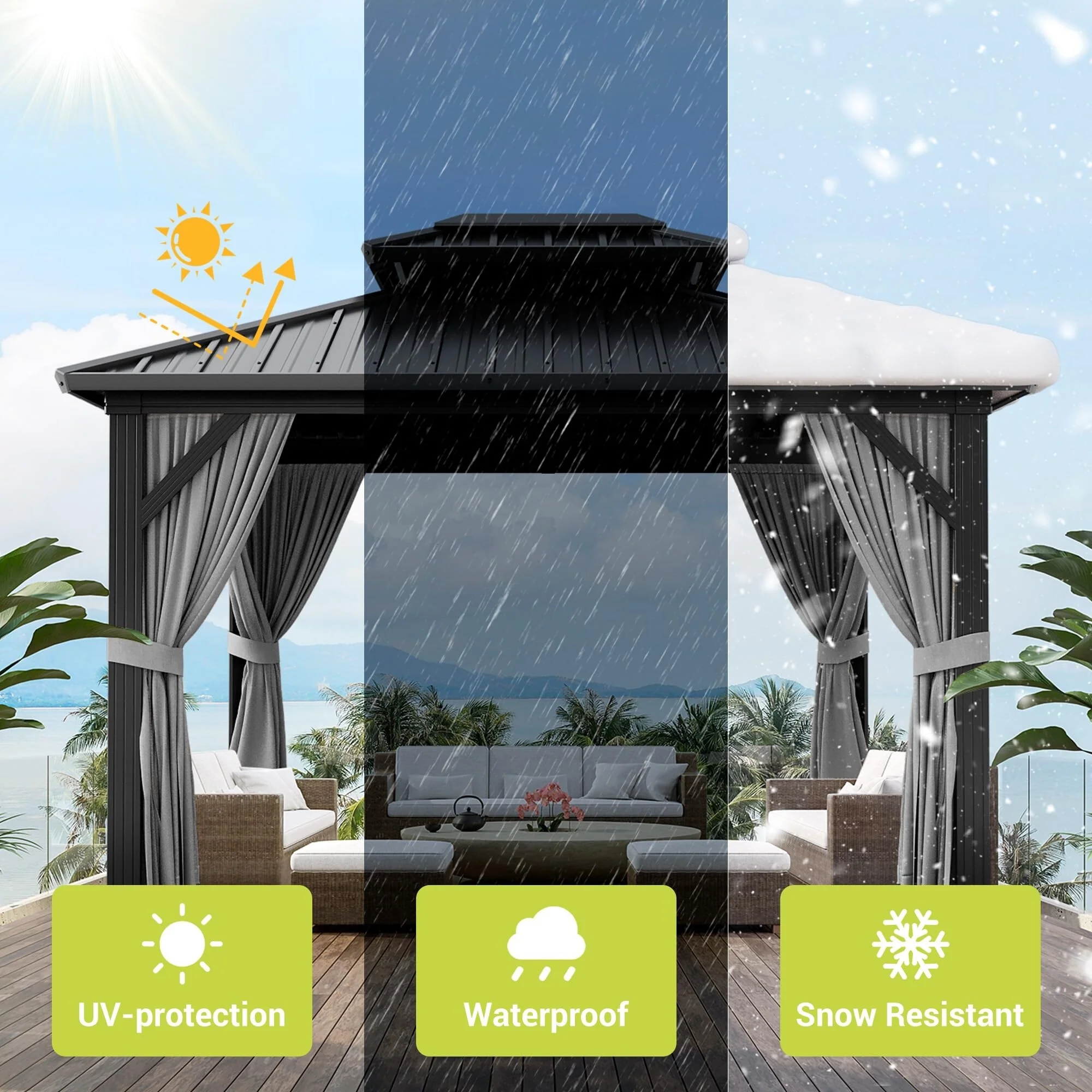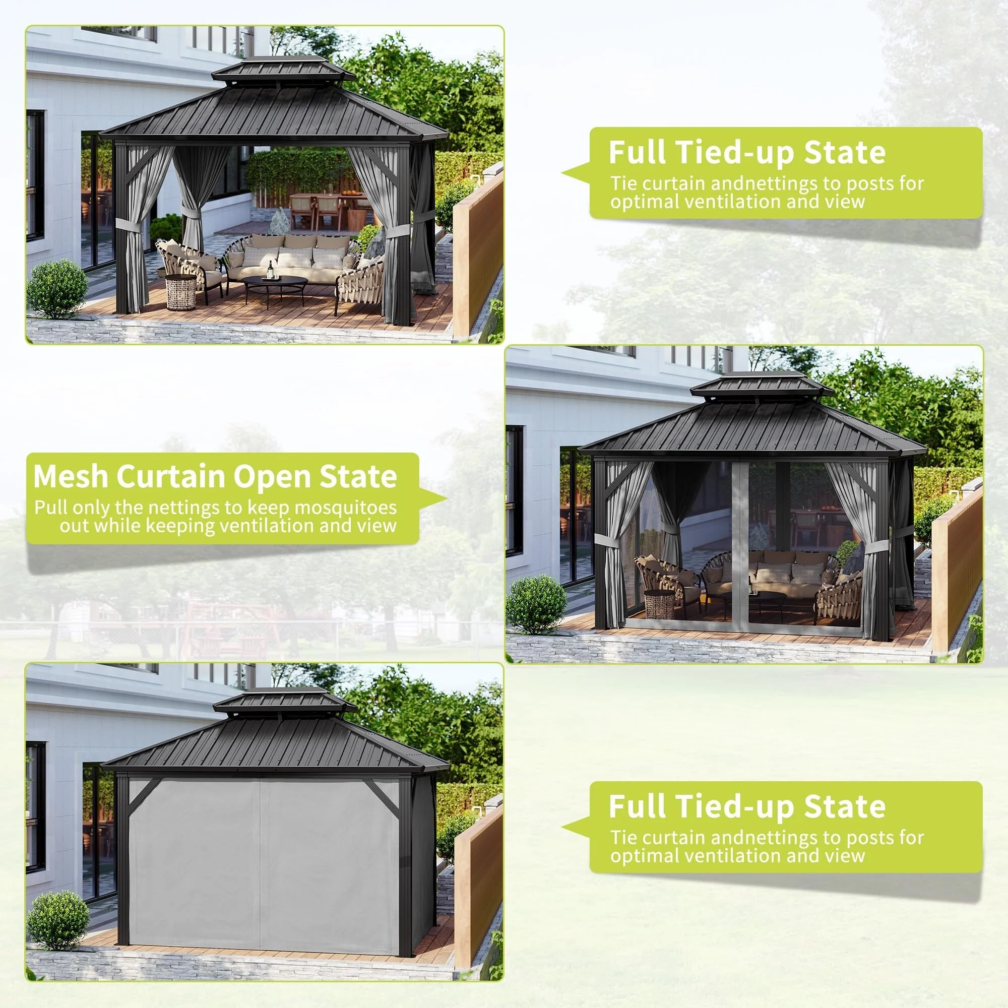 Sunjoy Gazebo Universal Replacement Privacy Curtain,Waterproof Privacy Curtains 4-Panel Screen Walls for 12 x 16 ft Gazebo