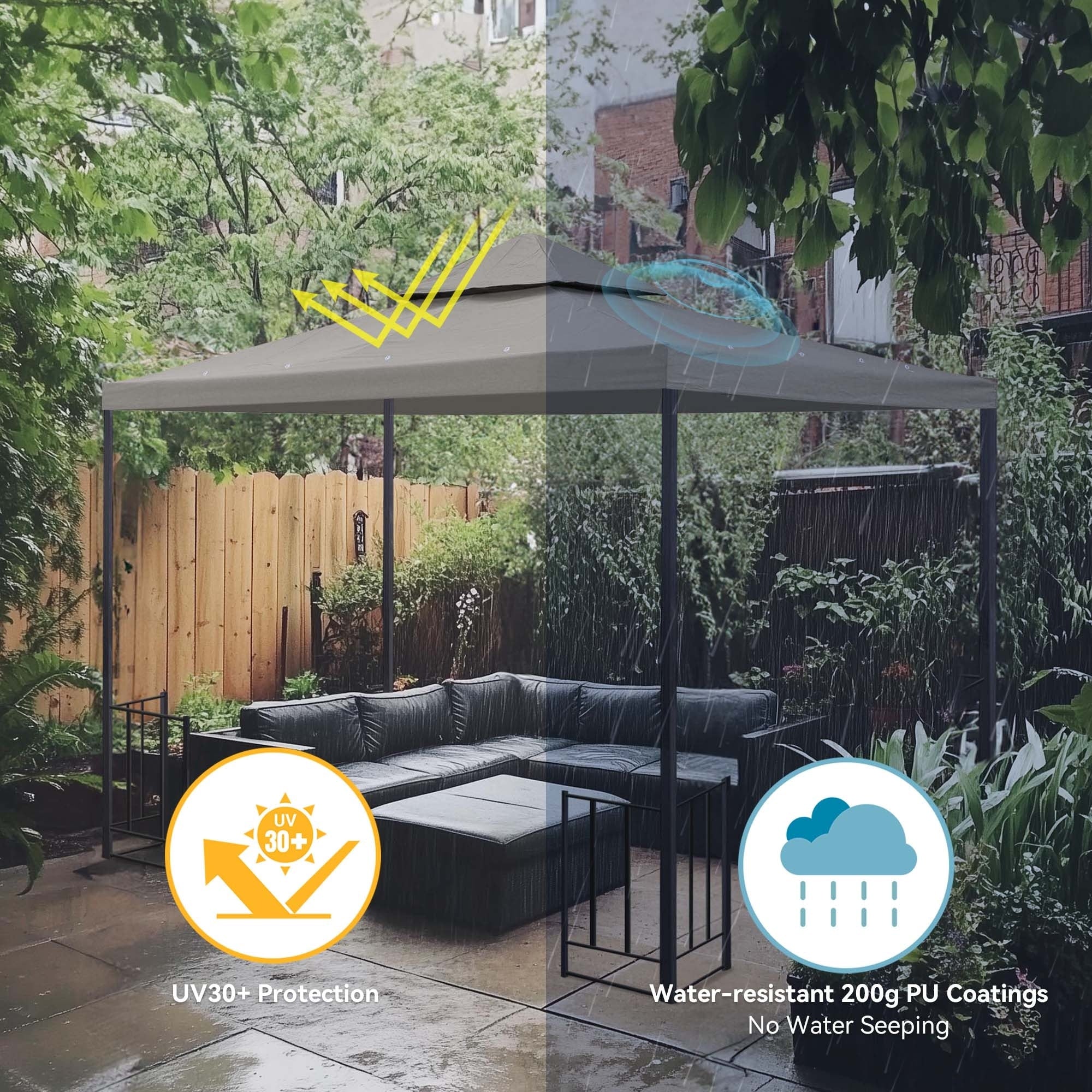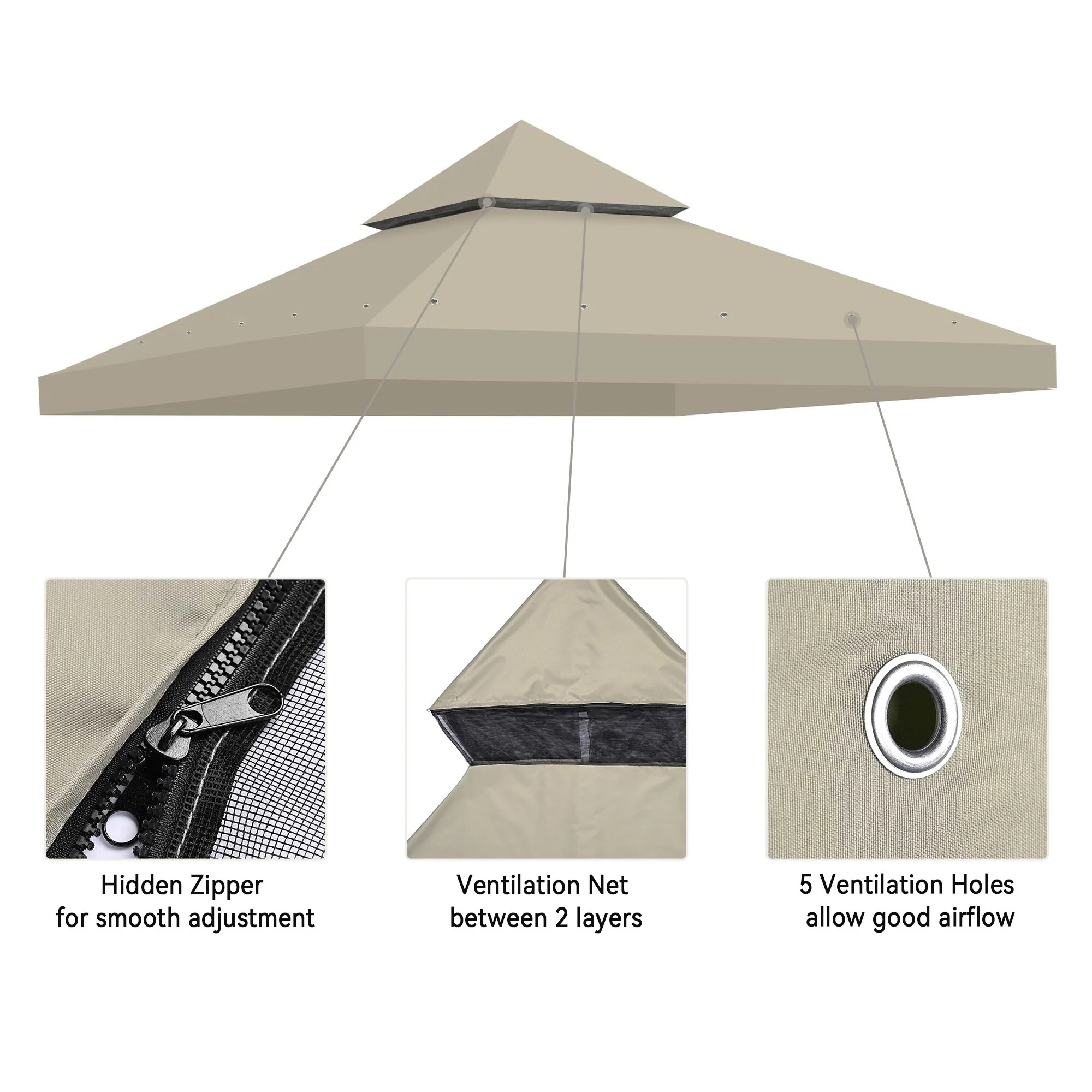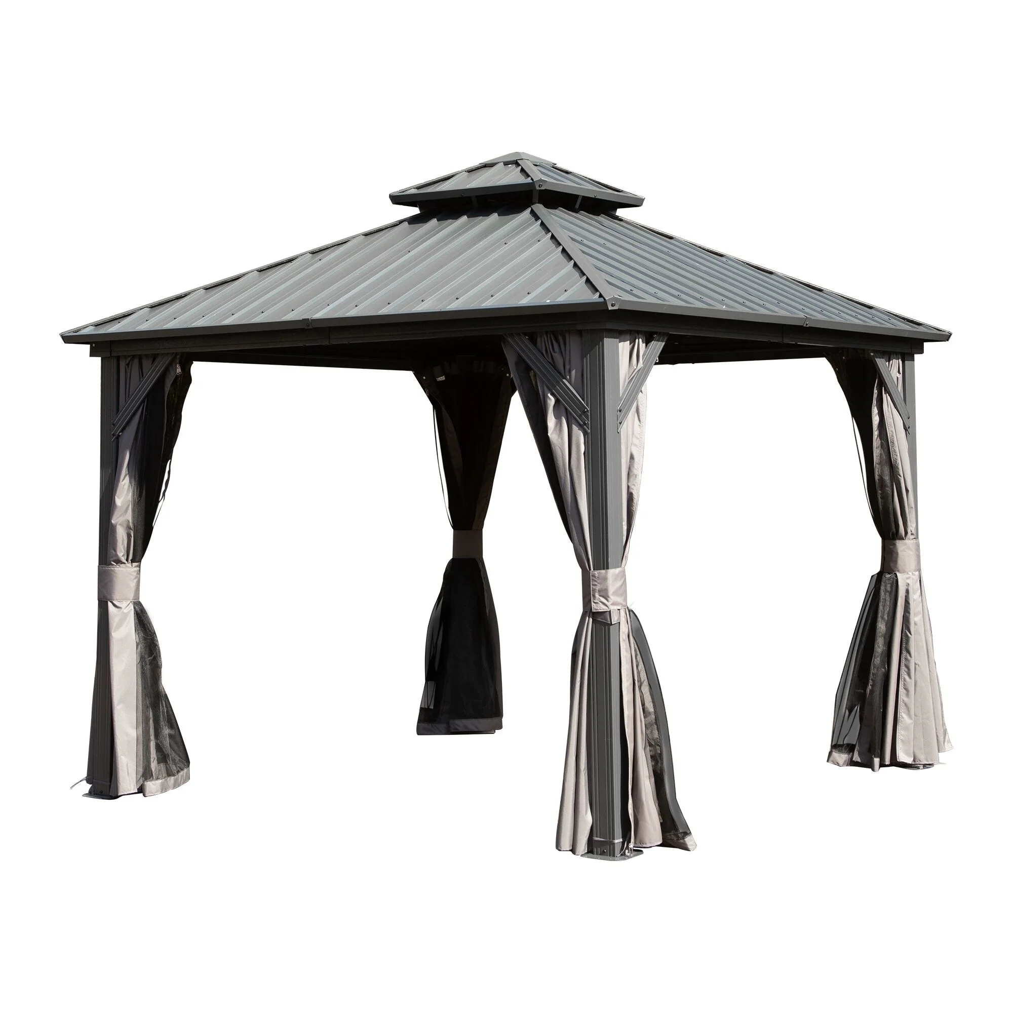 Roomfitters Aluminum Outdoor Gazebo with Mosquito Netting and Weather-Resistant Curtains, 10 x 10 FT Patio Canopy, Taupe