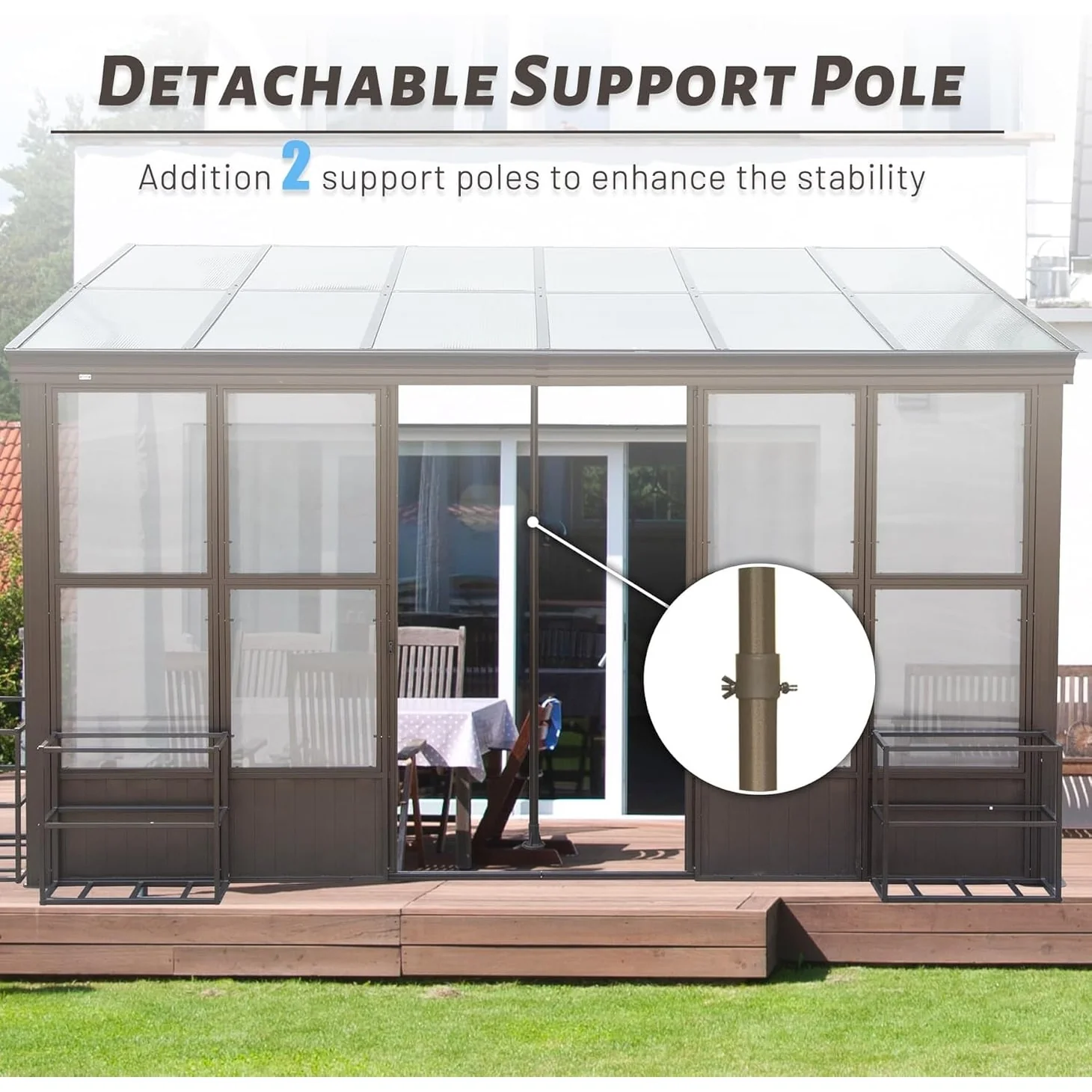 GDFStudio - Terry All-Season Aluminum Sunroom with Detachable Polycarbonate Panels and Lockable Sliding Doors