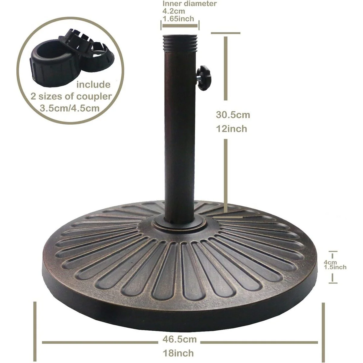 18" 30.2-lbs Heavy Duty Round Antiqued Umbrella Base for Patio