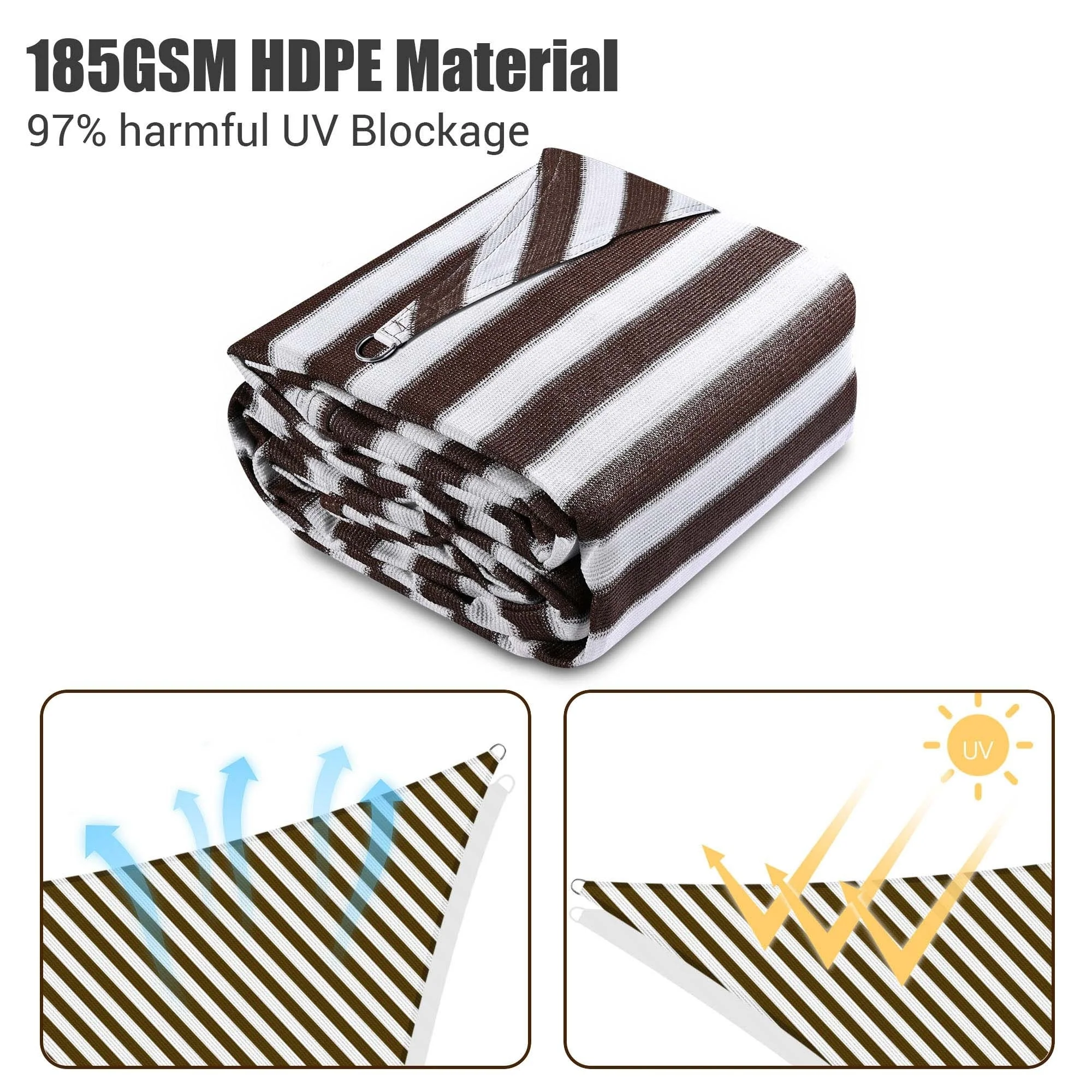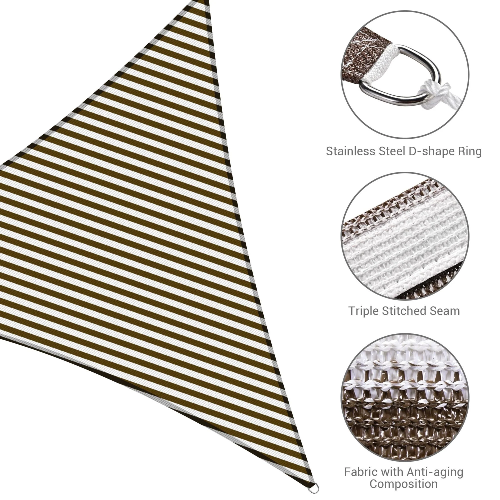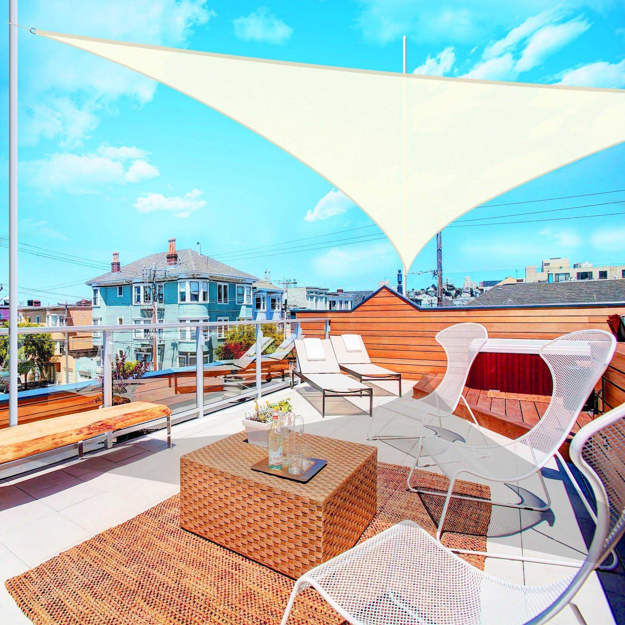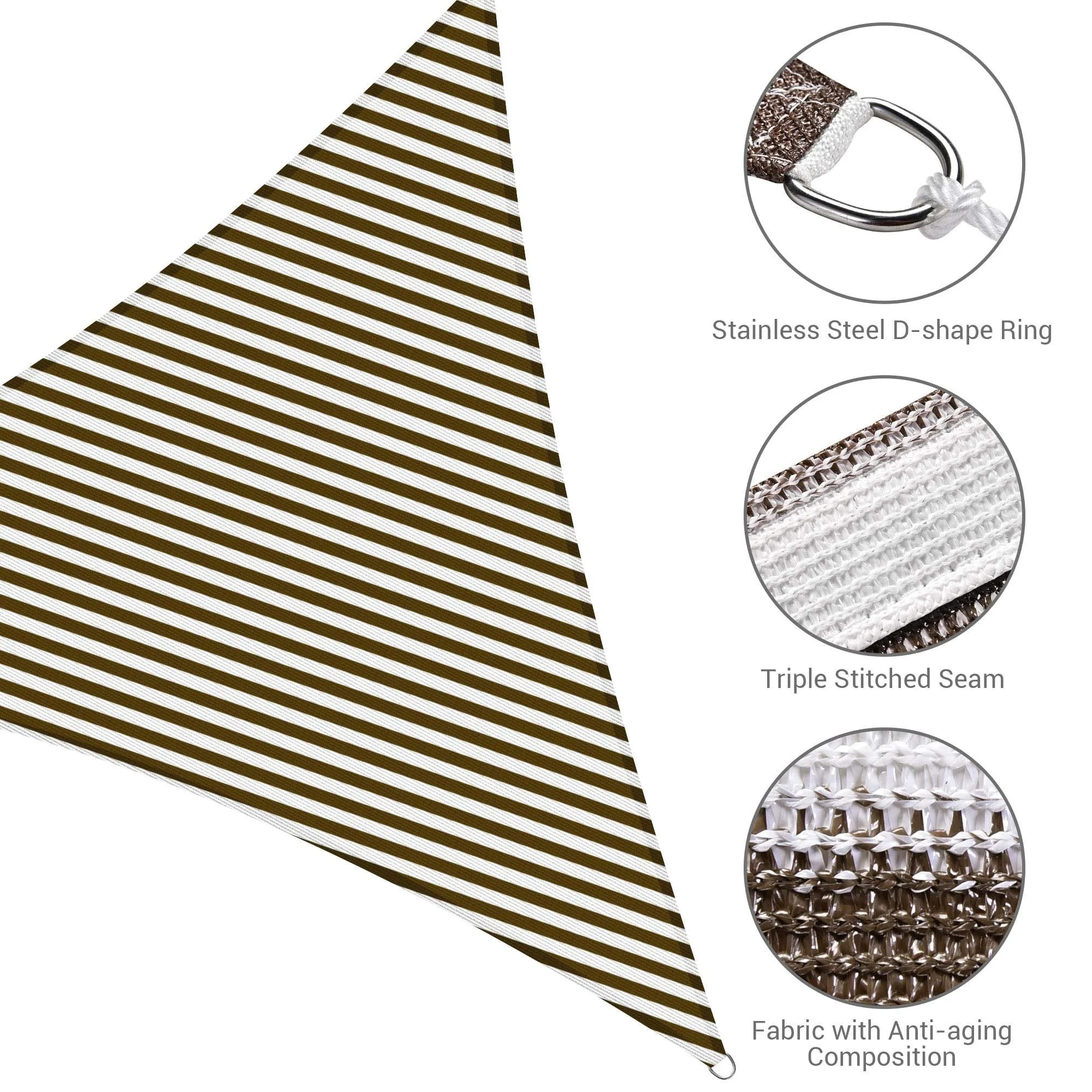 Yescom 16Ft 97% UV Block Triangle Sun Shade Sail Outdoor Patio Pool Garden Yard Lawn Carport Awning Coffee+White