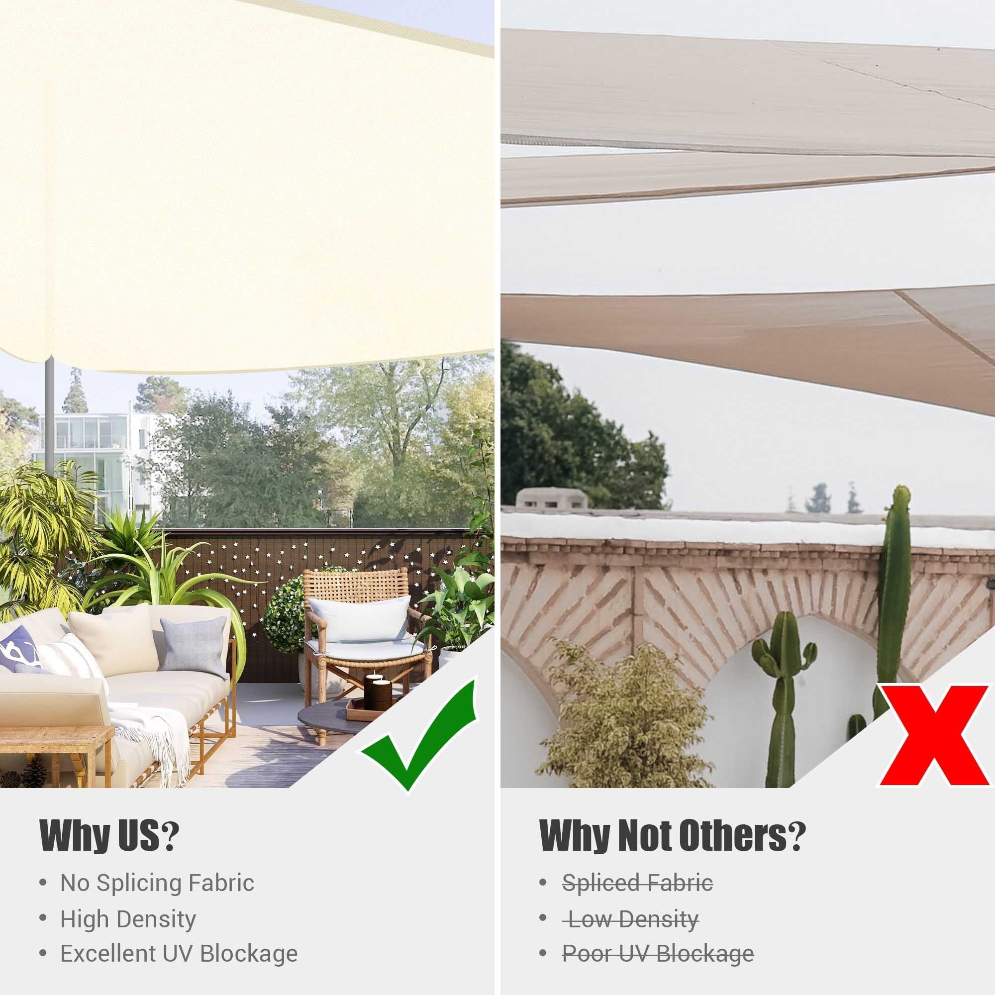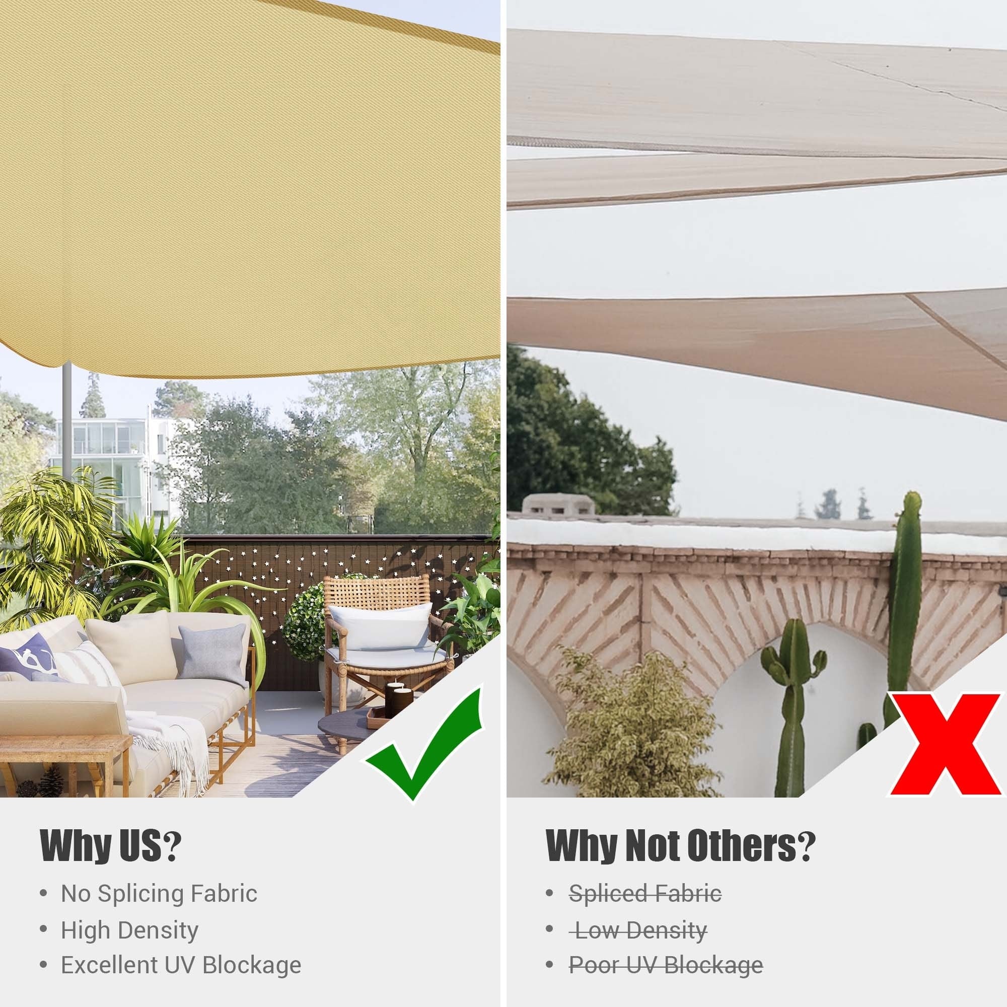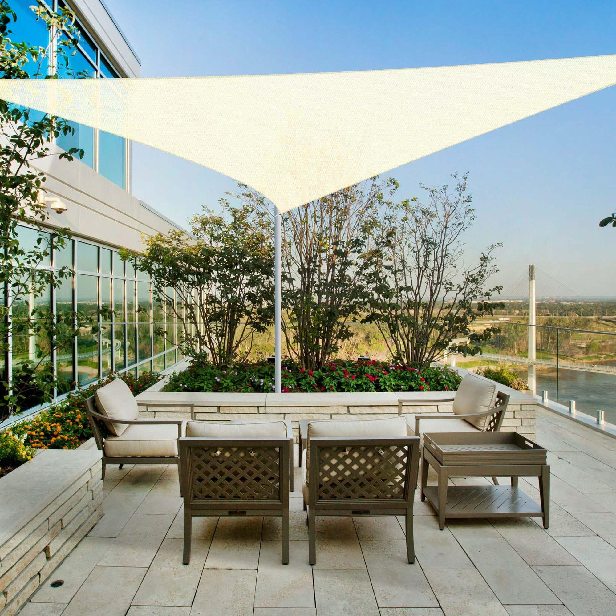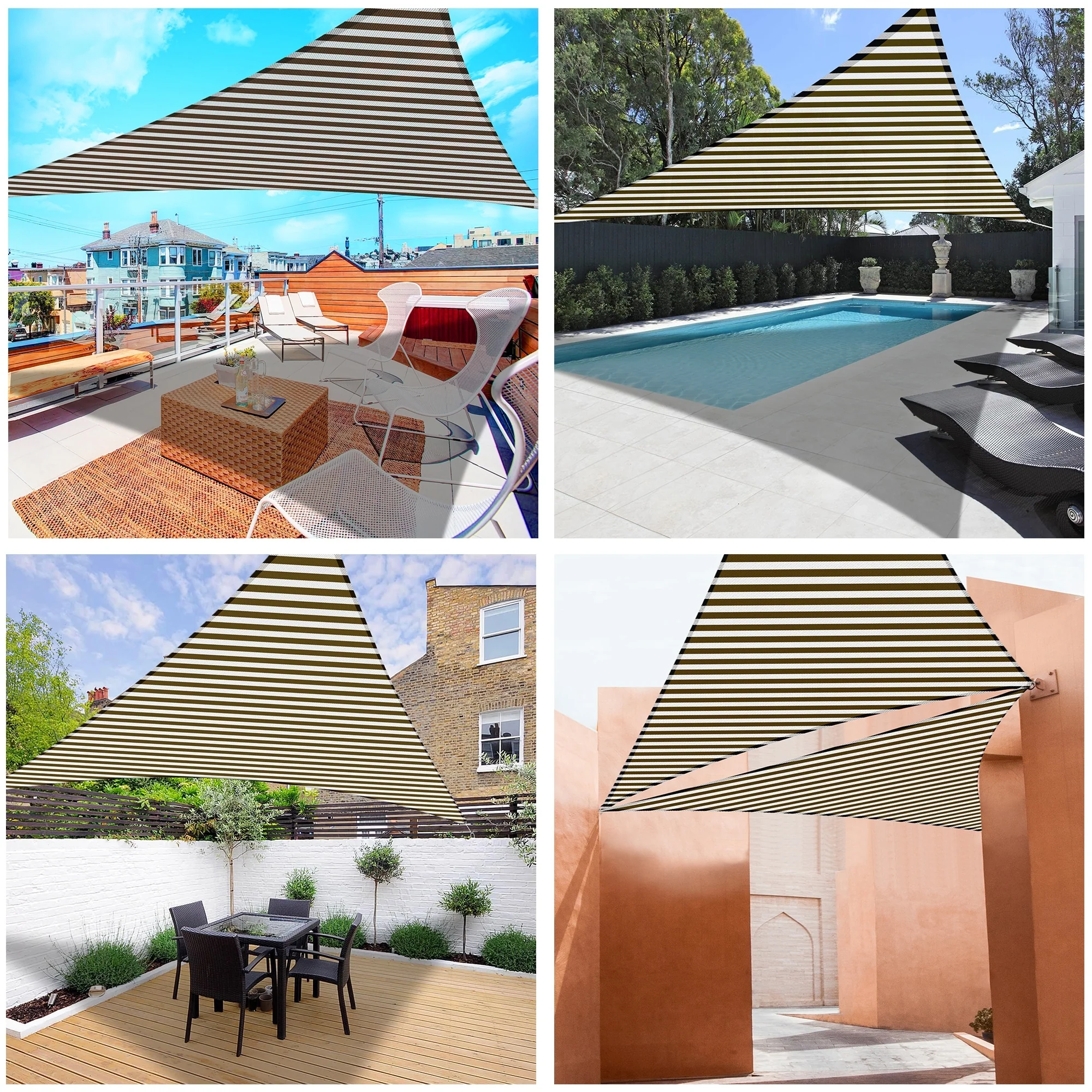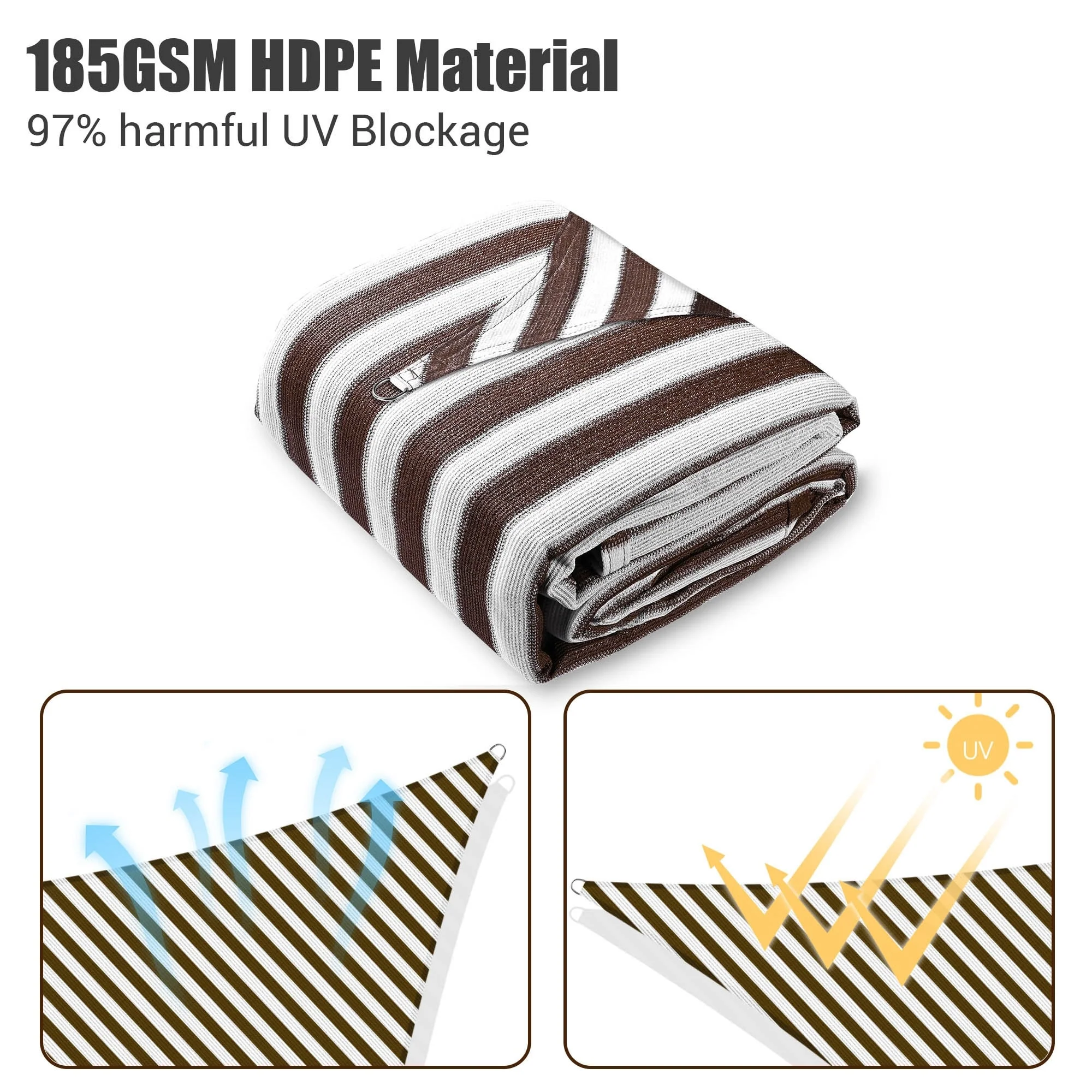 Yescom 16Ft 97% UV Block Triangle Sun Shade Sail Outdoor Patio Pool Garden Yard Lawn Carport Awning Coffee+White