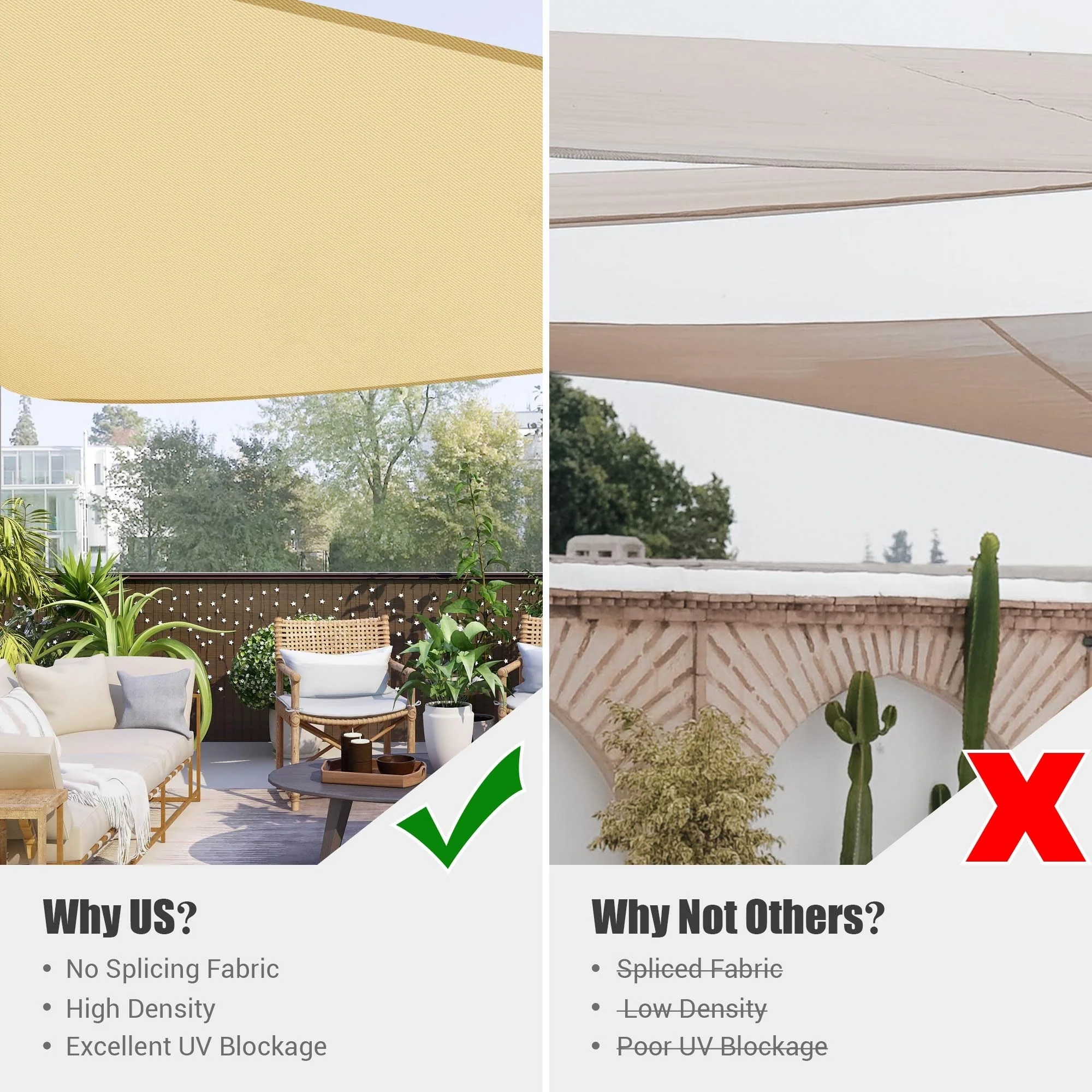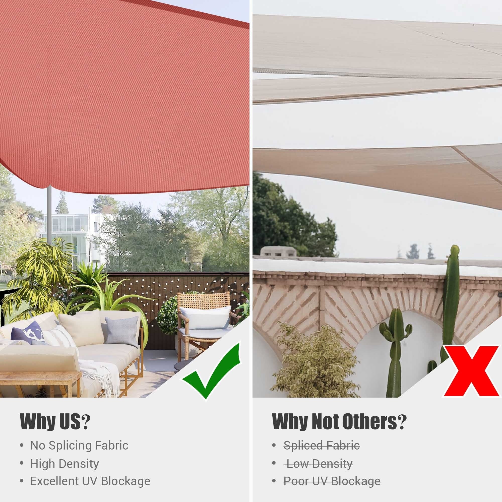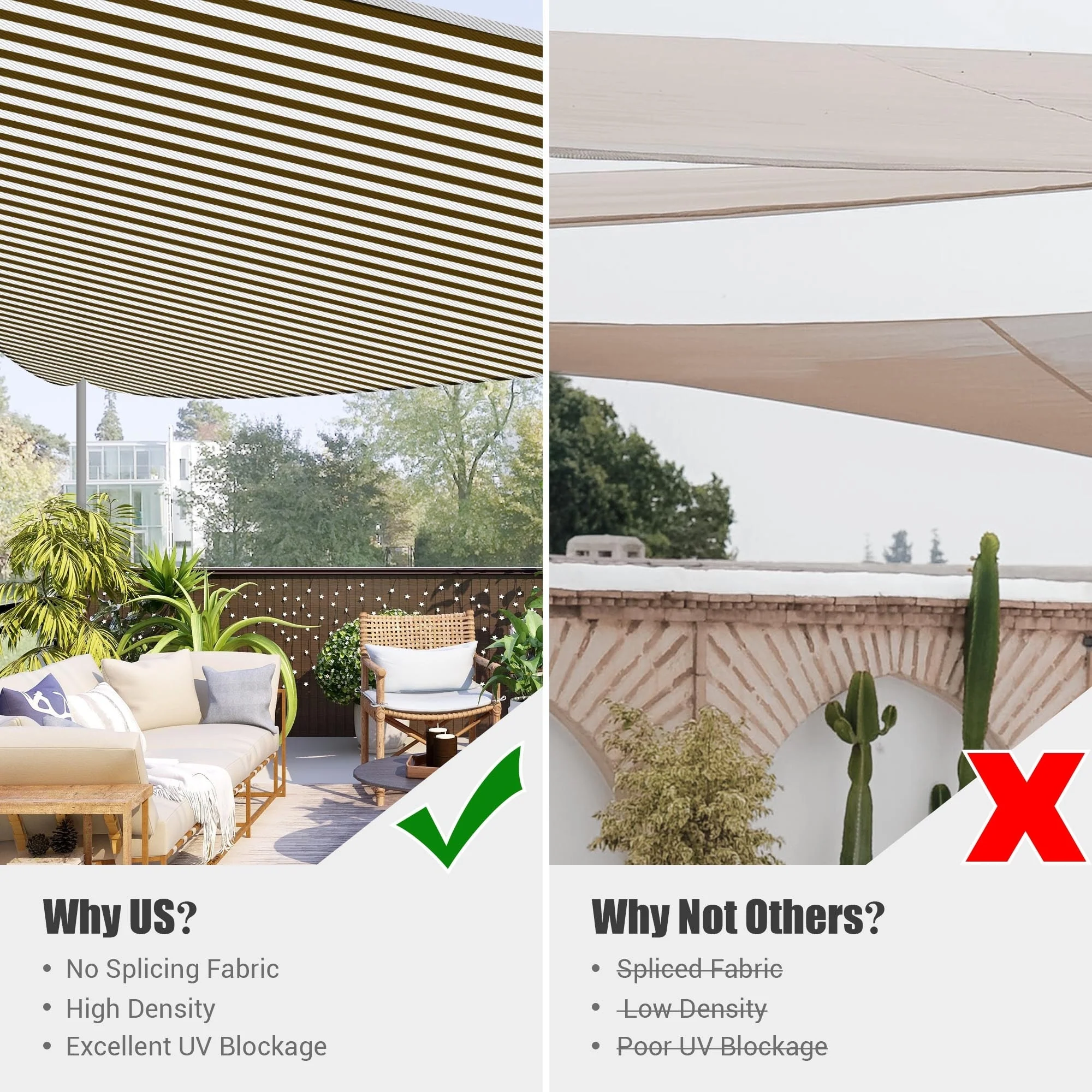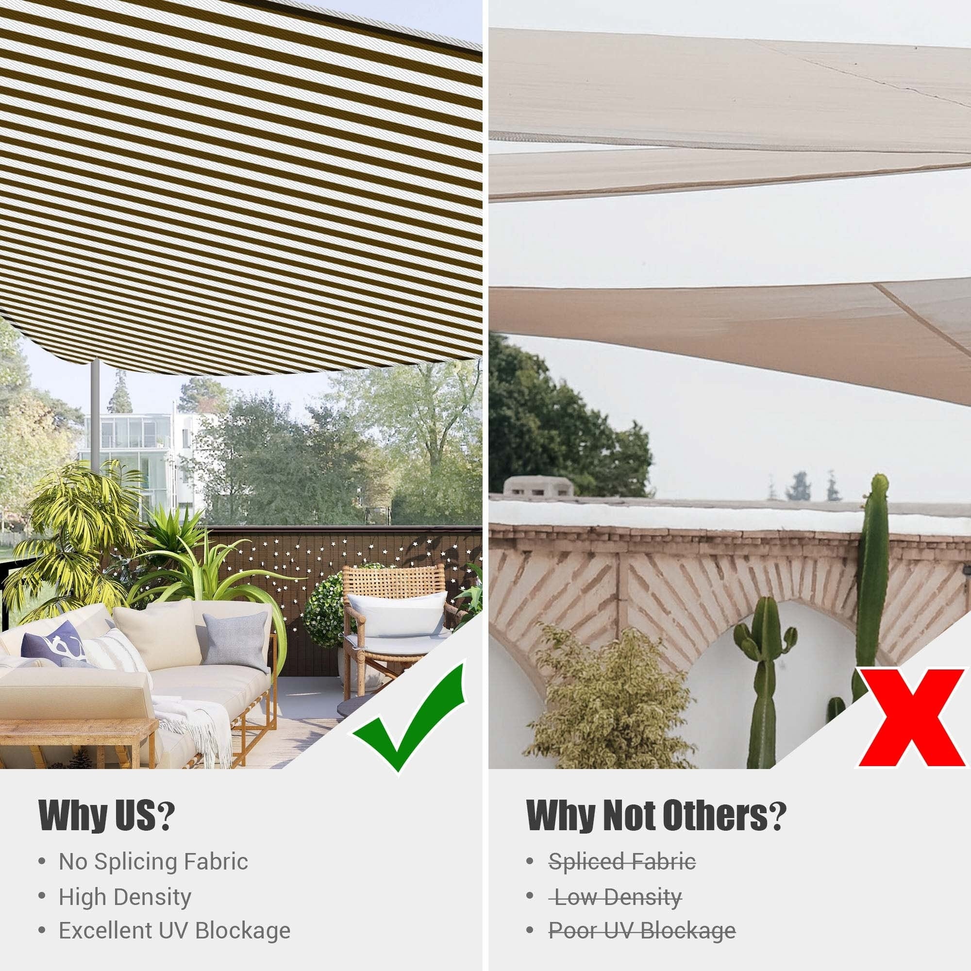 Yescom 16Ft 97% UV Block Triangle Sun Shade Sail Outdoor Patio Pool Garden Yard Lawn Carport Awning Coffee+White