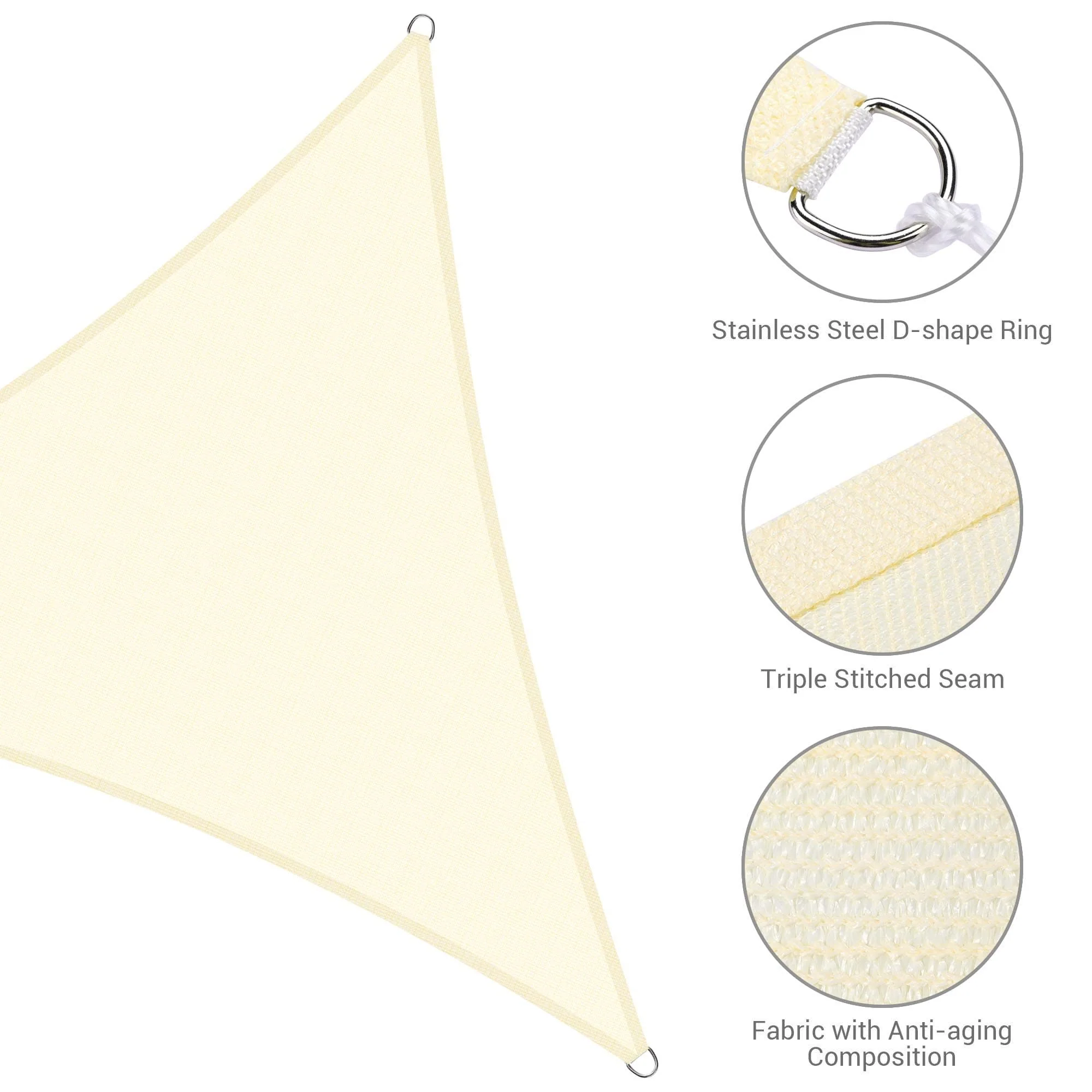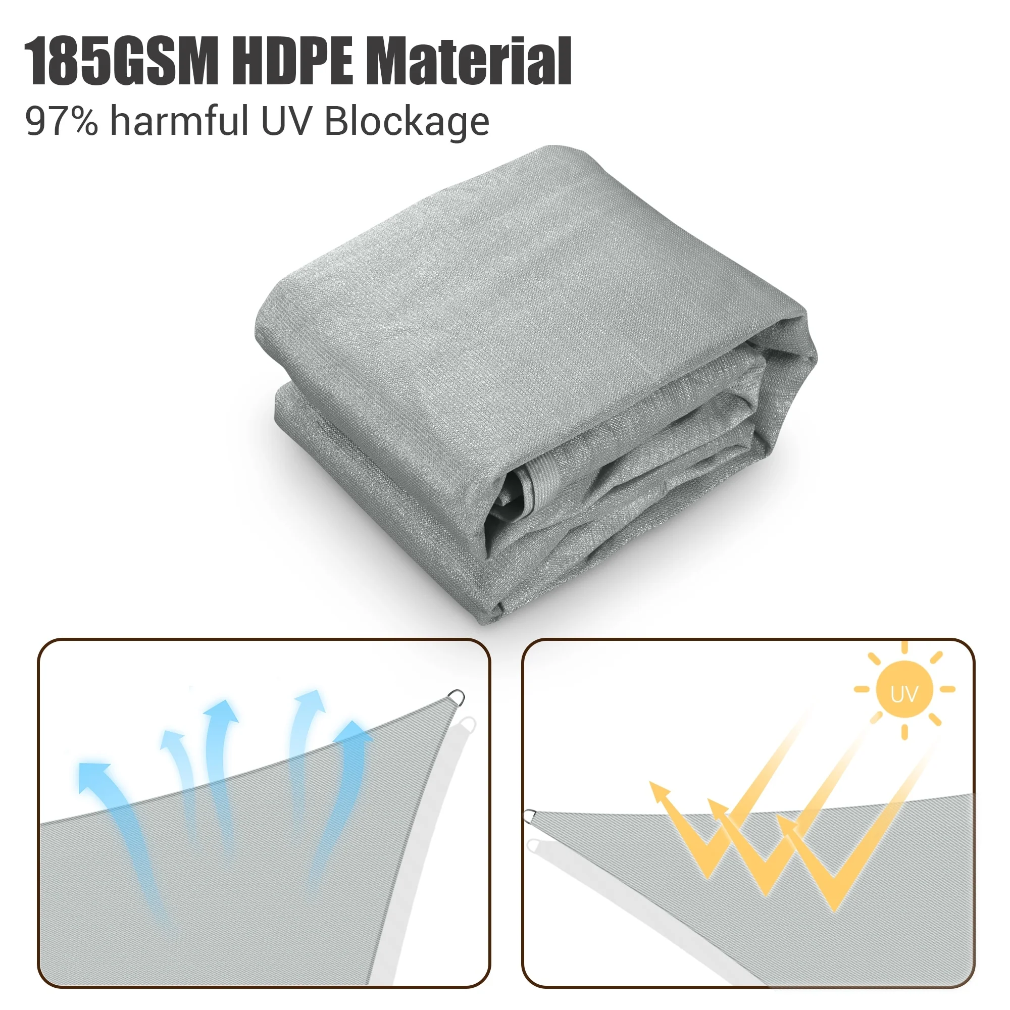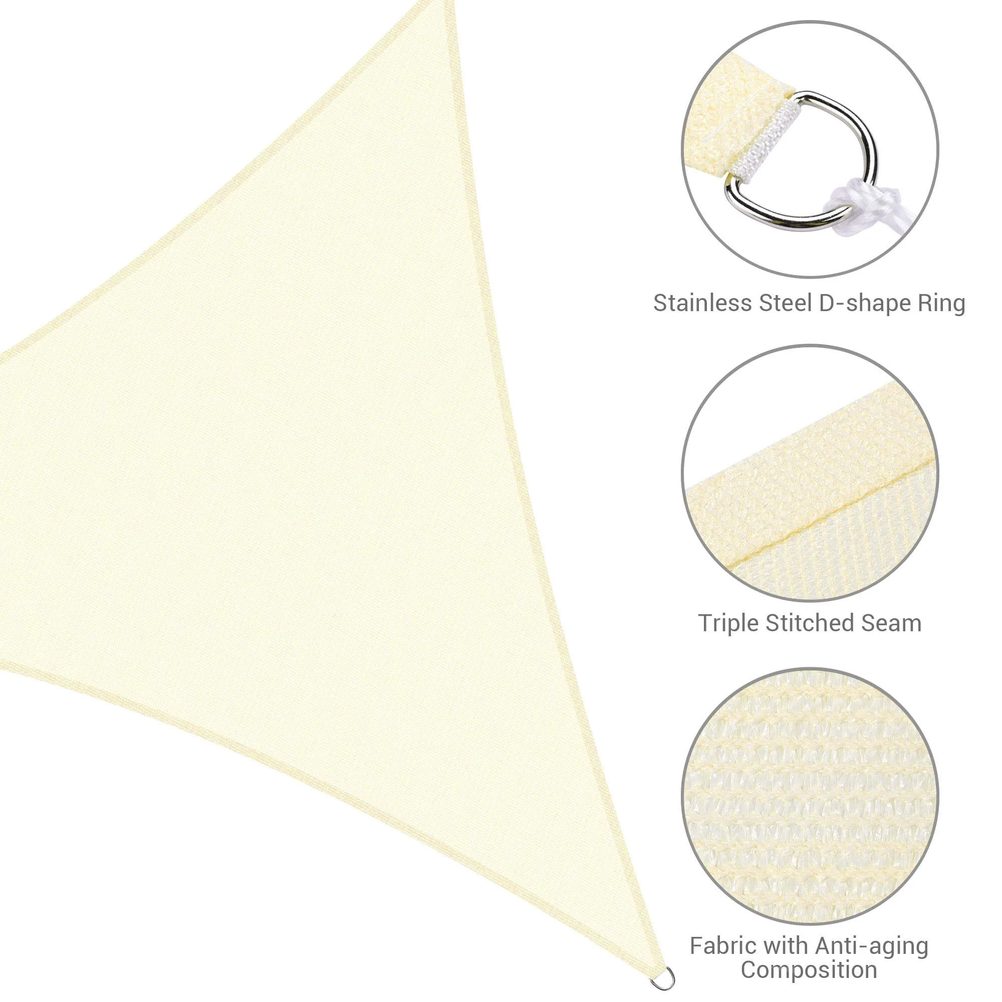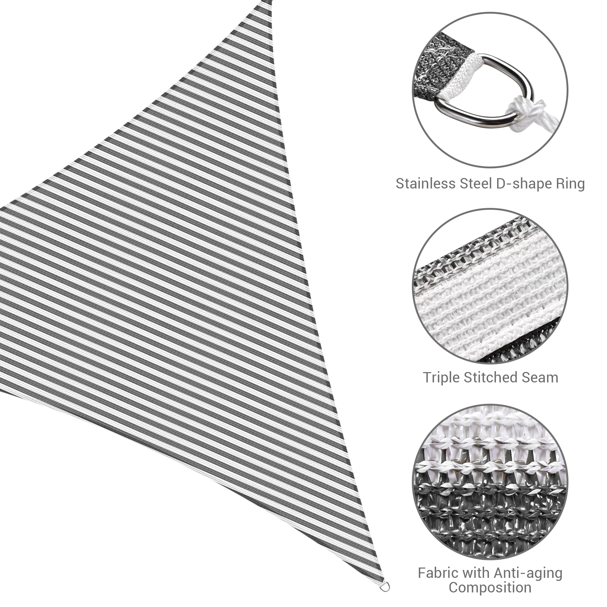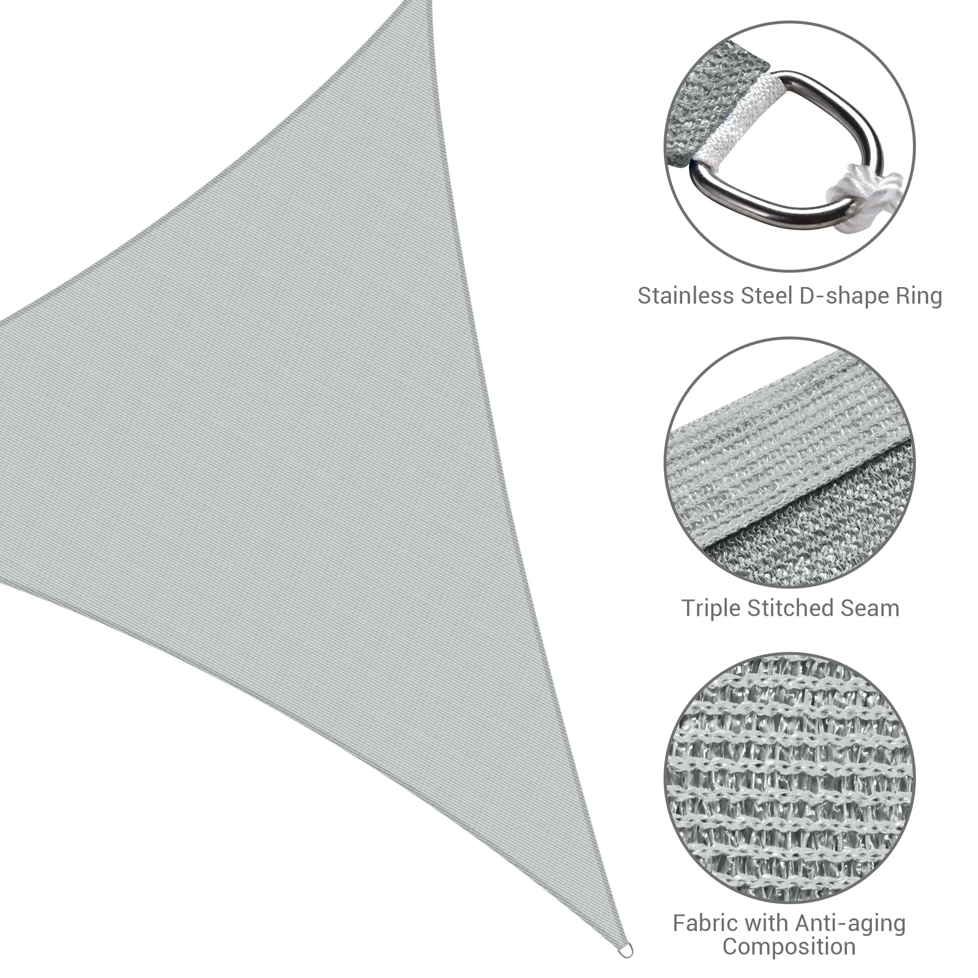 Light Gray Sun Shade Sail Triangle Canopy 185 GSM Durable Fabric UV Block Awning for Outdoor Patio Garden Backyard