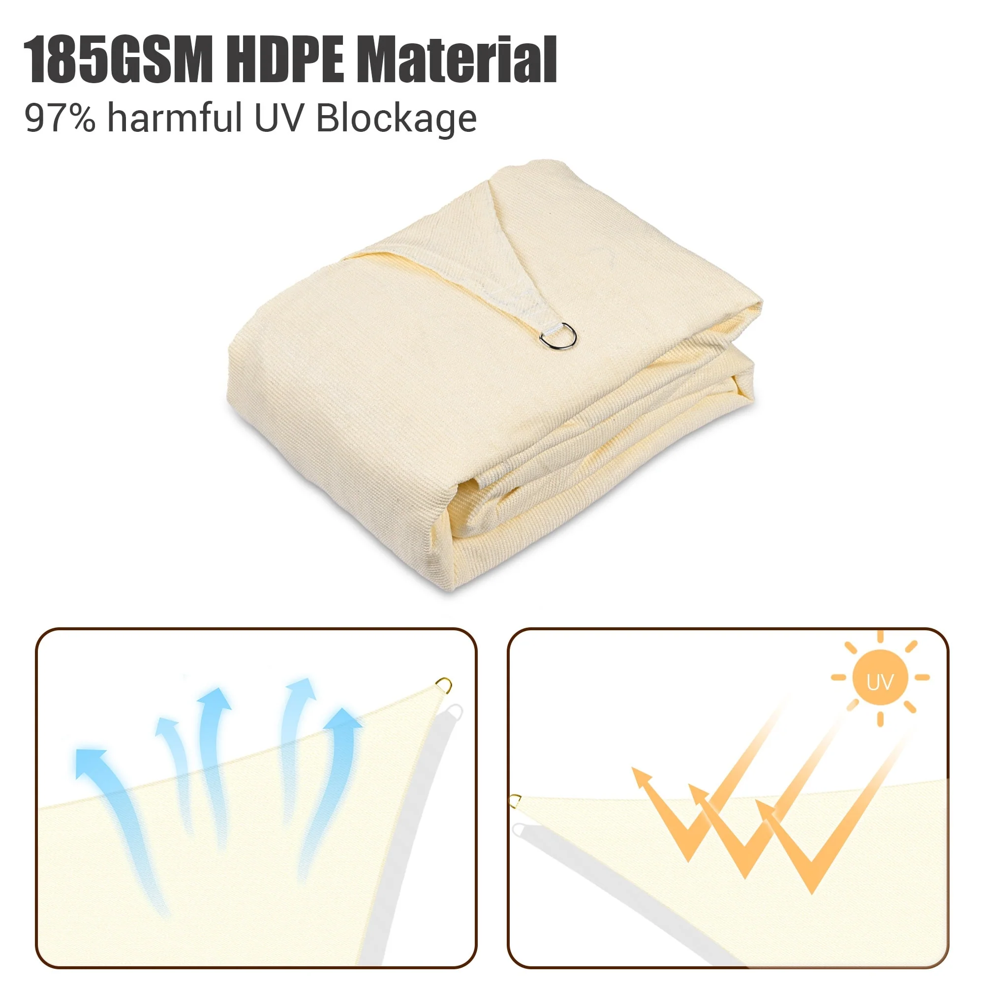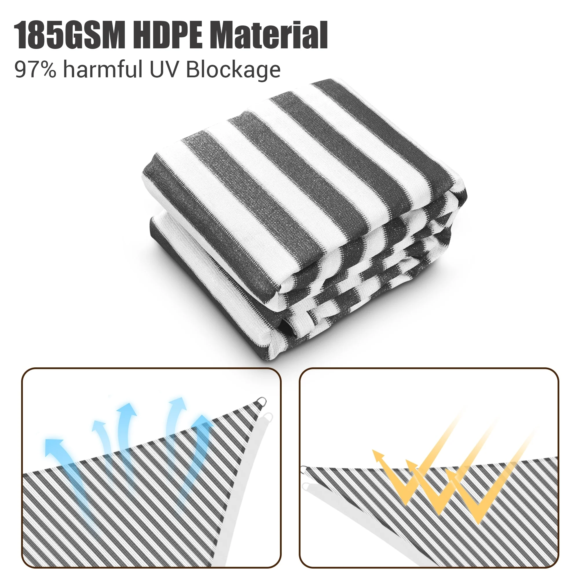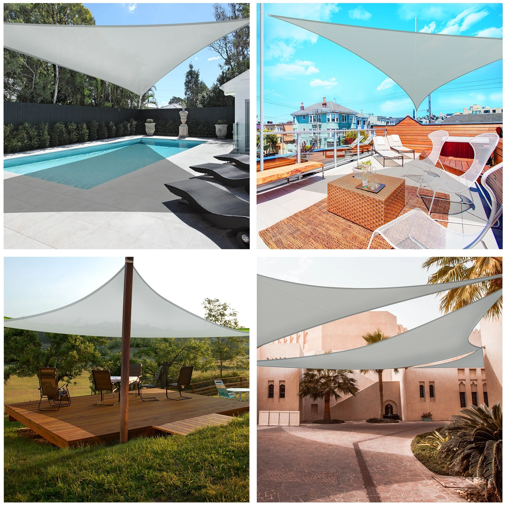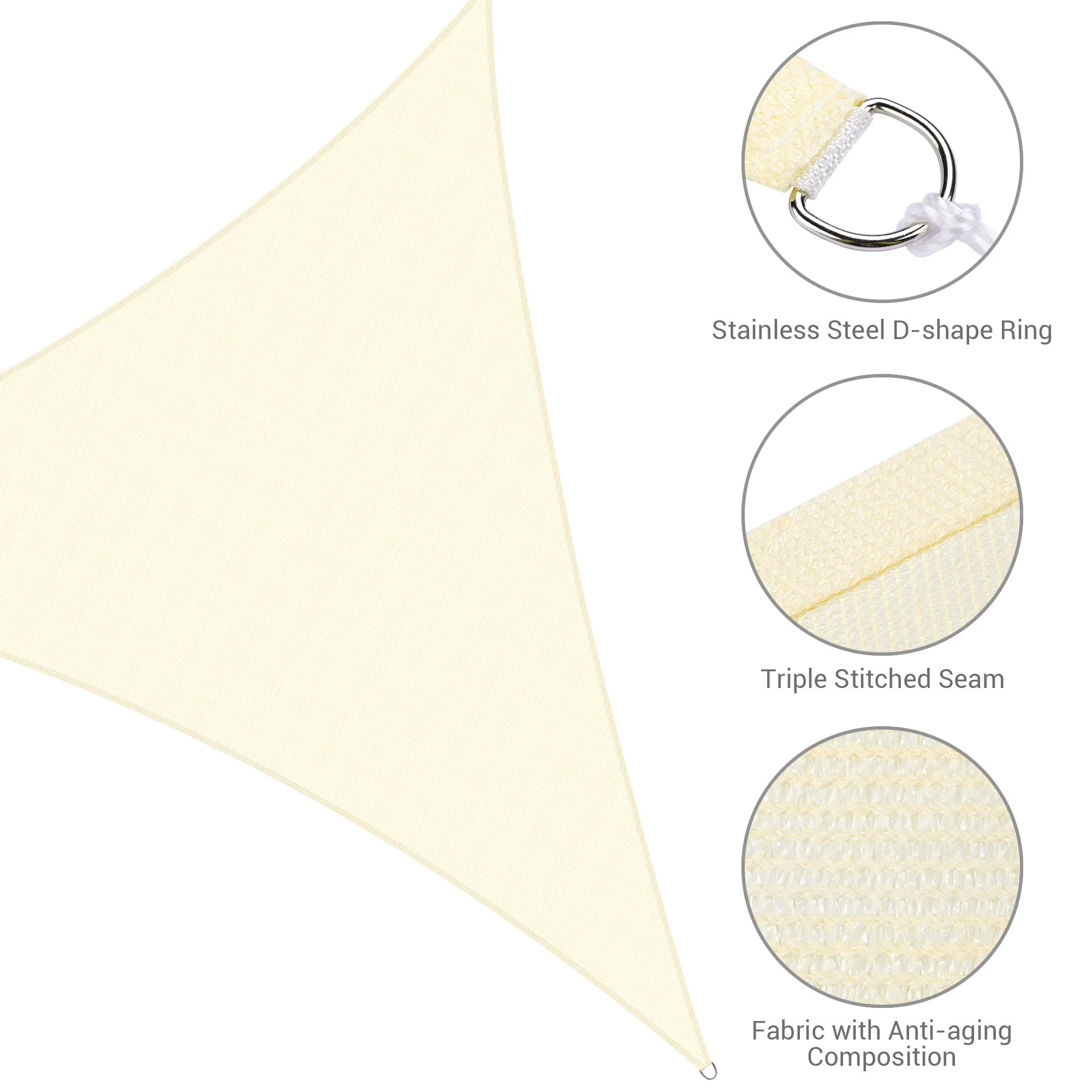 Light Gray Sun Shade Sail Triangle Canopy 185 GSM Durable Fabric UV Block Awning for Outdoor Patio Garden Backyard