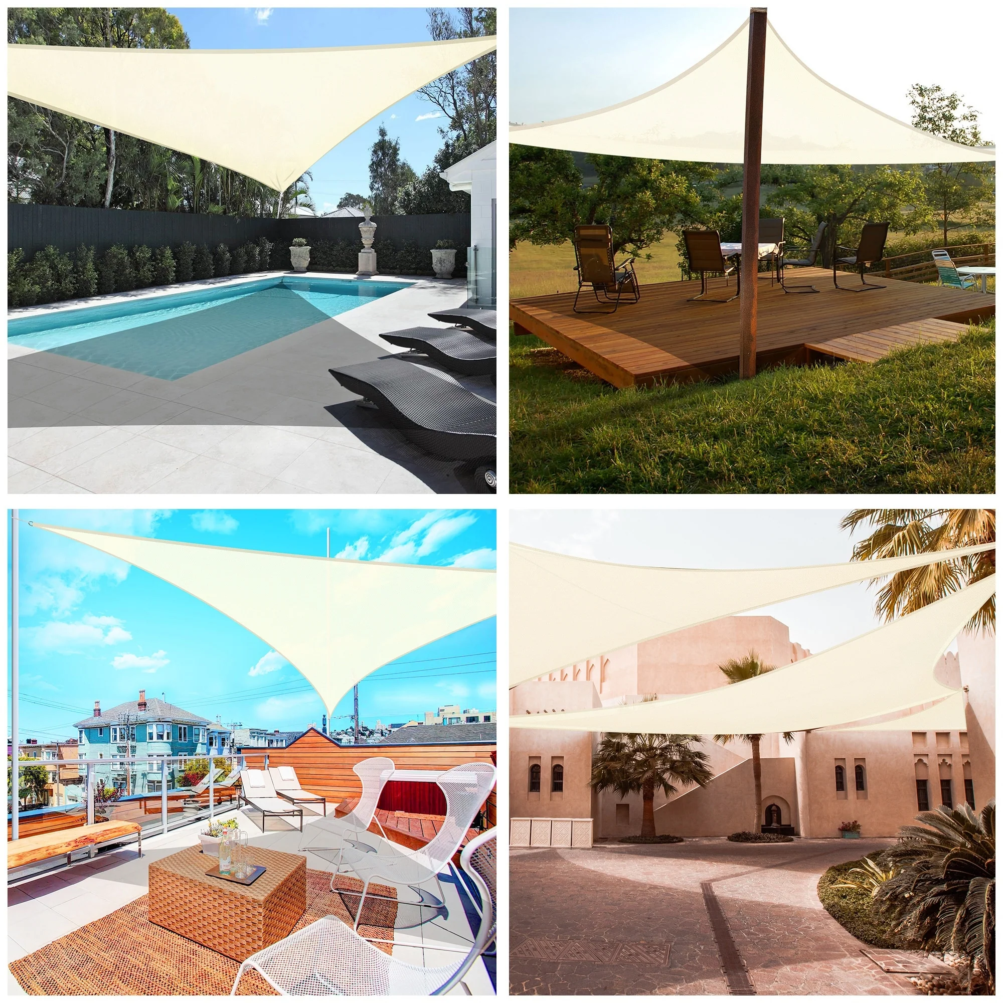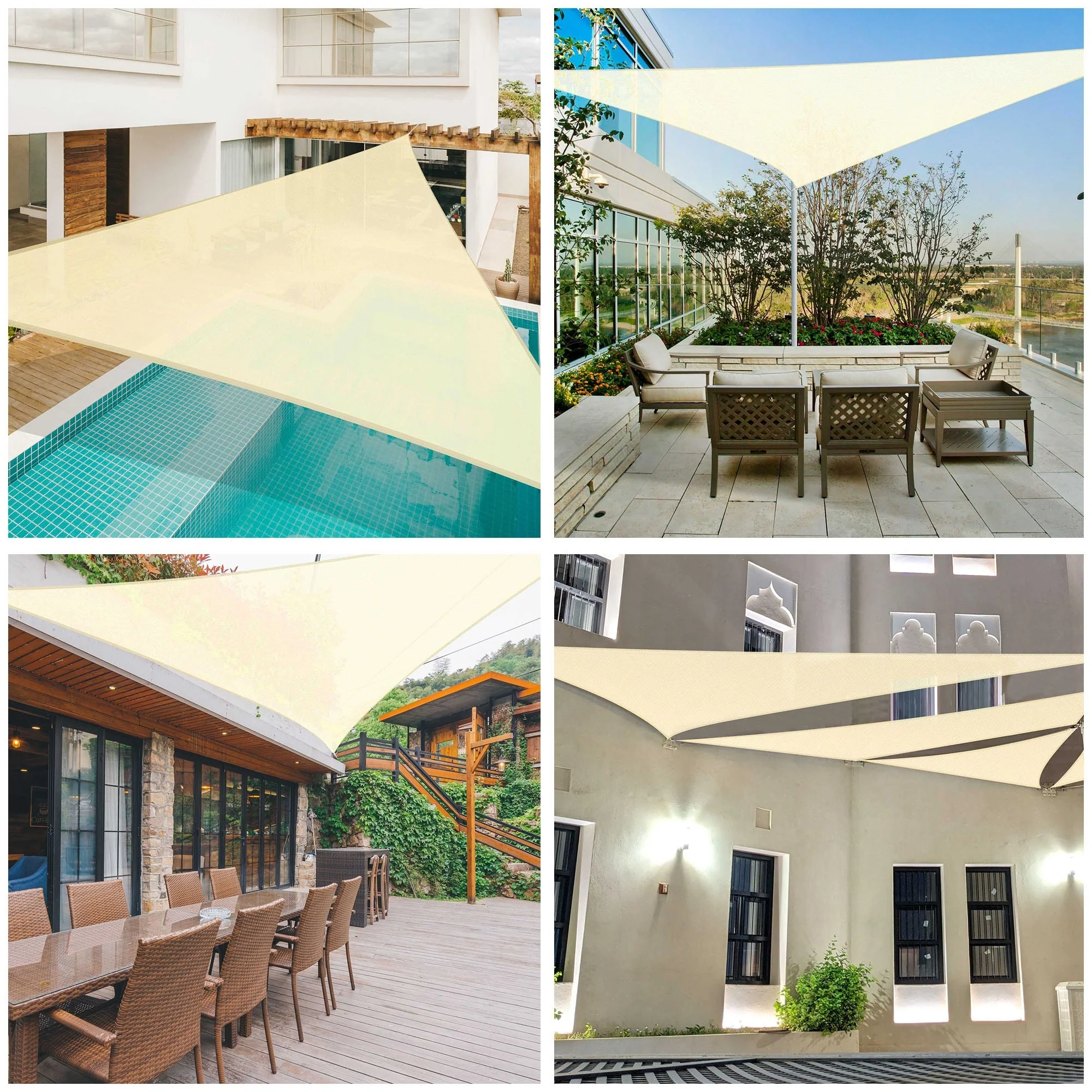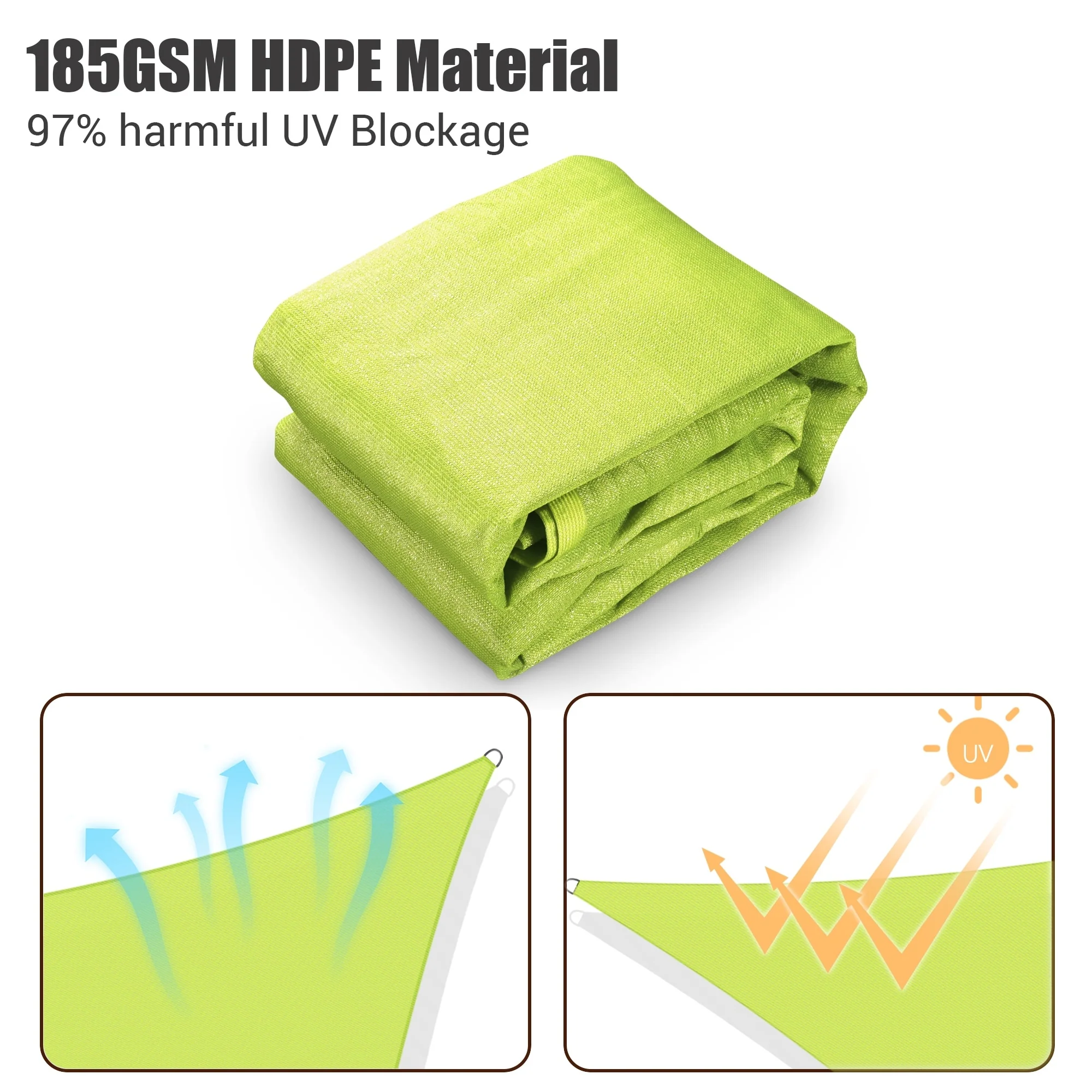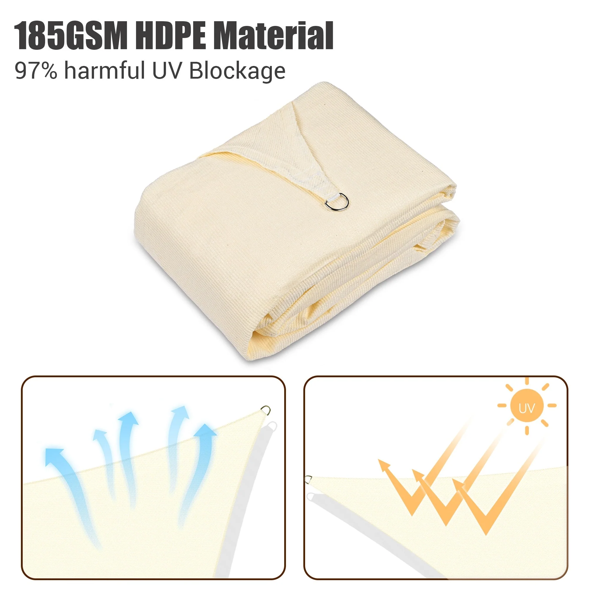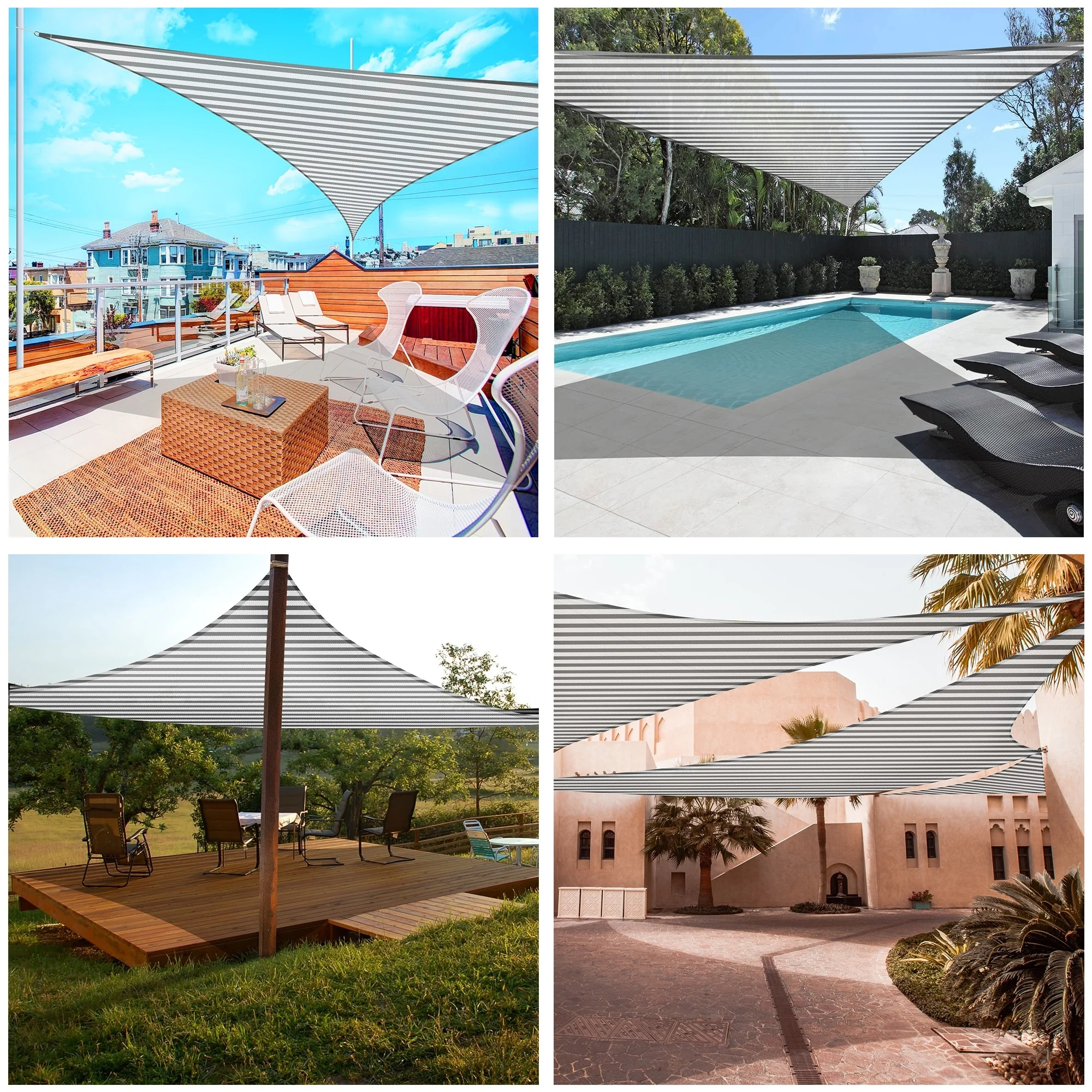 Light Gray Sun Shade Sail Triangle Canopy 185 GSM Durable Fabric UV Block Awning for Outdoor Patio Garden Backyard