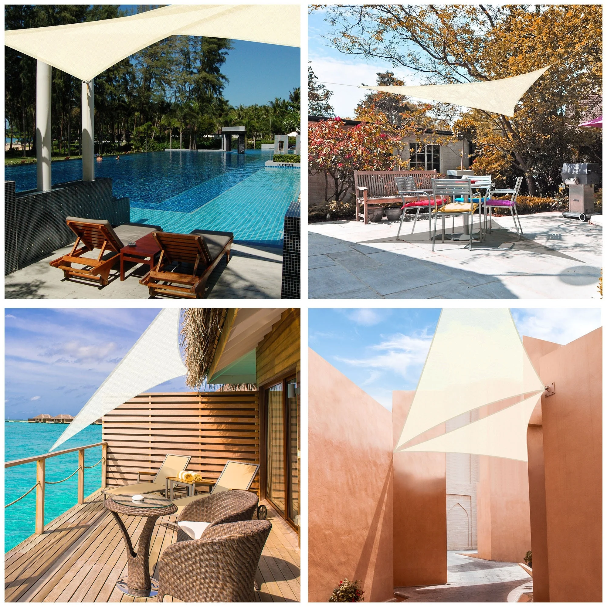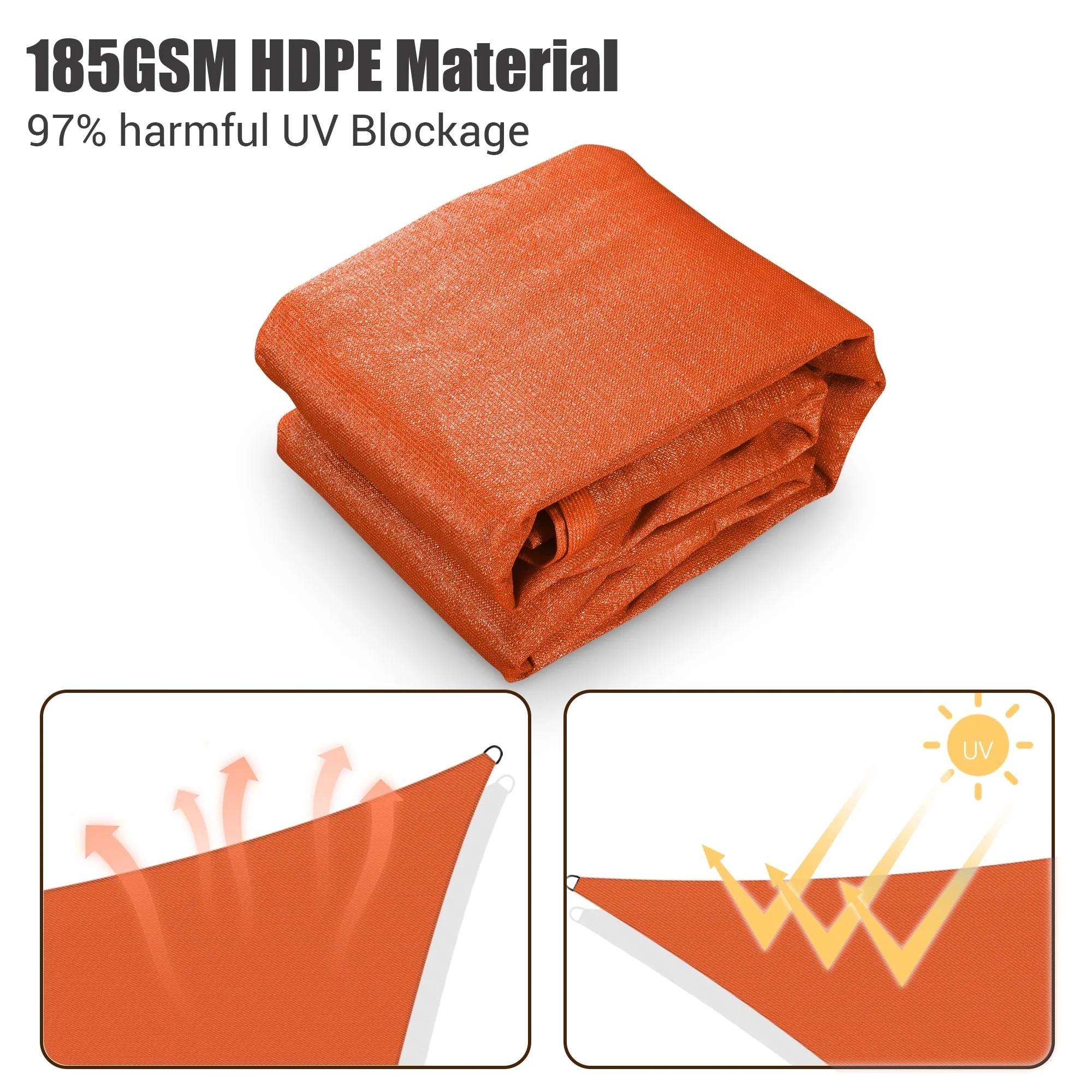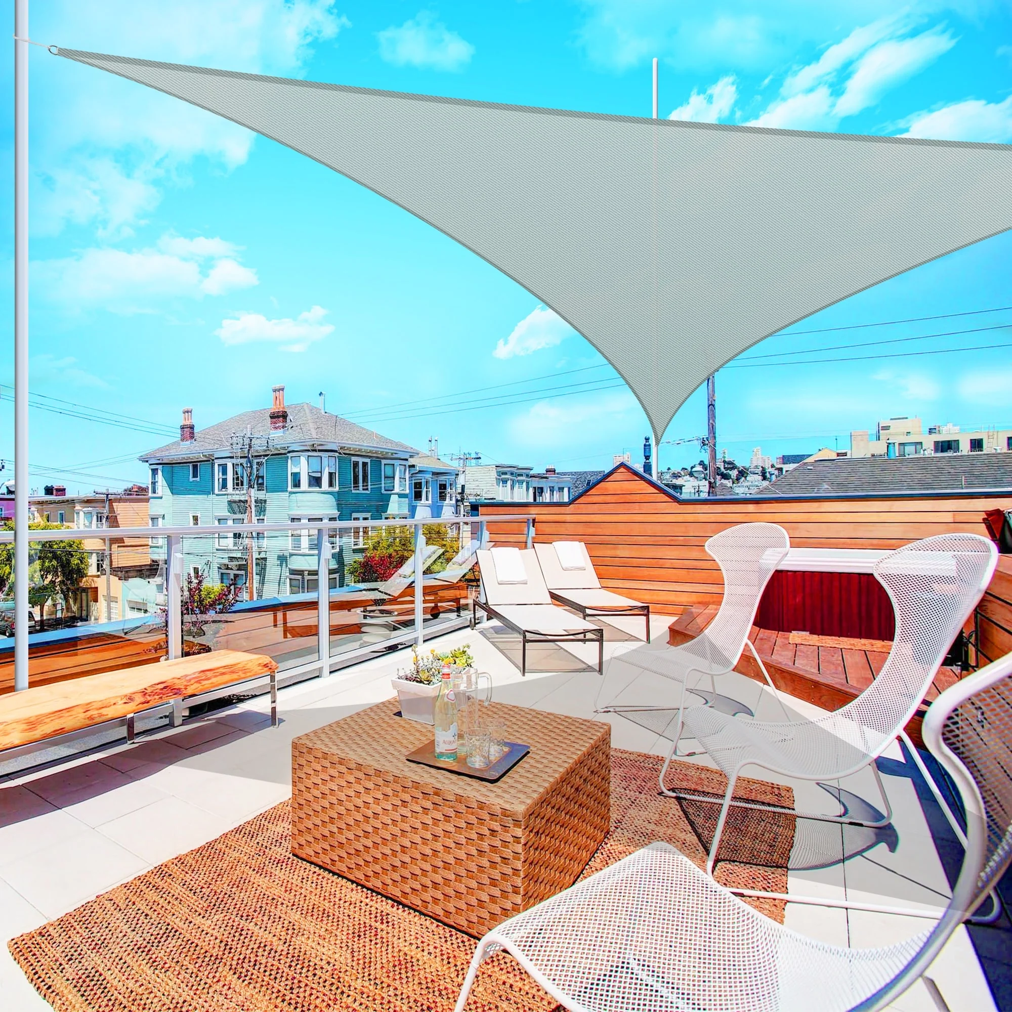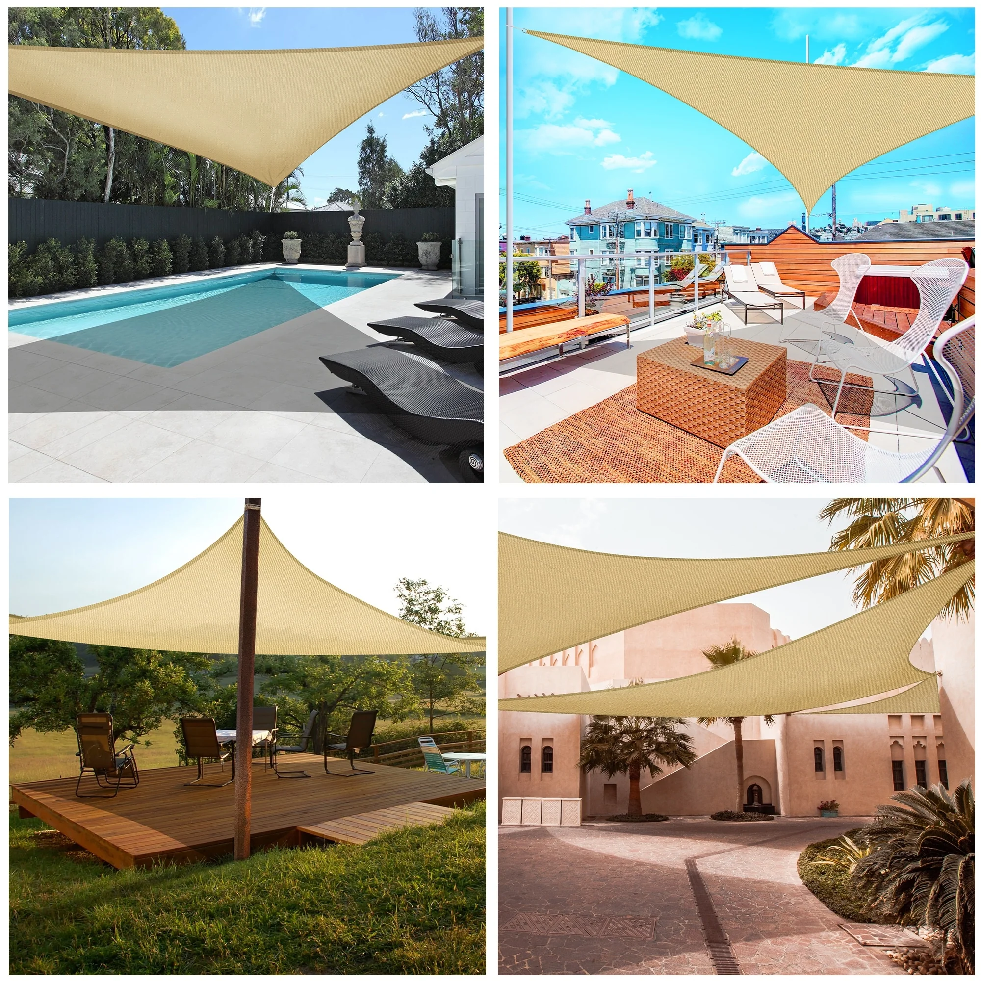 Light Gray Sun Shade Sail Triangle Canopy 185 GSM Durable Fabric UV Block Awning for Outdoor Patio Garden Backyard