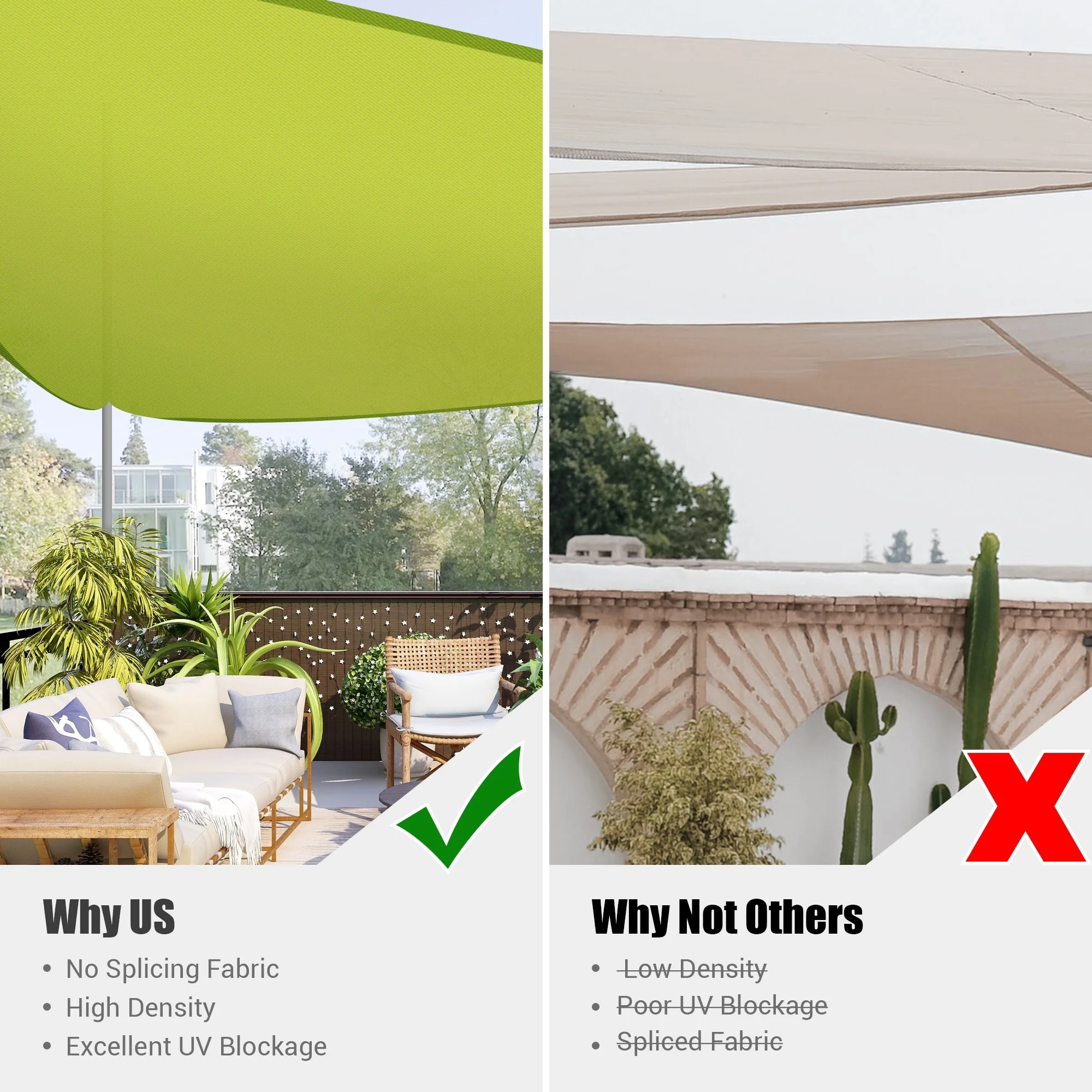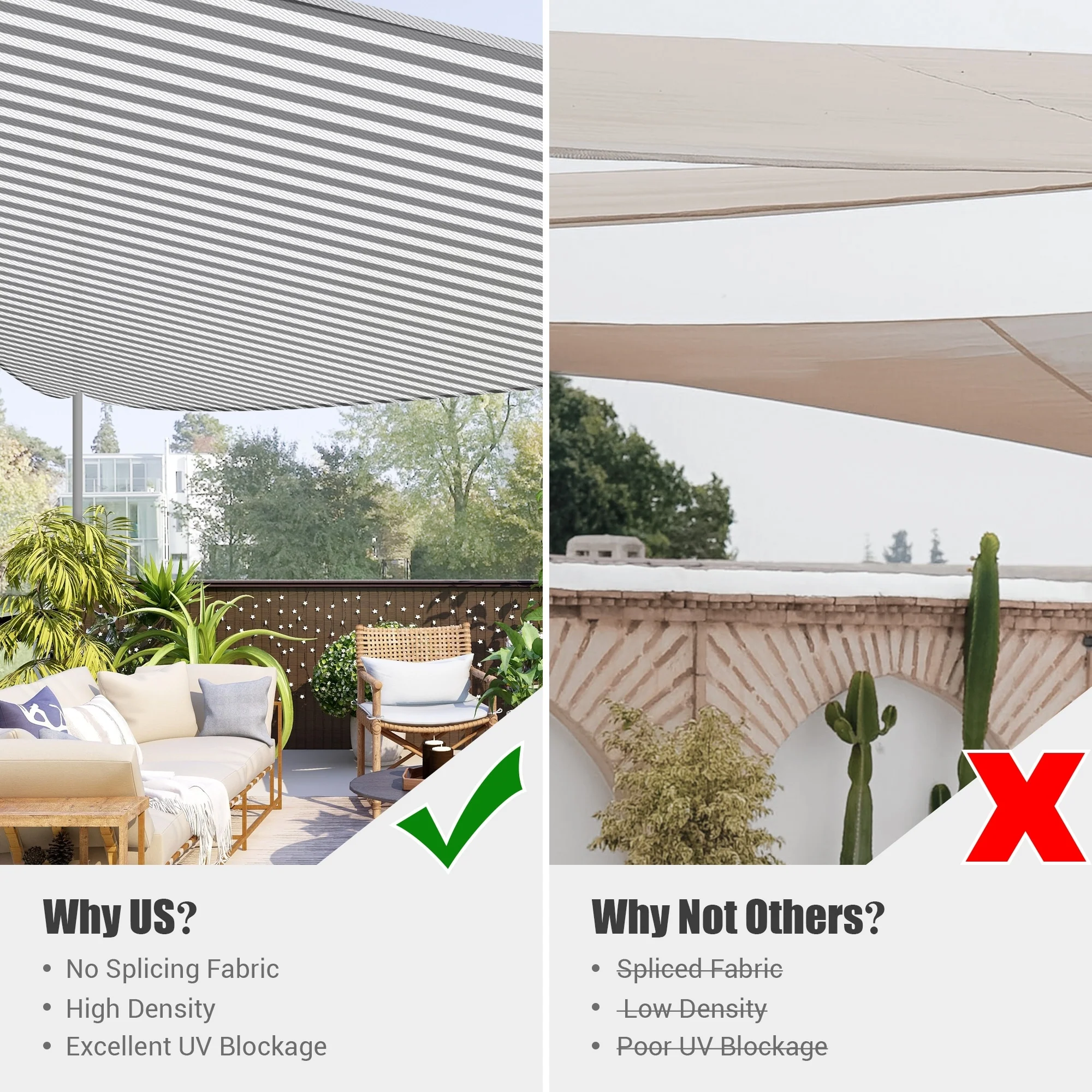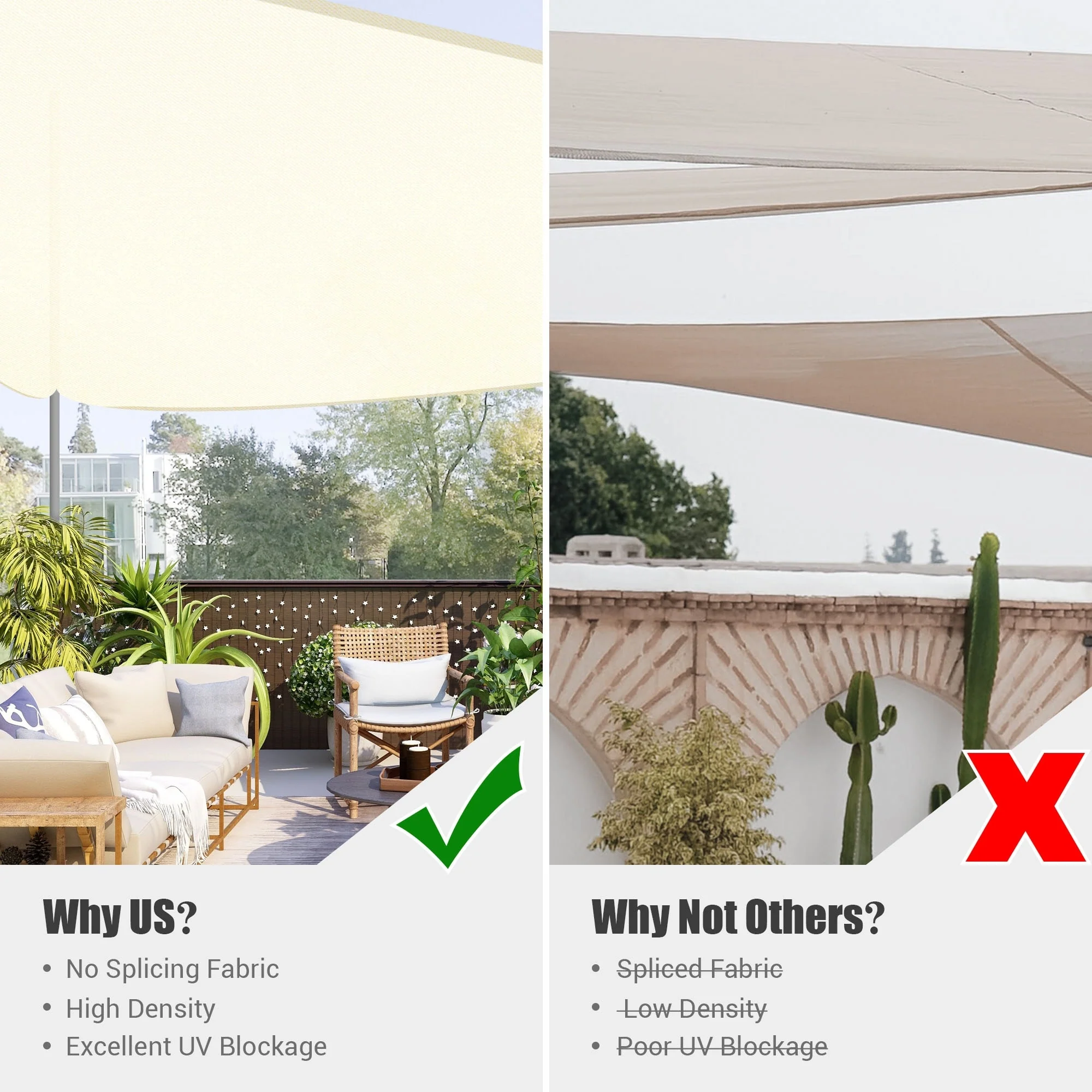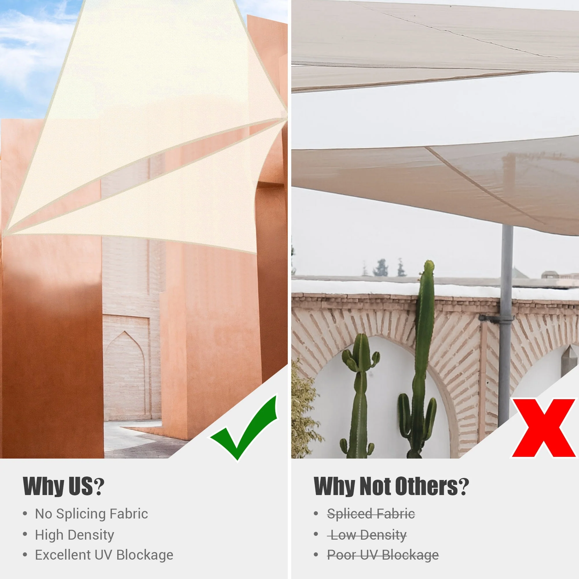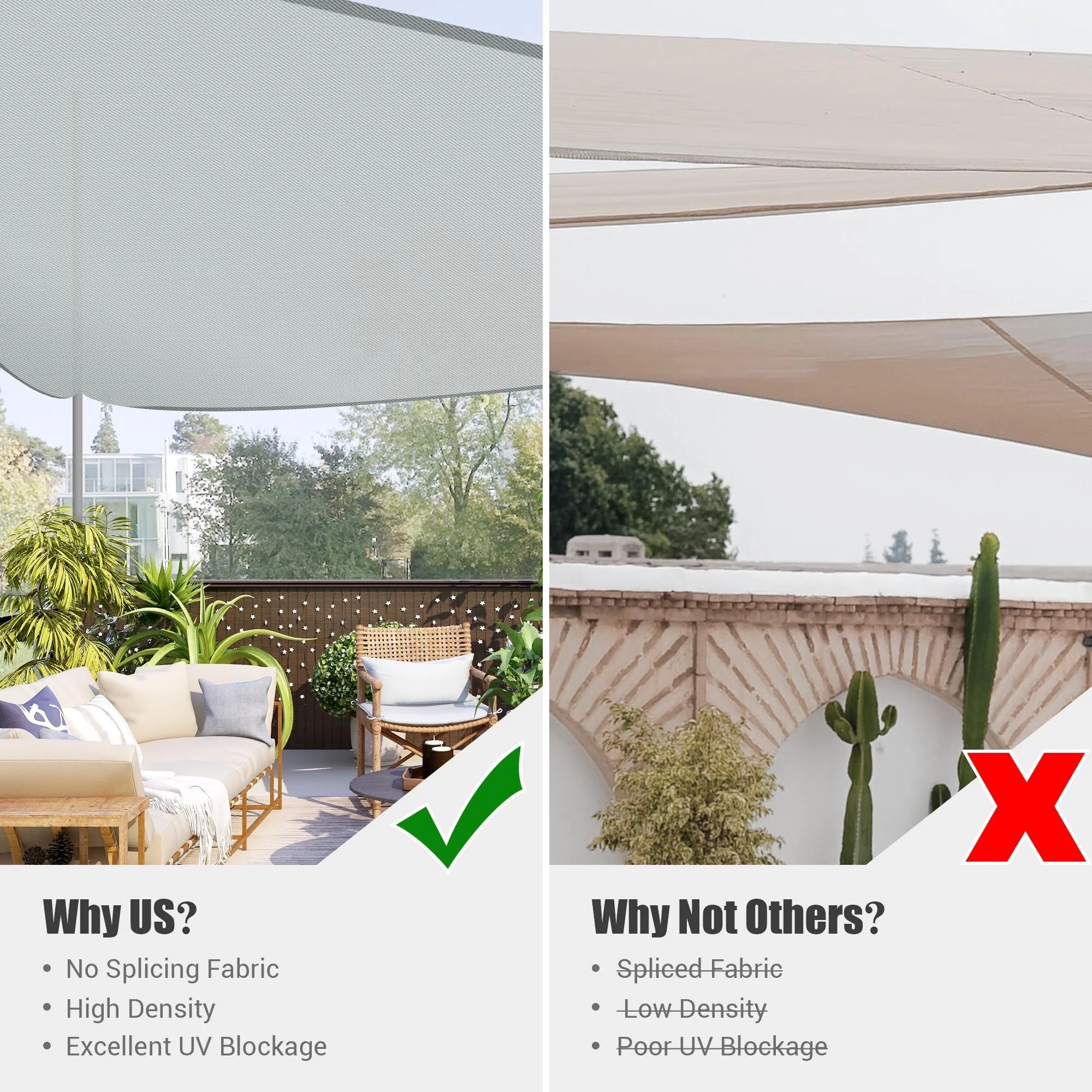 Light Gray Sun Shade Sail Triangle Canopy 185 GSM Durable Fabric UV Block Awning for Outdoor Patio Garden Backyard