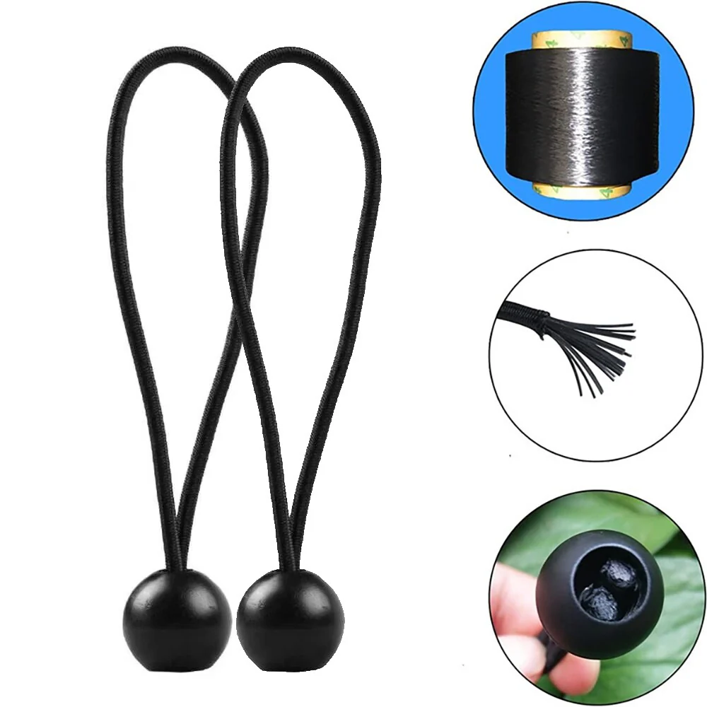 Shatex Heavy-Duty Black UV Treated Stretch Tie Loops, Reusable 6 in. 12-Pack Ball Bungee Canopy Tarp Tie Down Cord - 12pack
