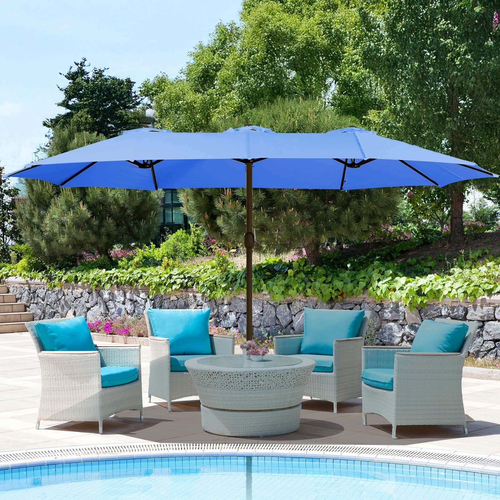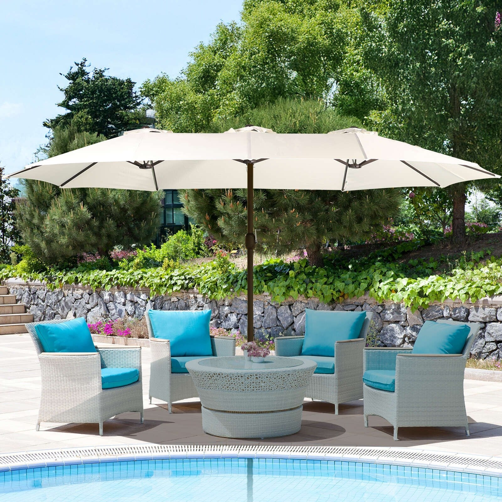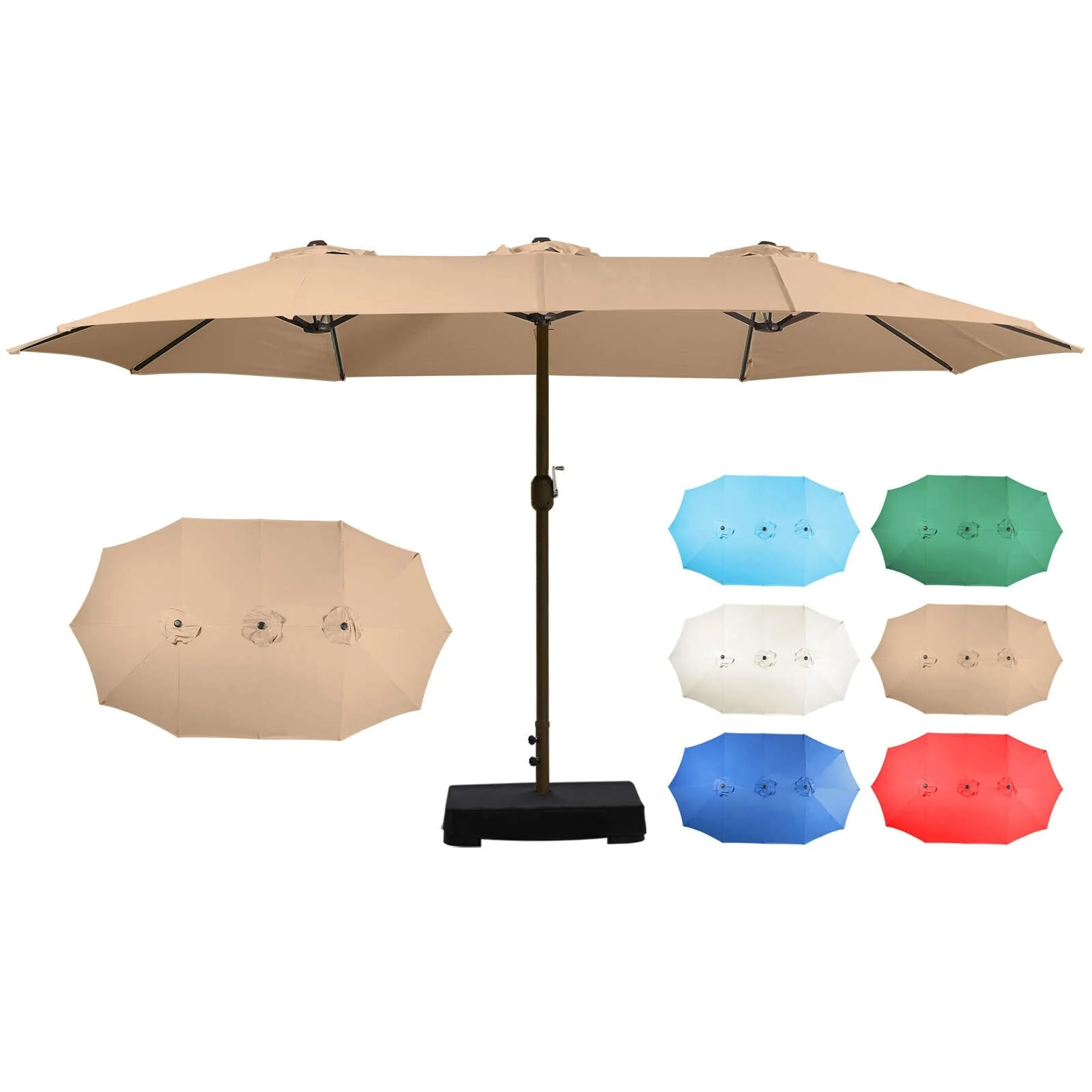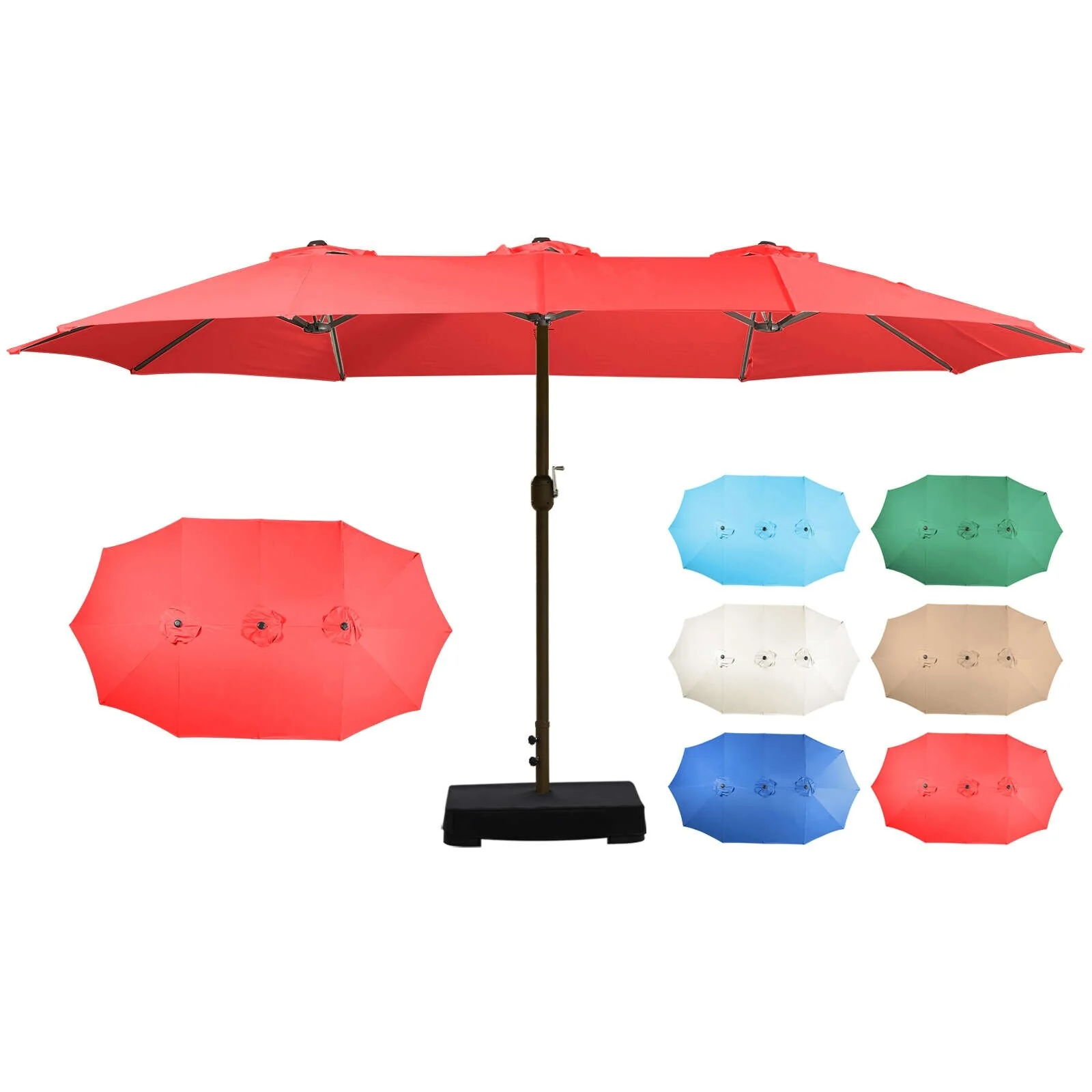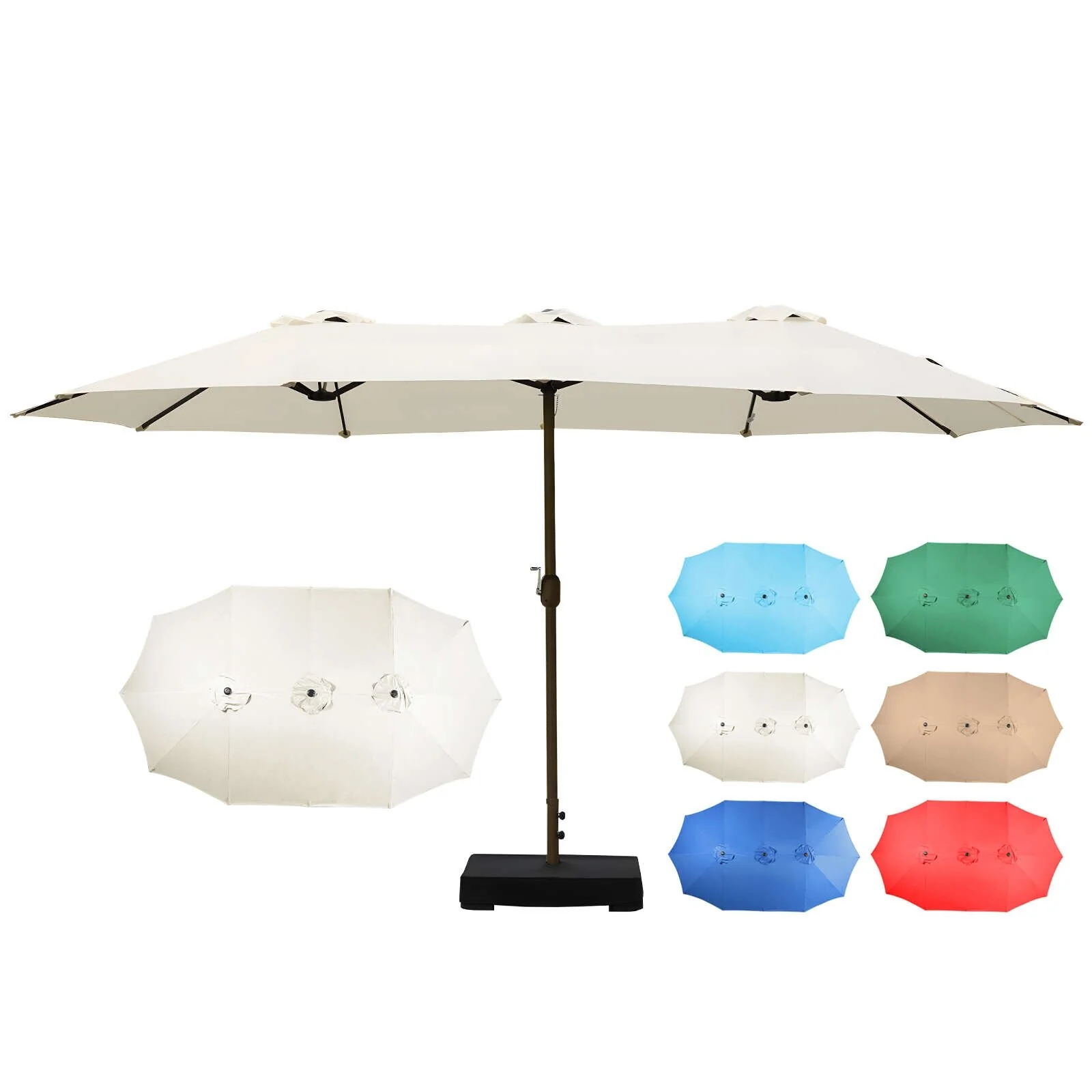 Aoodor 15ft Outdoor Double Sided Market Patio Umbrella with Base Stand