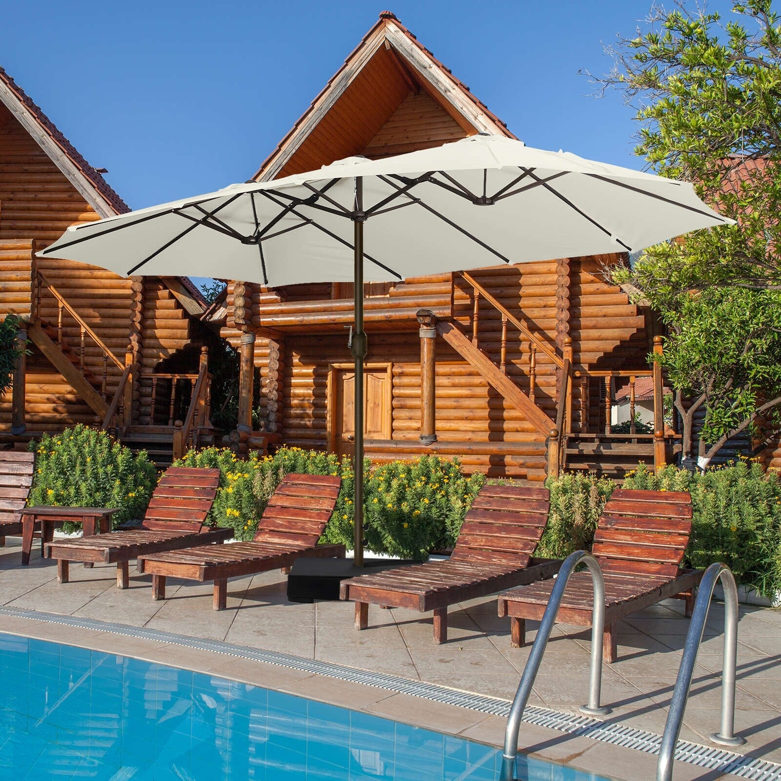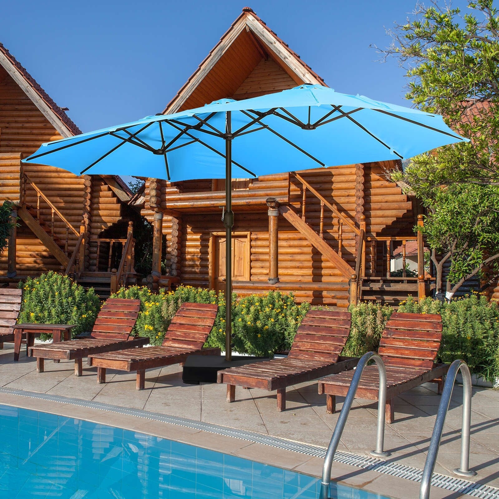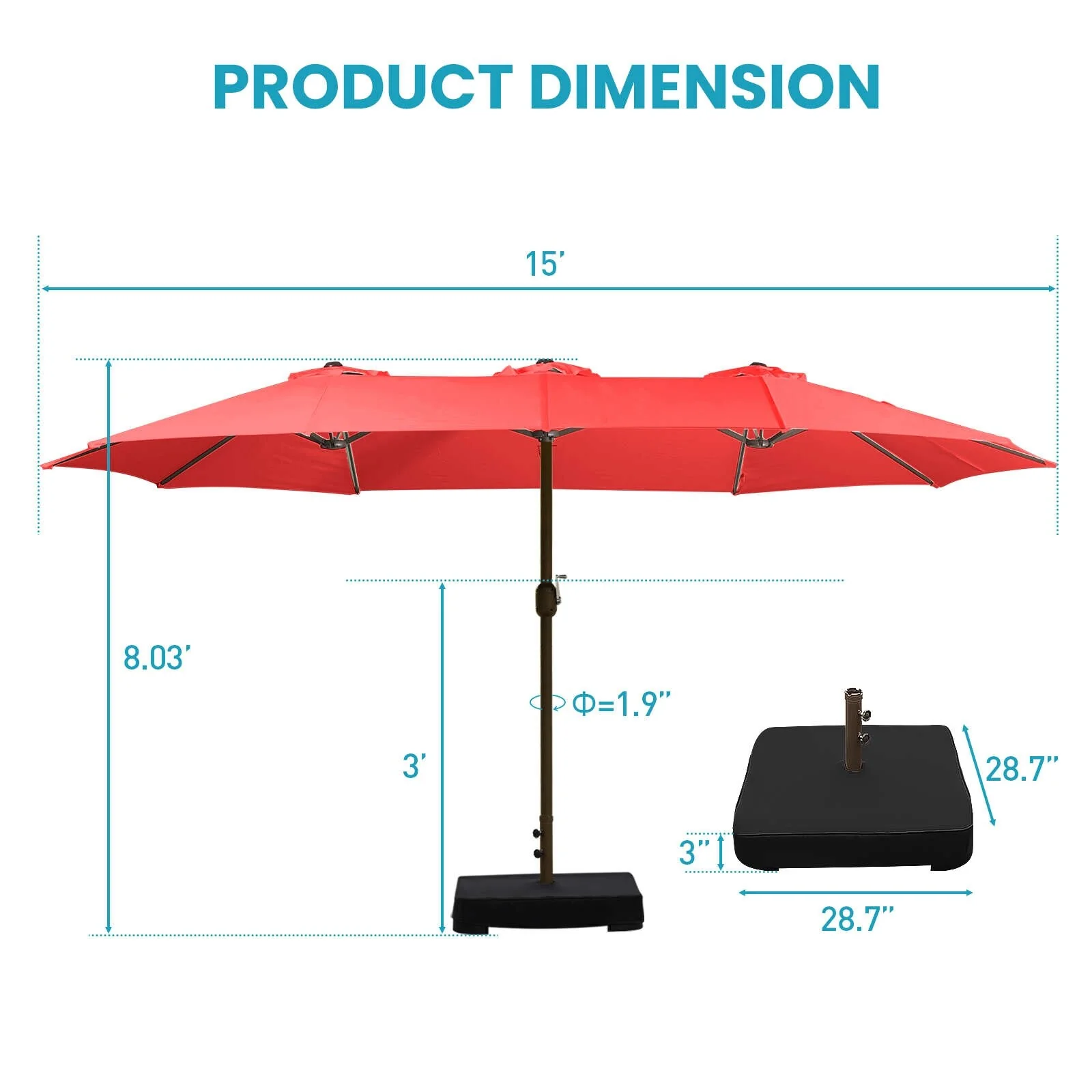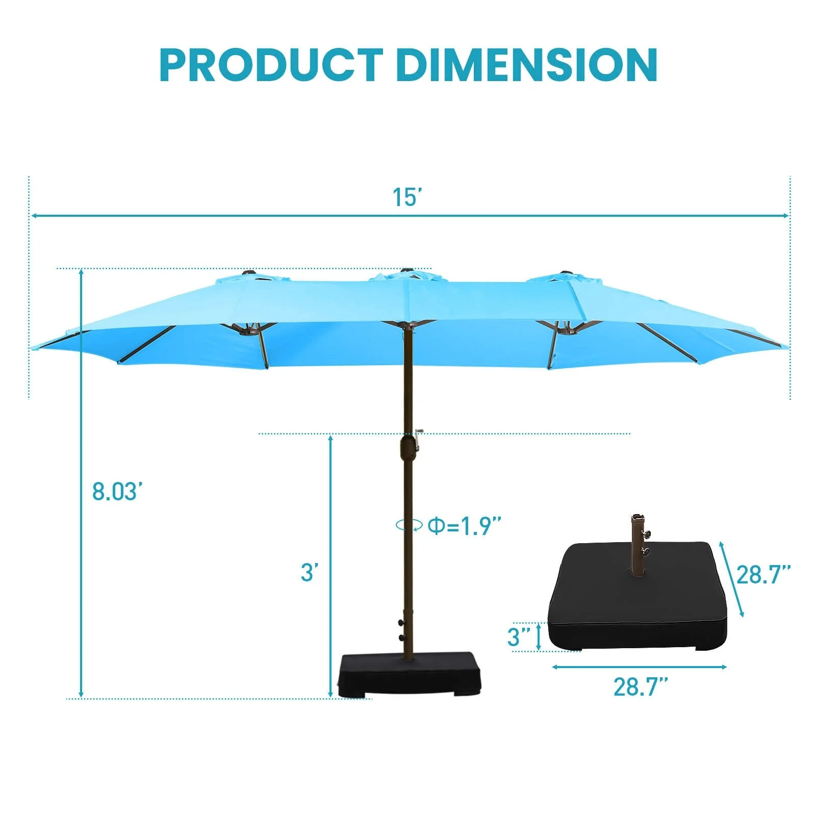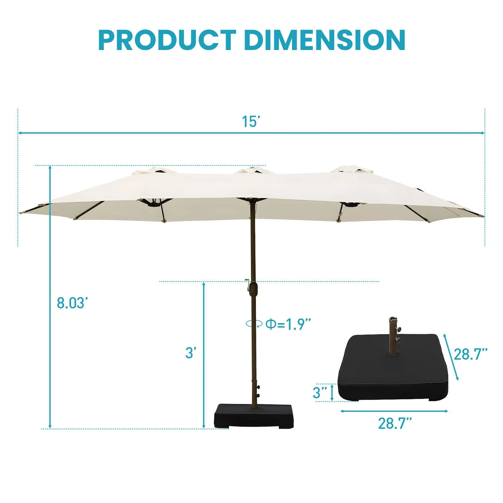 Aoodor 15ft Outdoor Double Sided Market Patio Umbrella with Base Stand