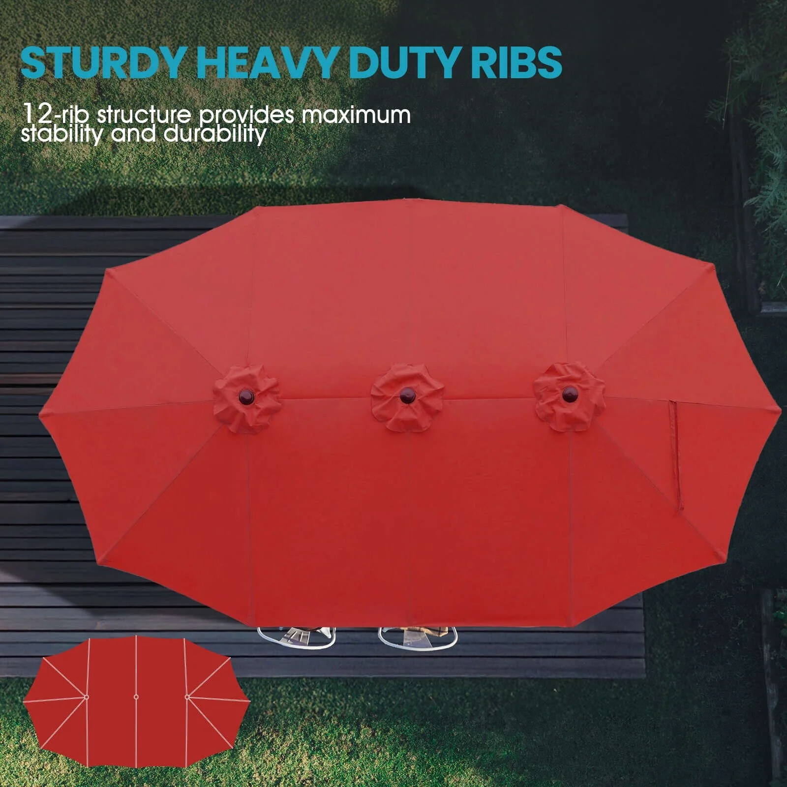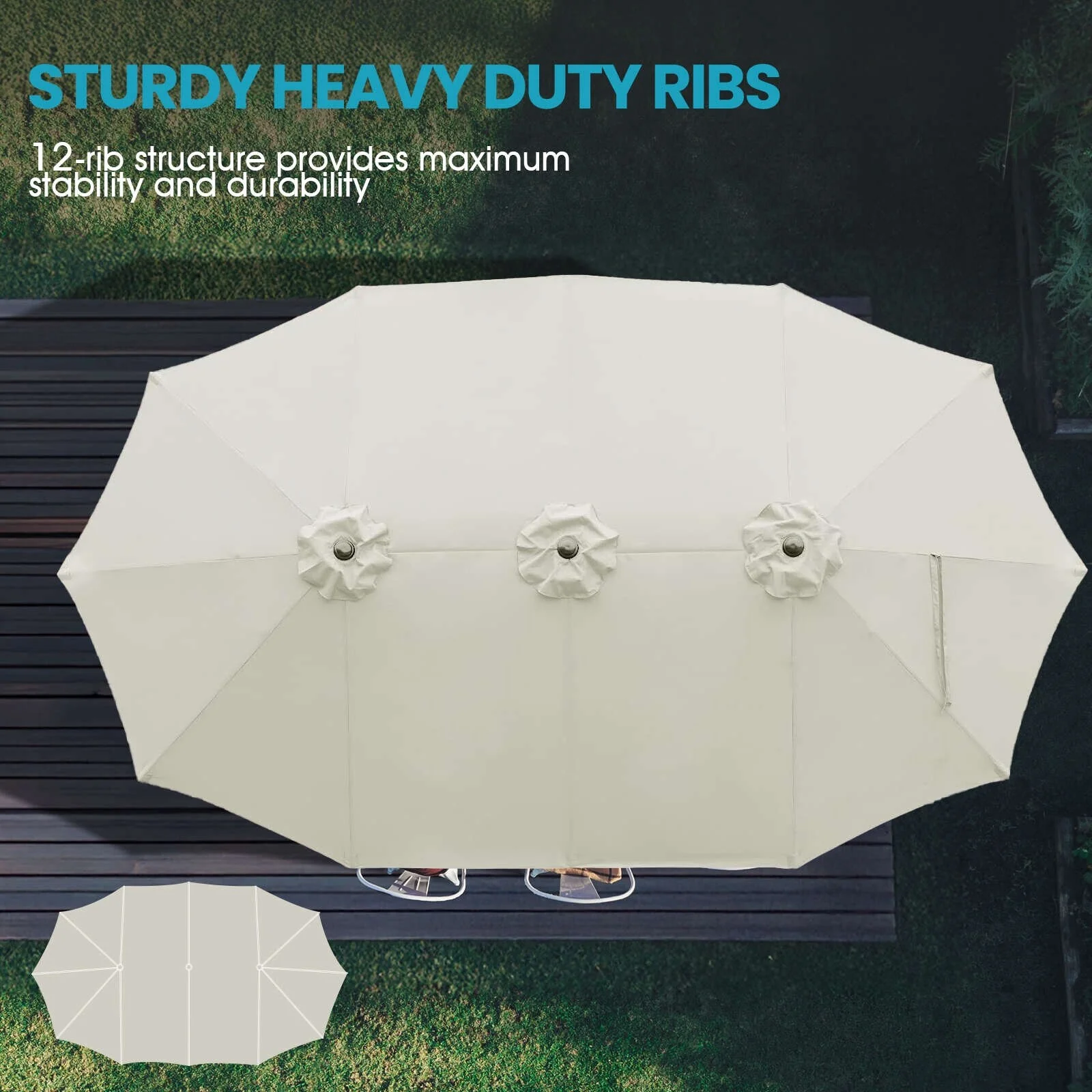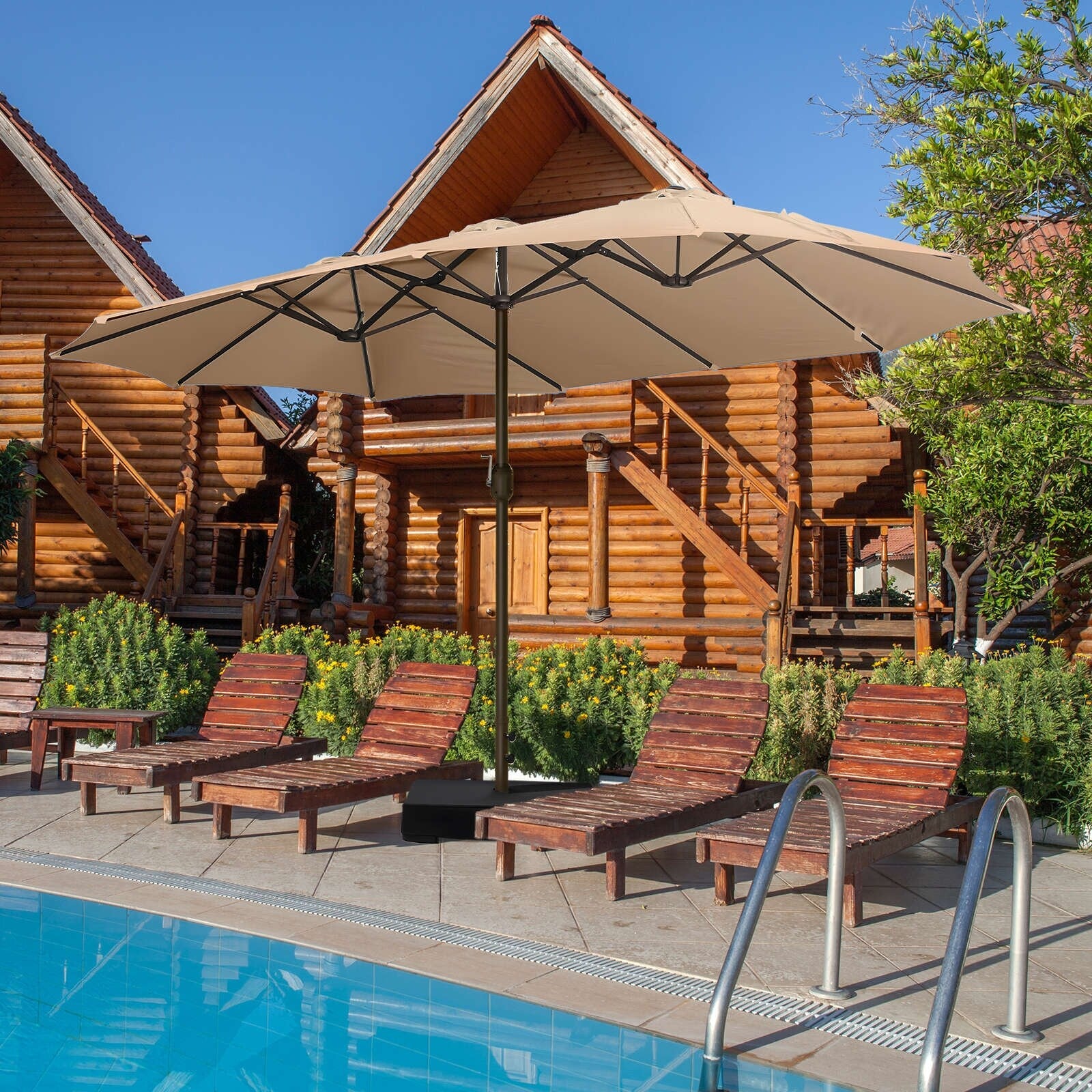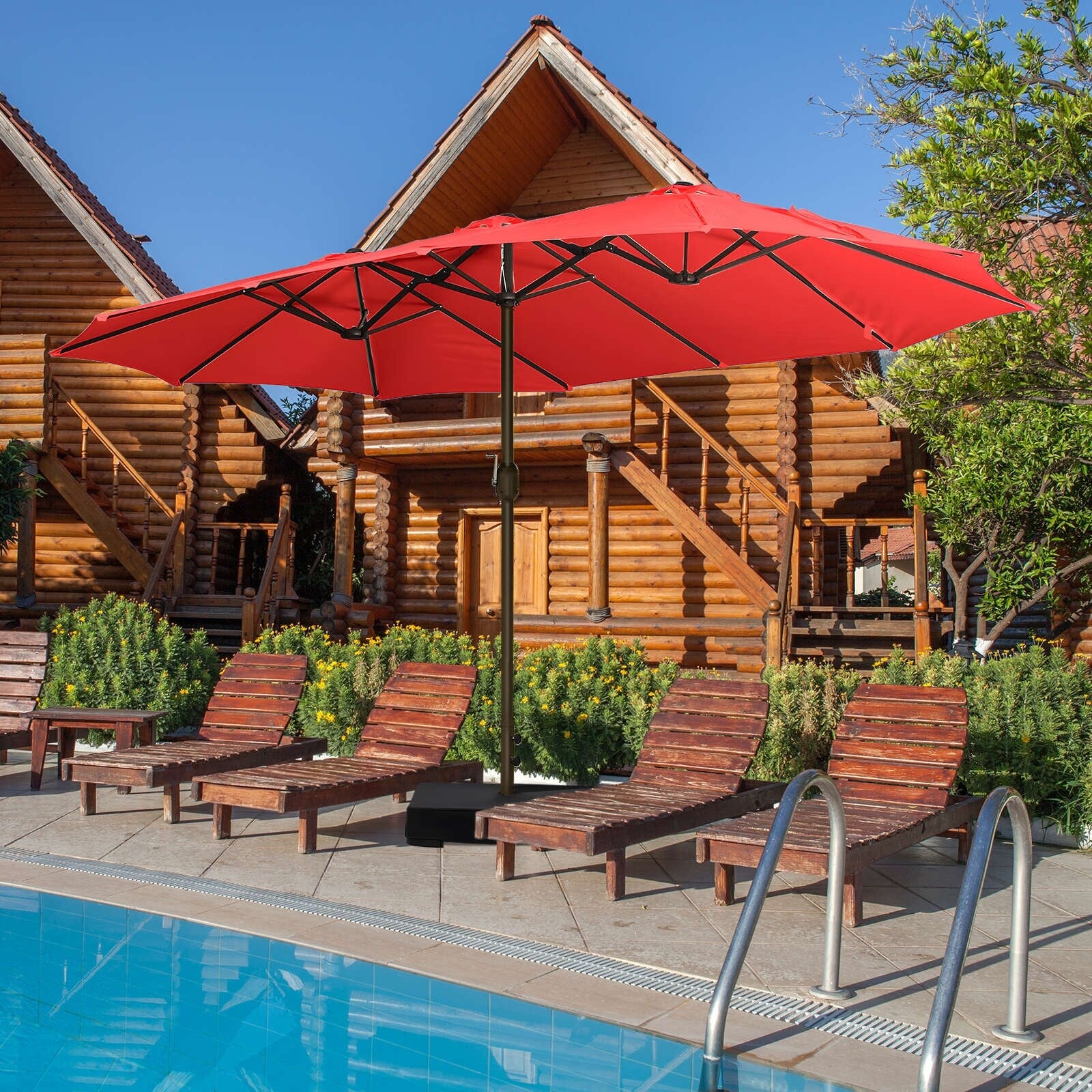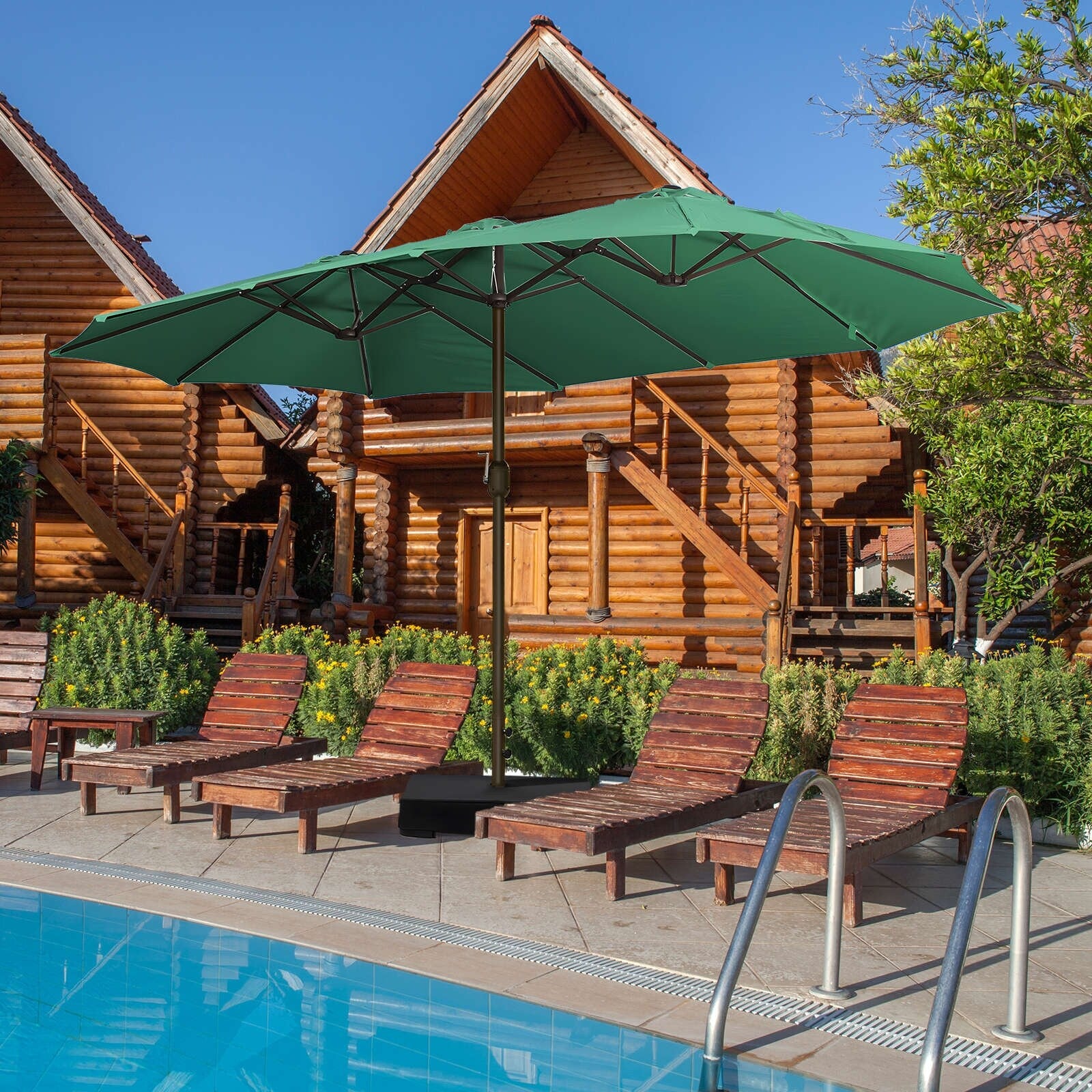 Aoodor 15ft Outdoor Double Sided Market Patio Umbrella with Base Stand