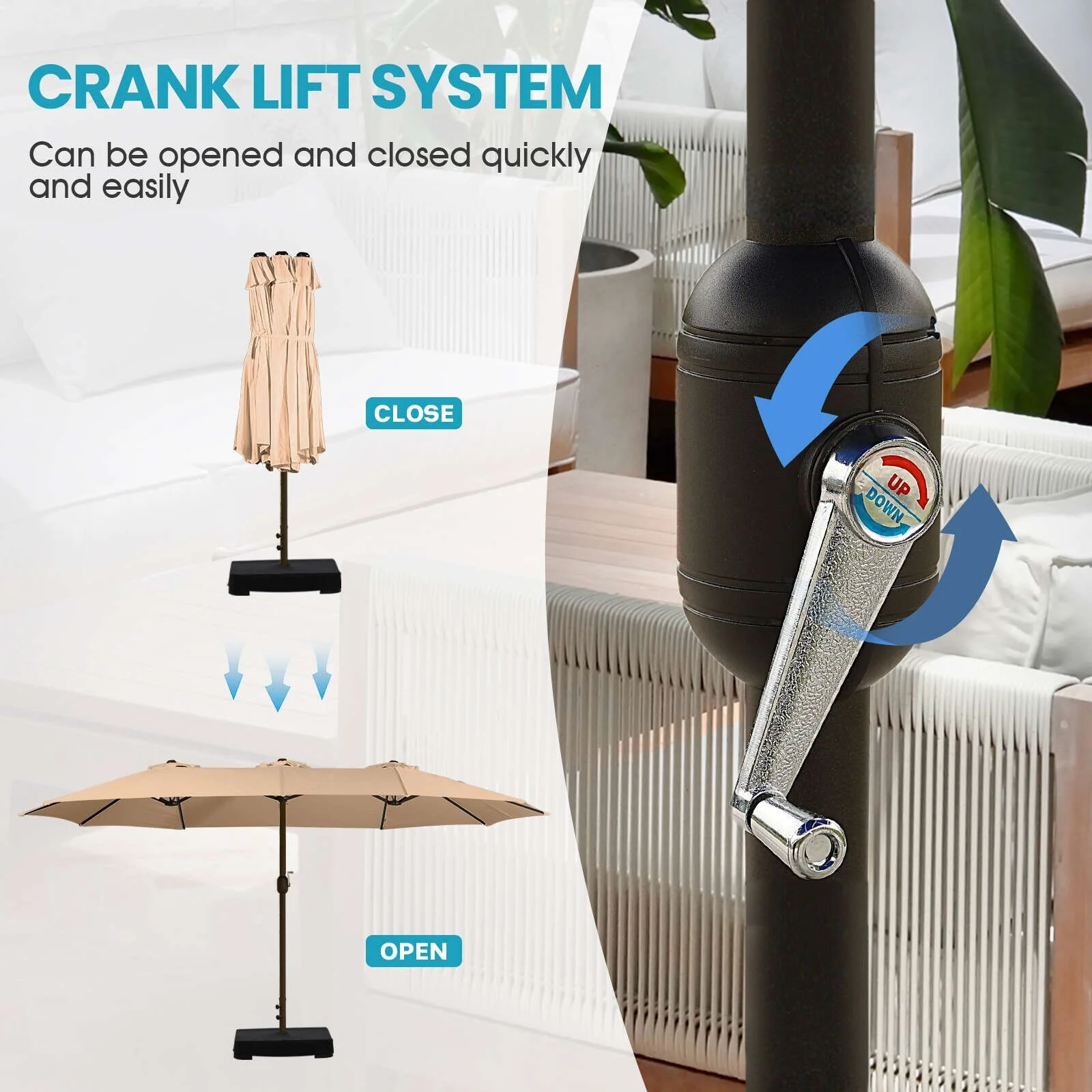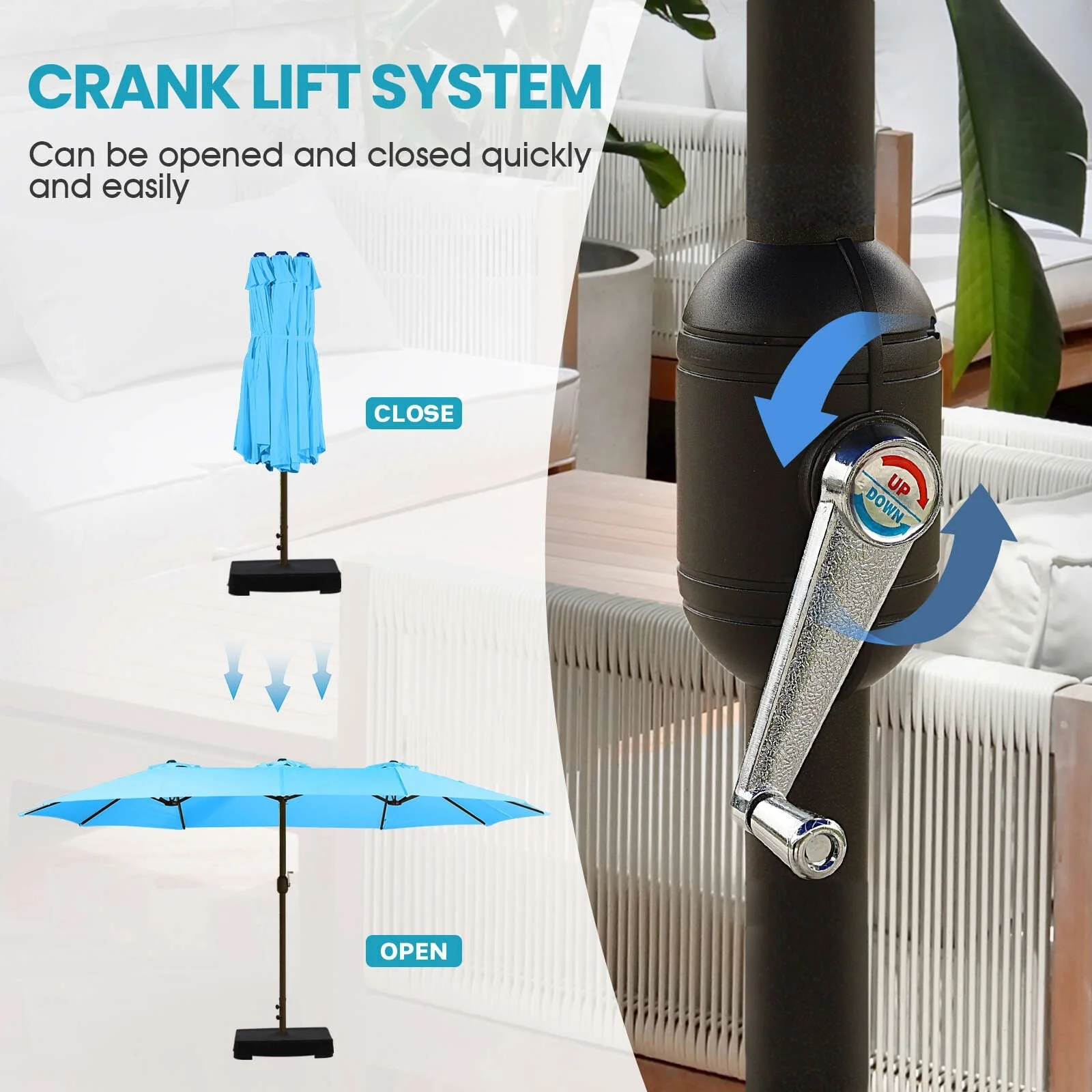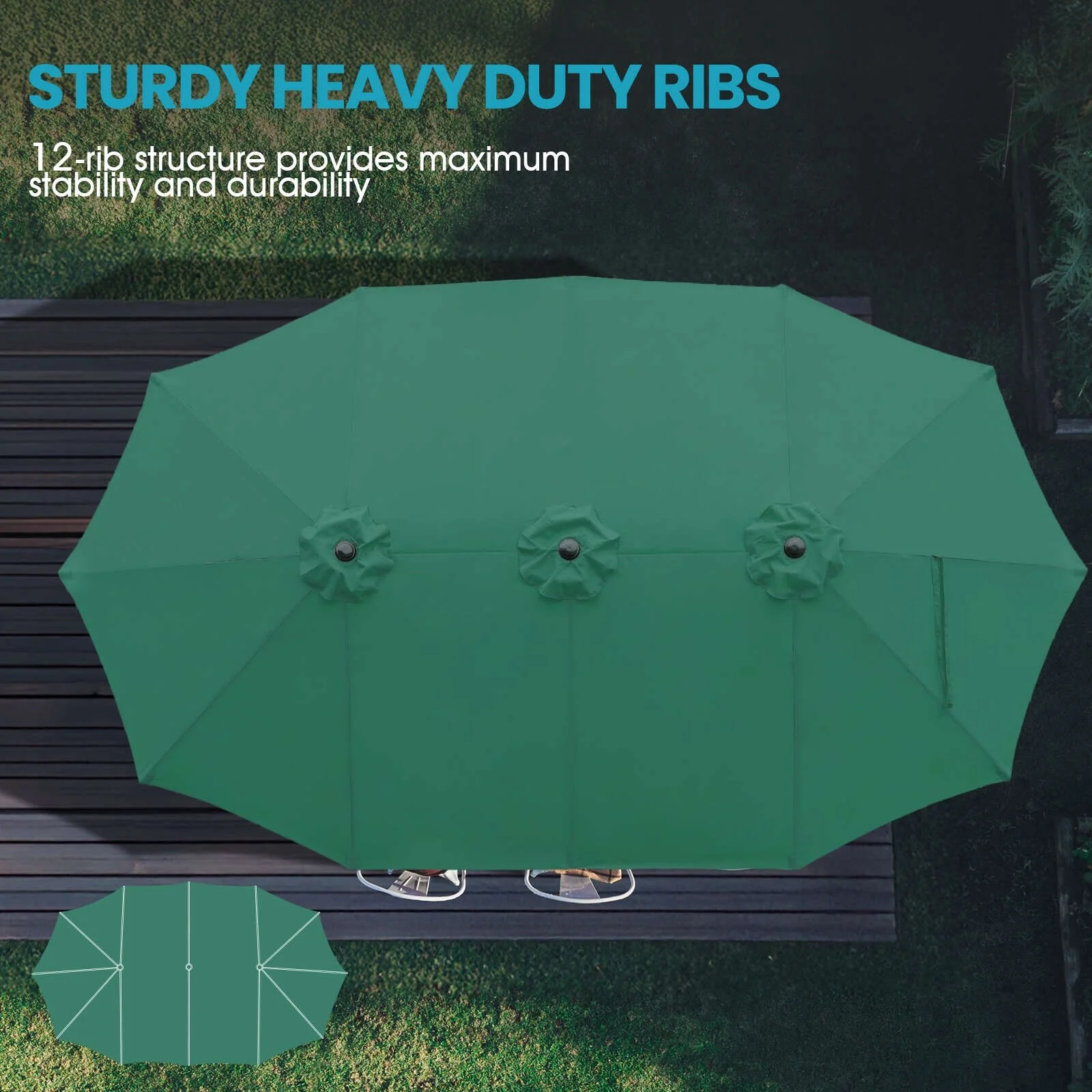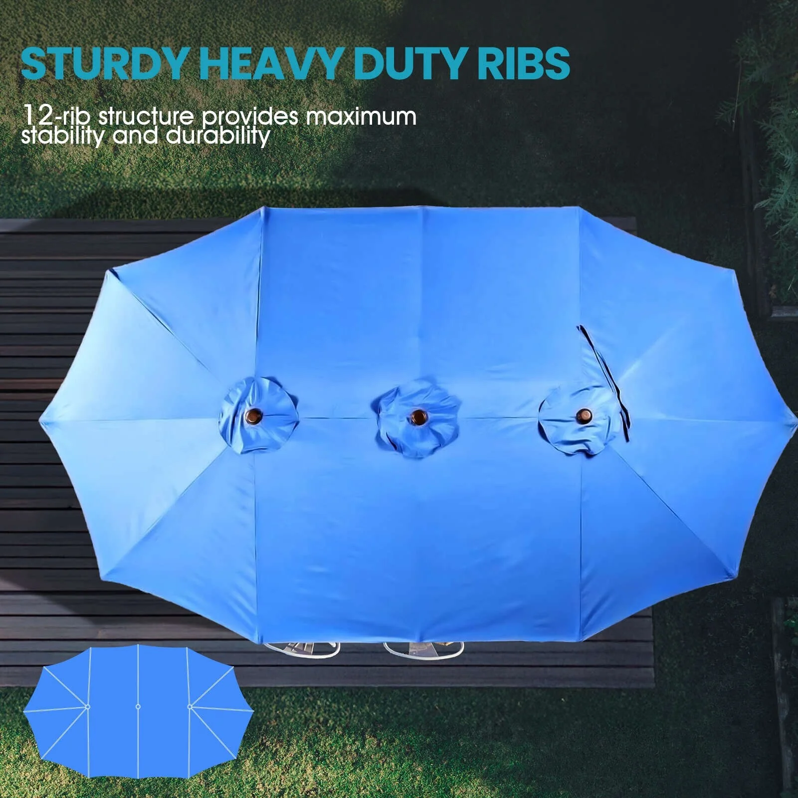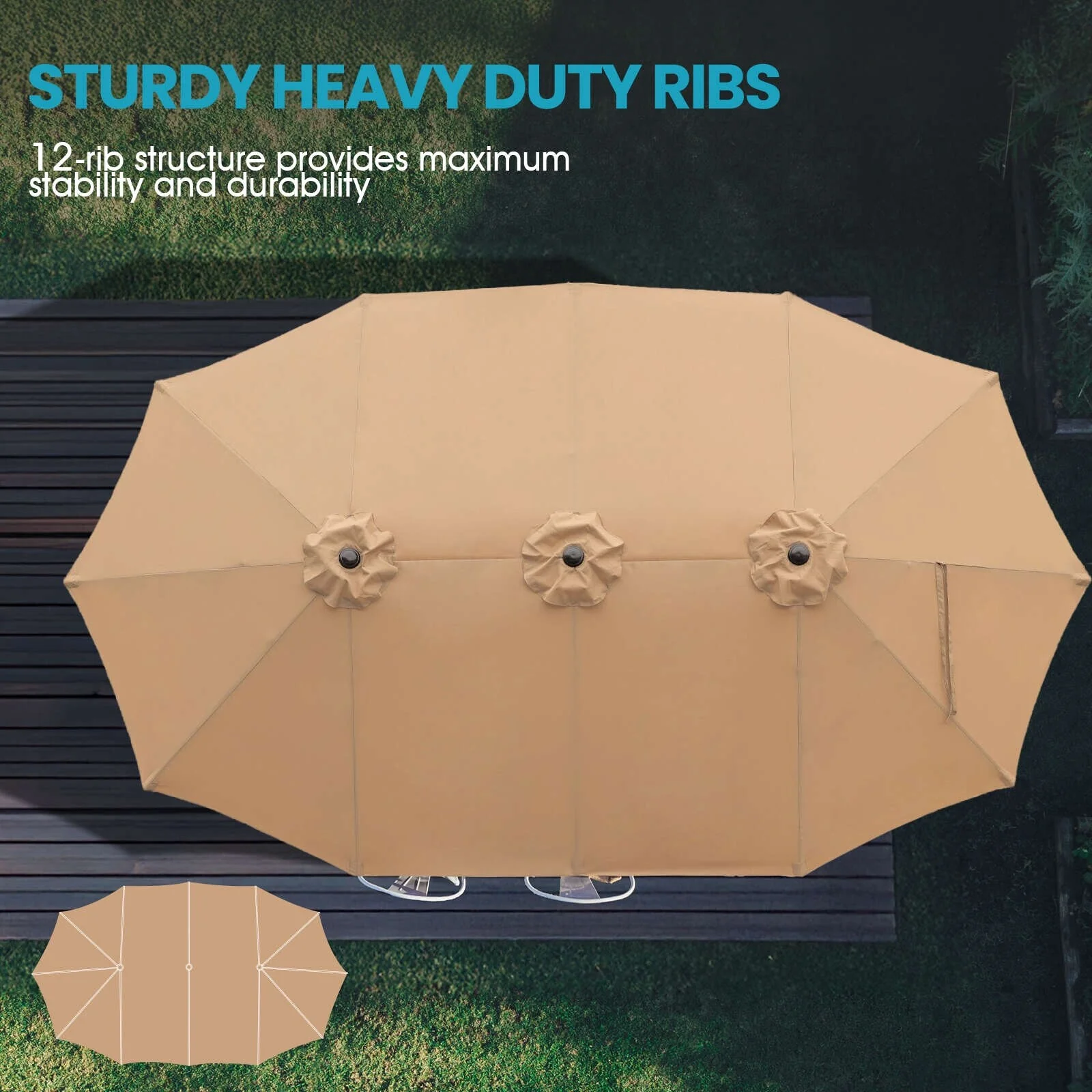 Aoodor 15ft Outdoor Double Sided Market Patio Umbrella with Base Stand