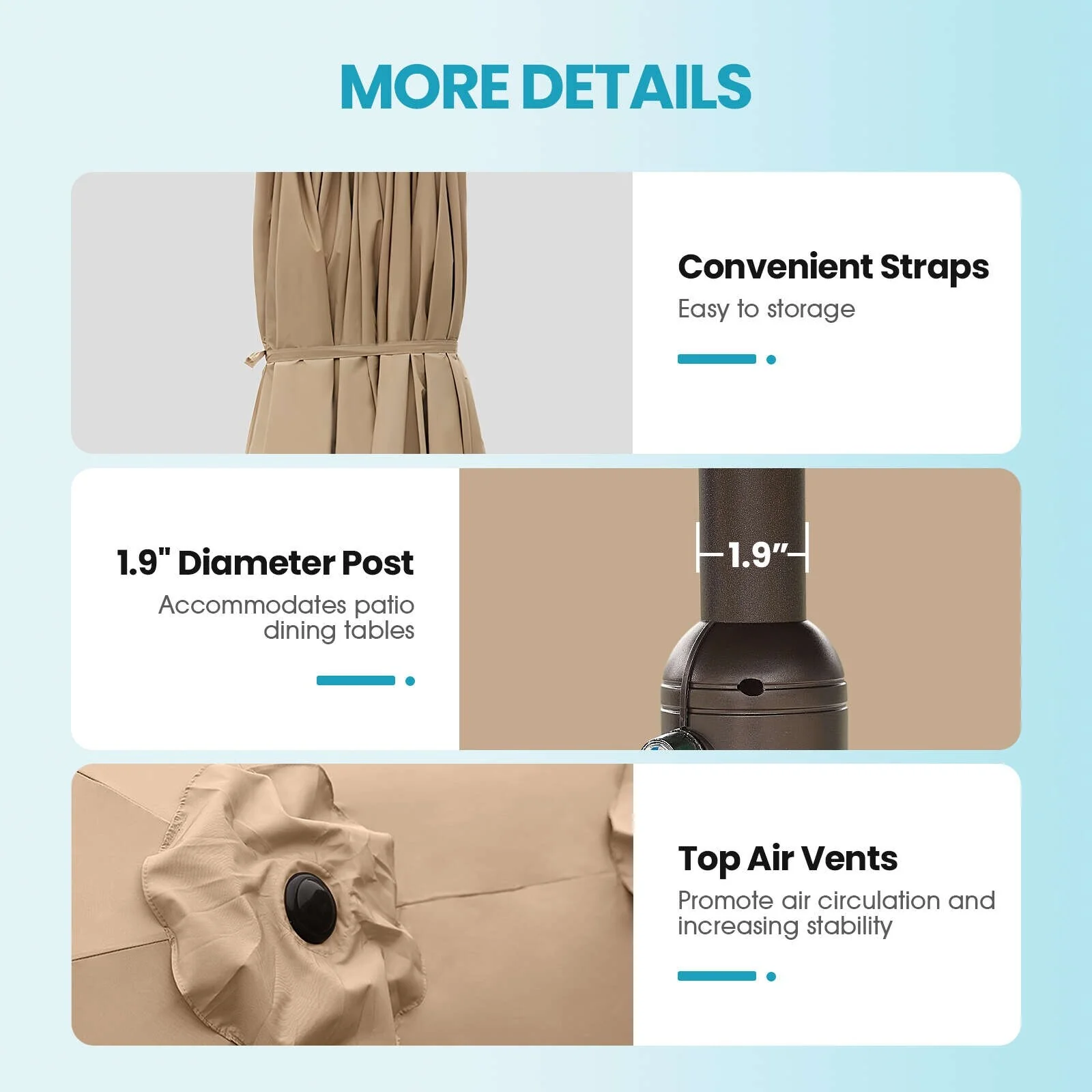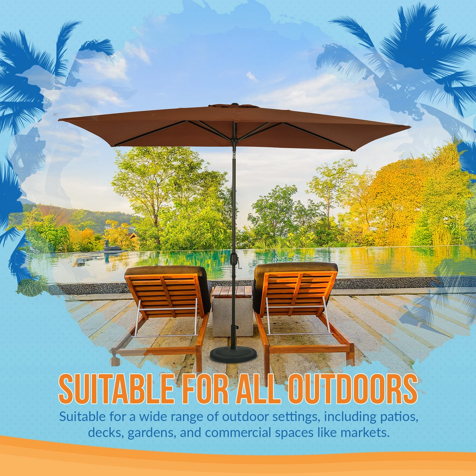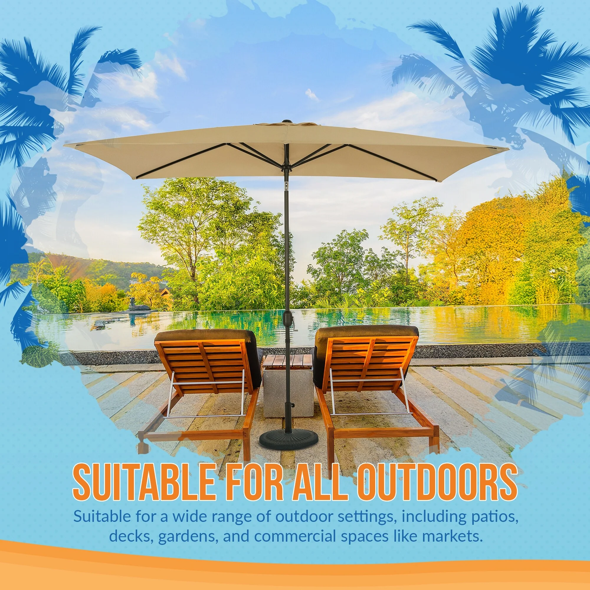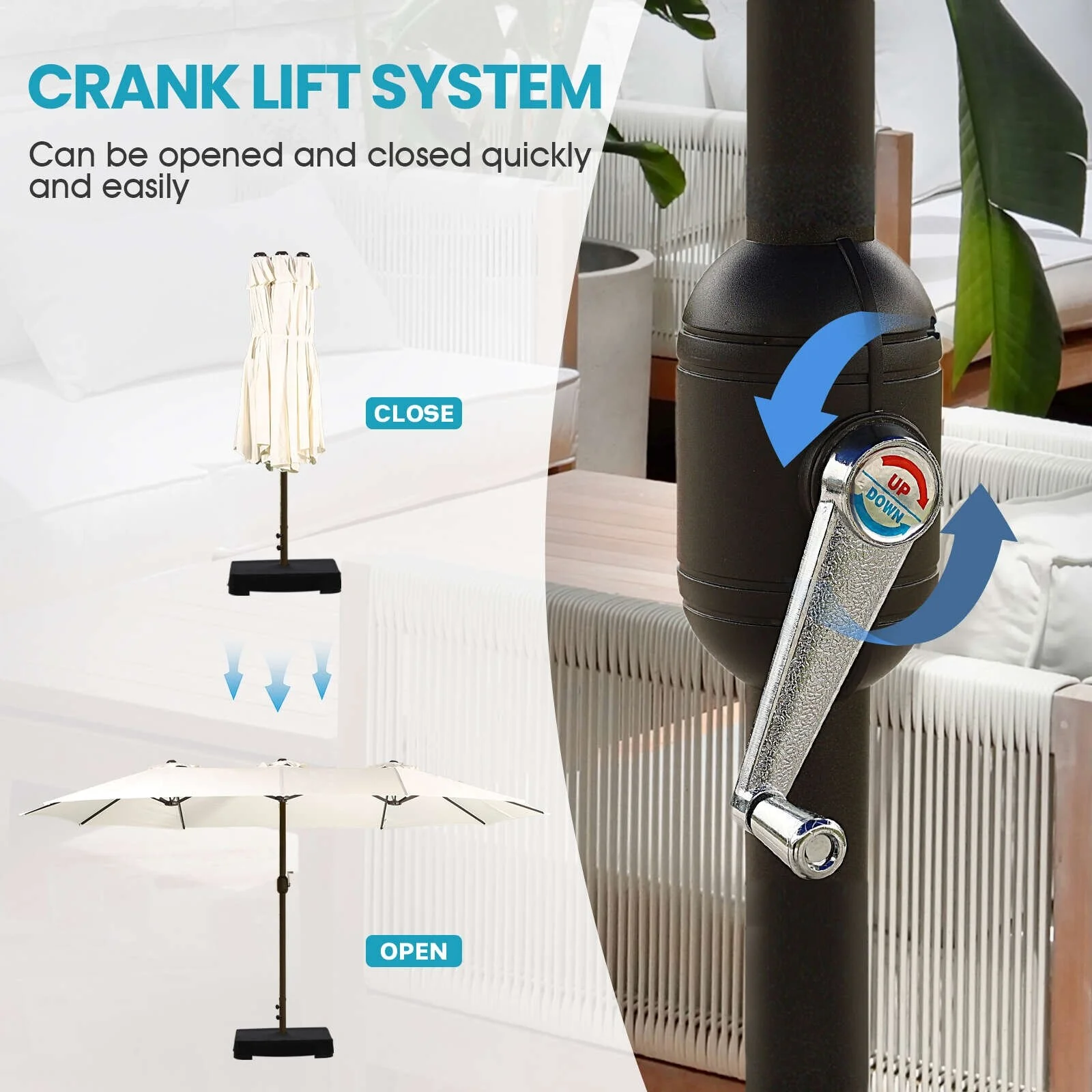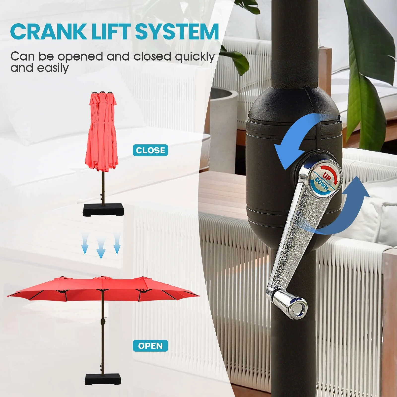Aoodor 15ft Outdoor Double Sided Market Patio Umbrella with Base Stand
