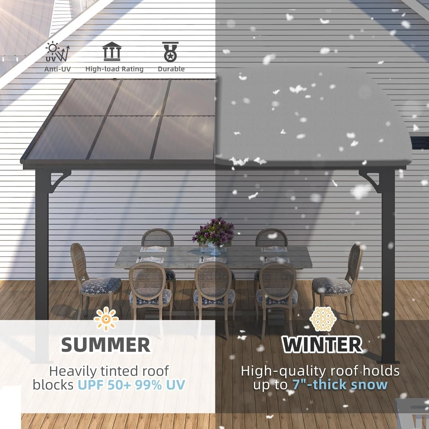 AECOJOY Adjustable Height Outdoor Gazebo, Large Wall-Mounted Metal Heavy Duty Pergola for Patio