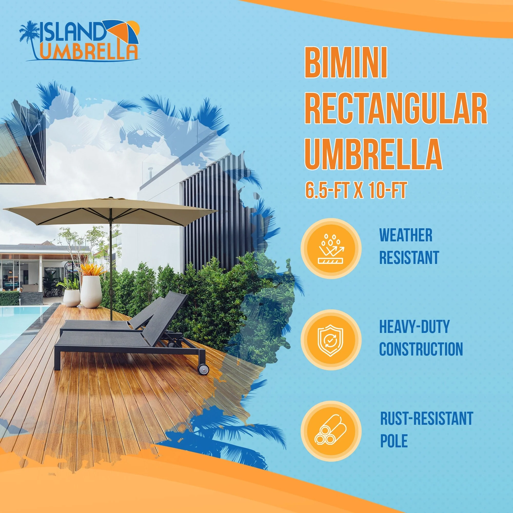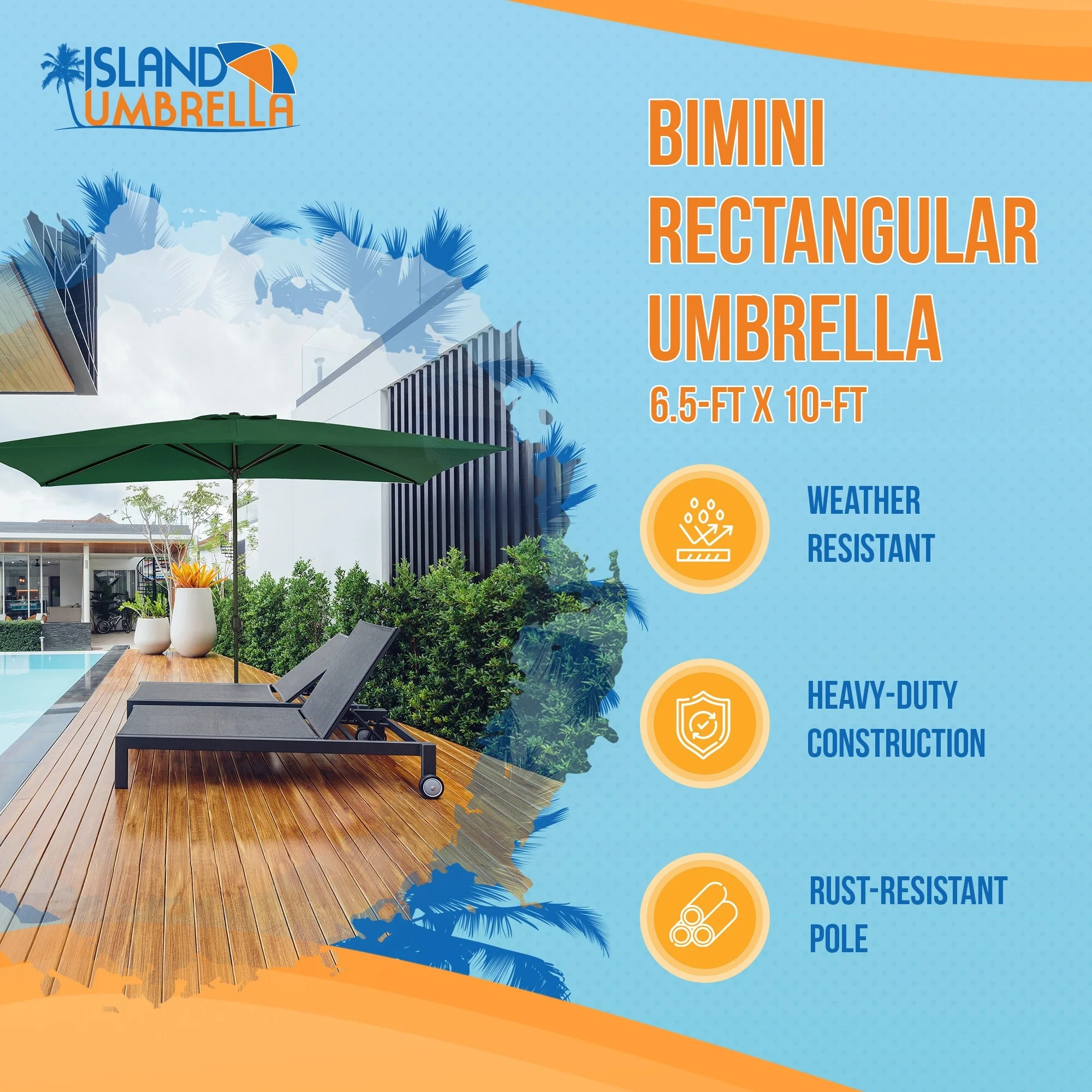 Island Umbrella Bimini Rectangular Market Umbrella Canopy