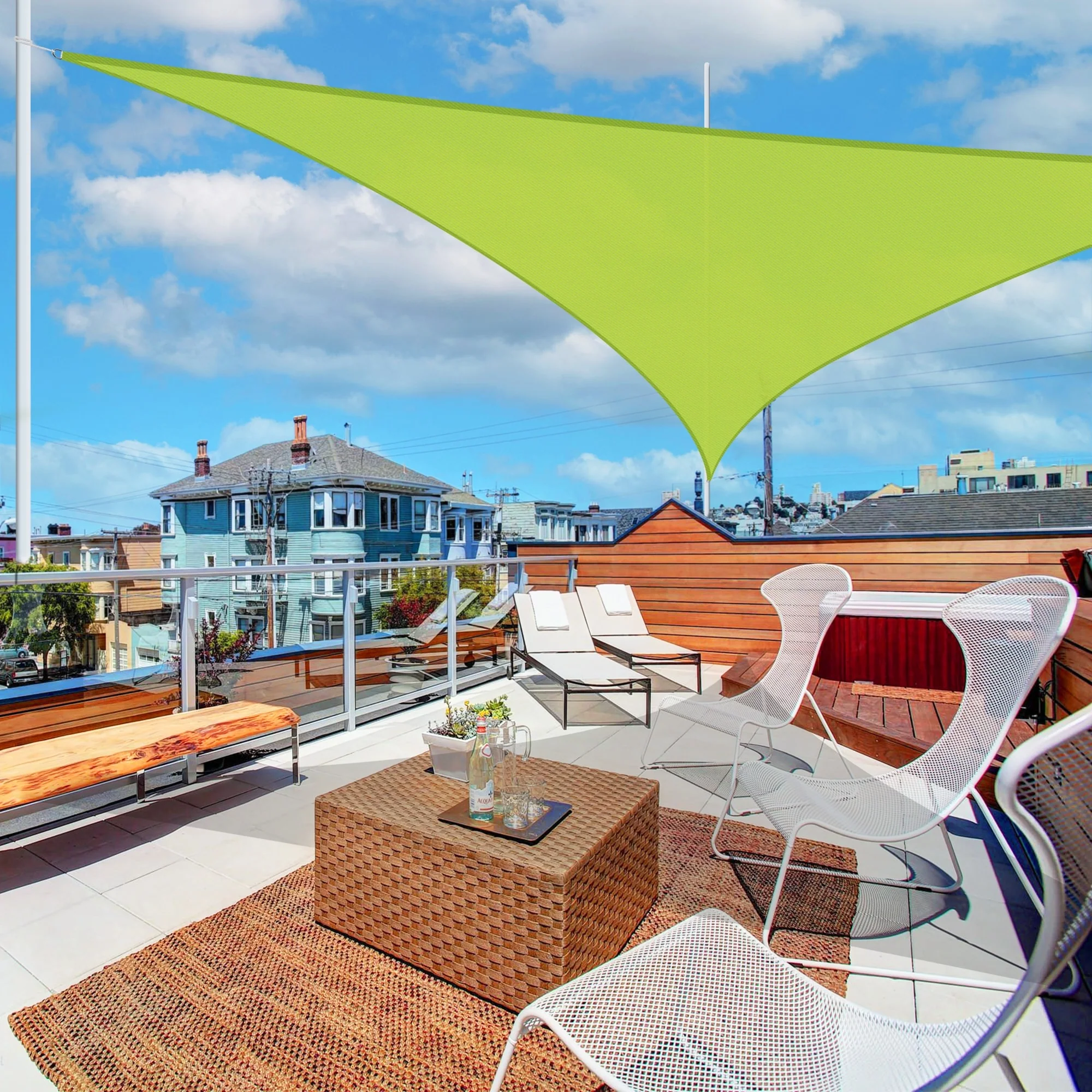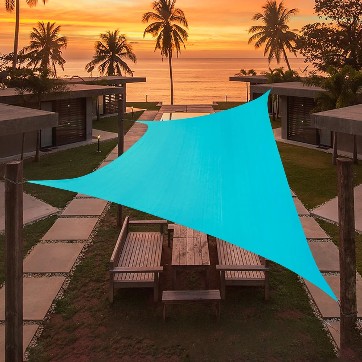 Mixed Turquoise Sun Shade Sail Triangle Canopy 185 GSM Durable Fabric UV Block Awning for Outdoor Patio Garden Backyard
