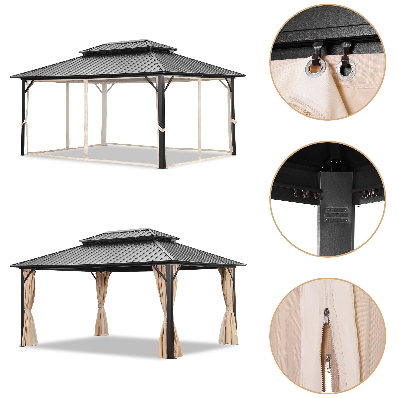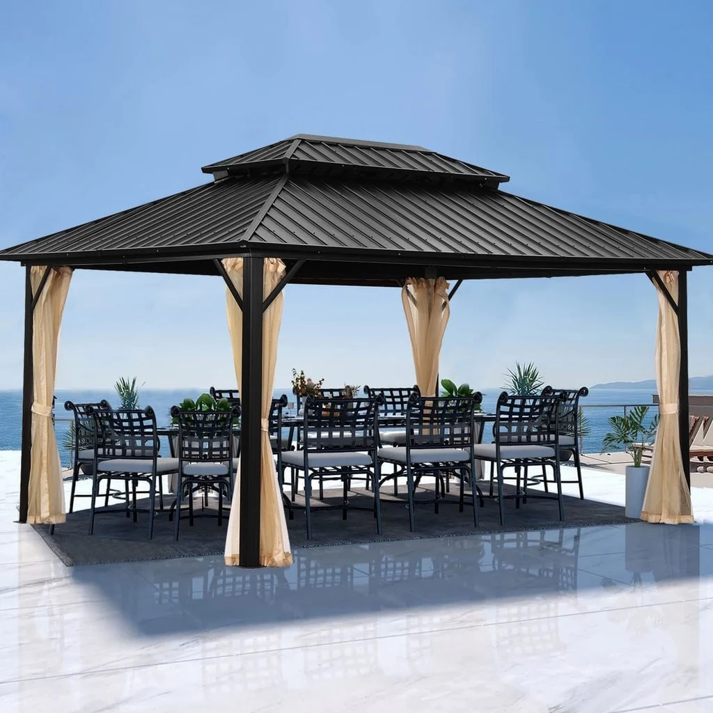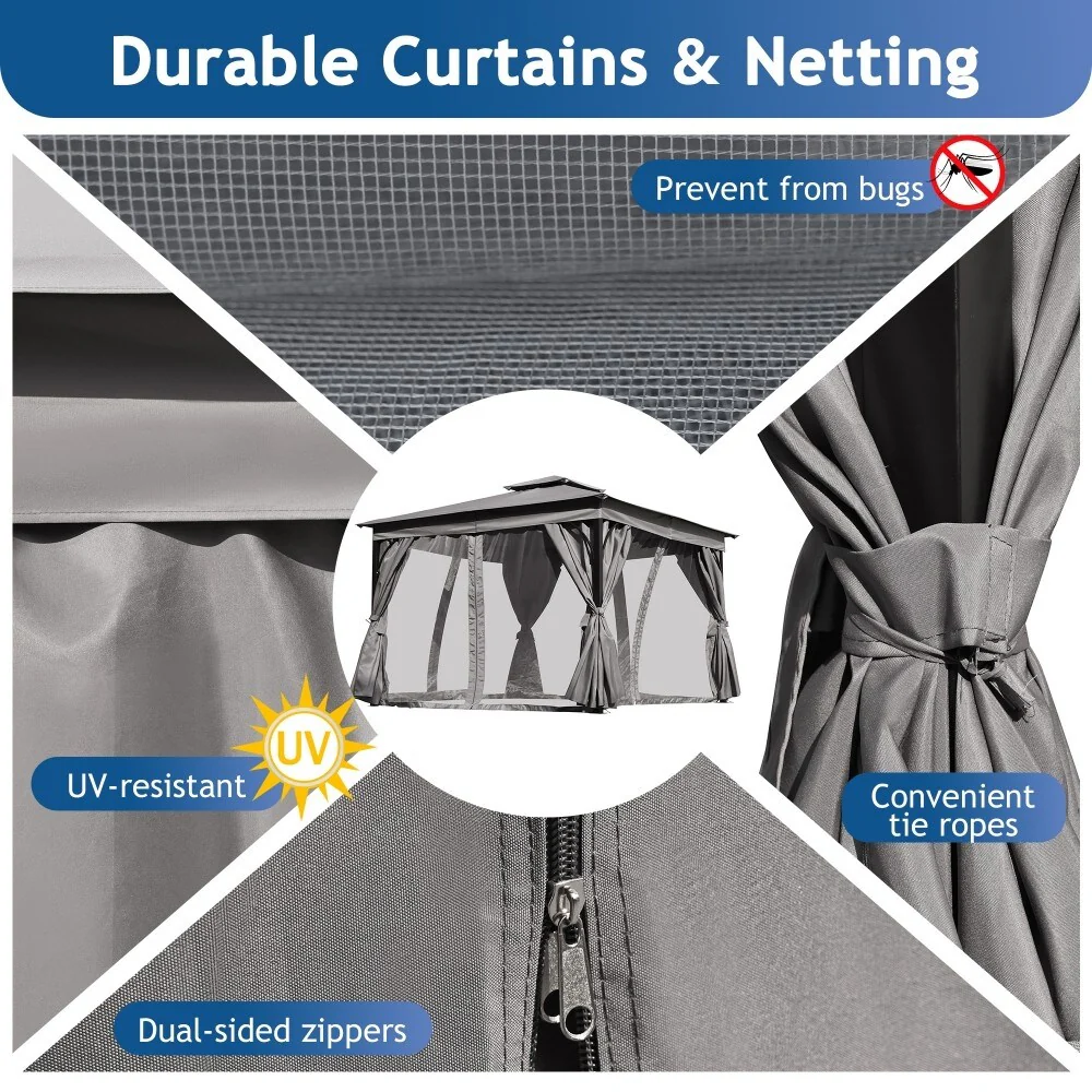 Zenova 16'x 12' Outdoor Double Hardtop Patio Gazebo with Mosquito Net