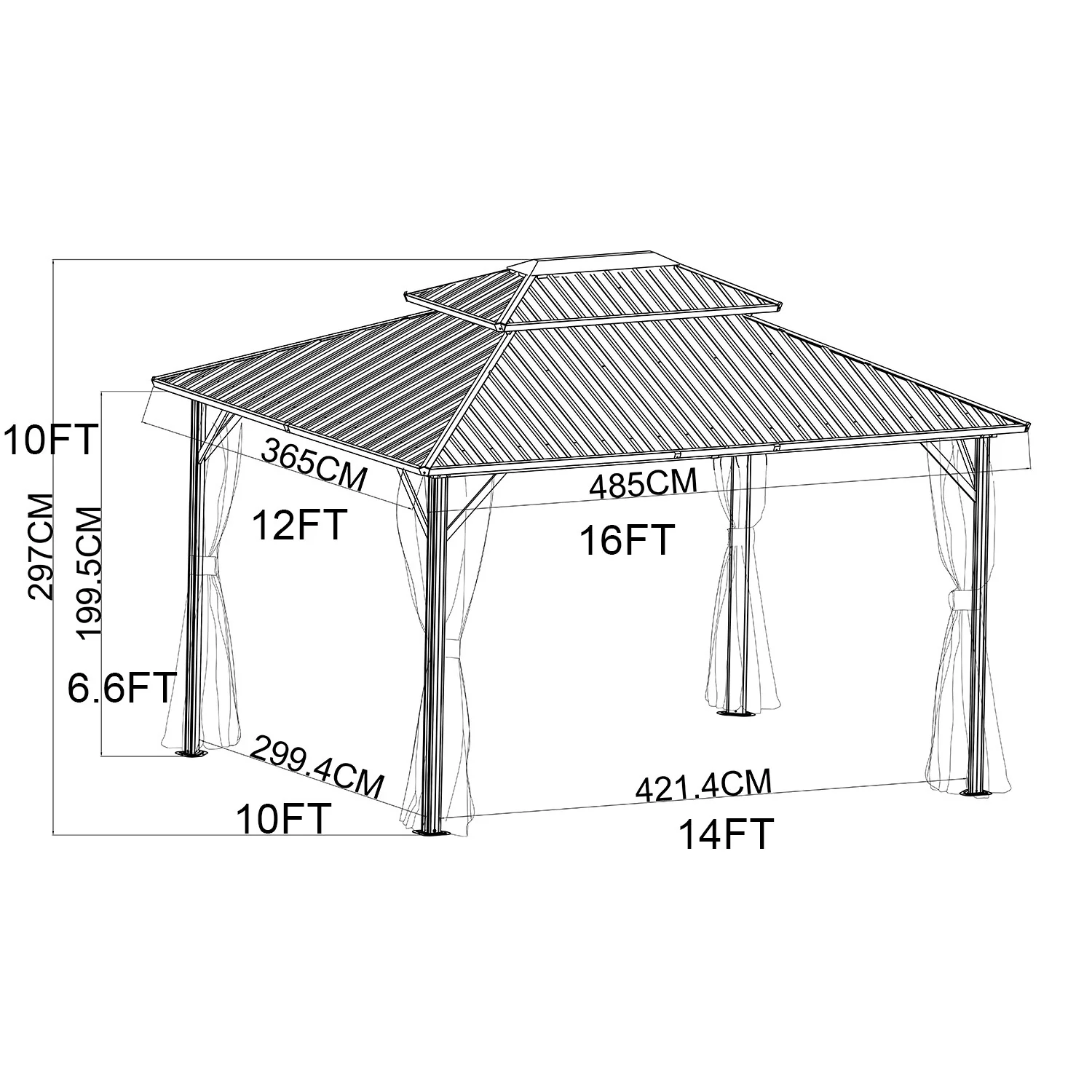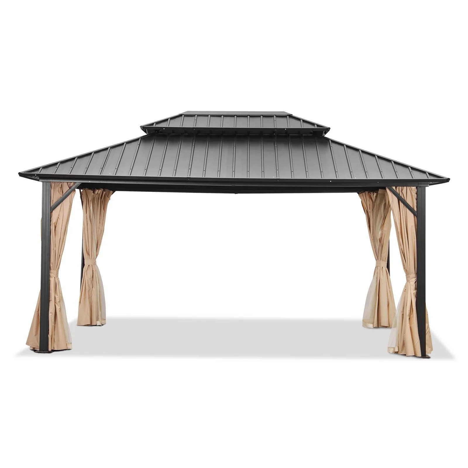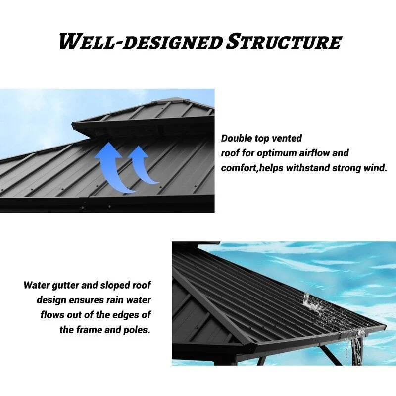 Zenova 16'x 12' Outdoor Double Hardtop Patio Gazebo with Mosquito Net