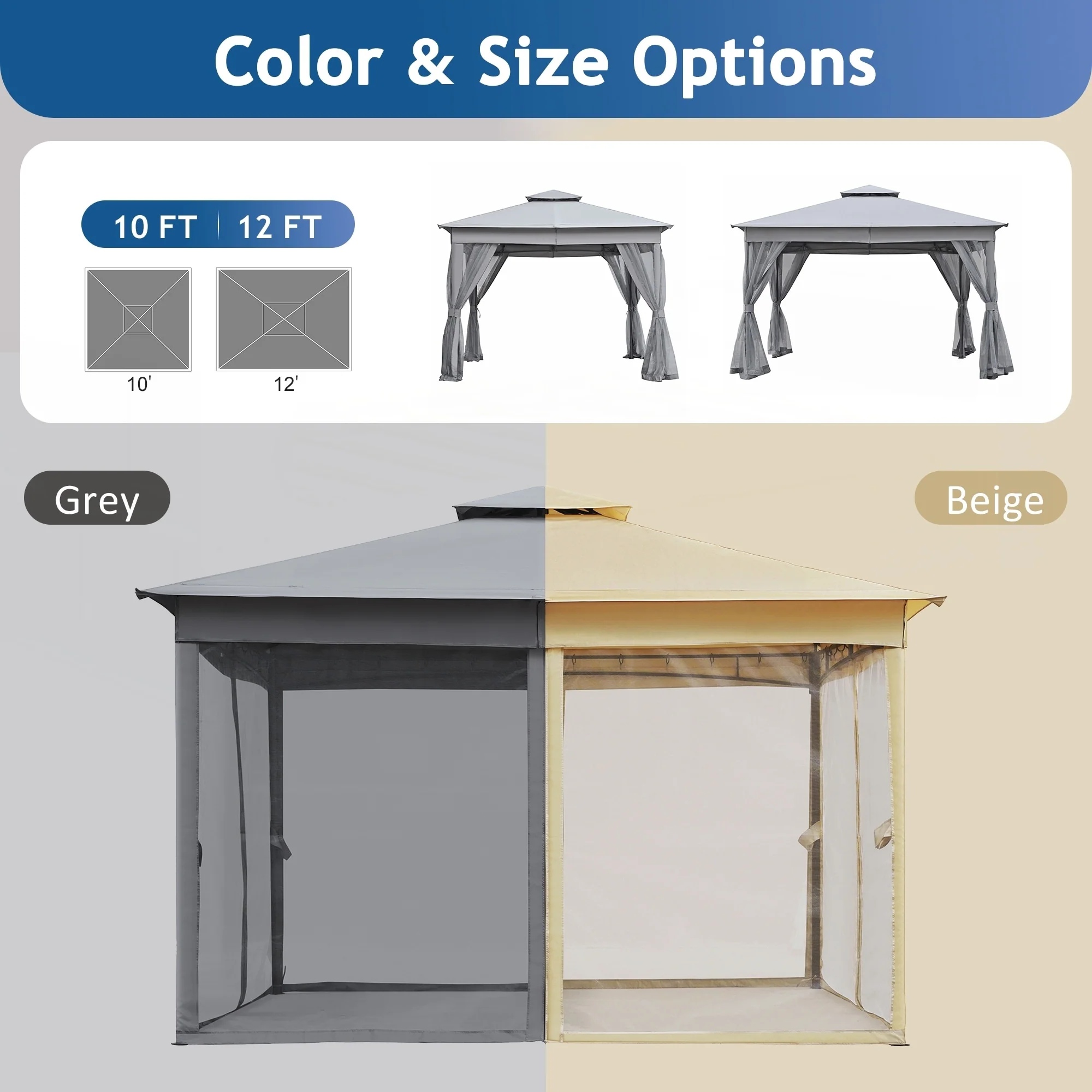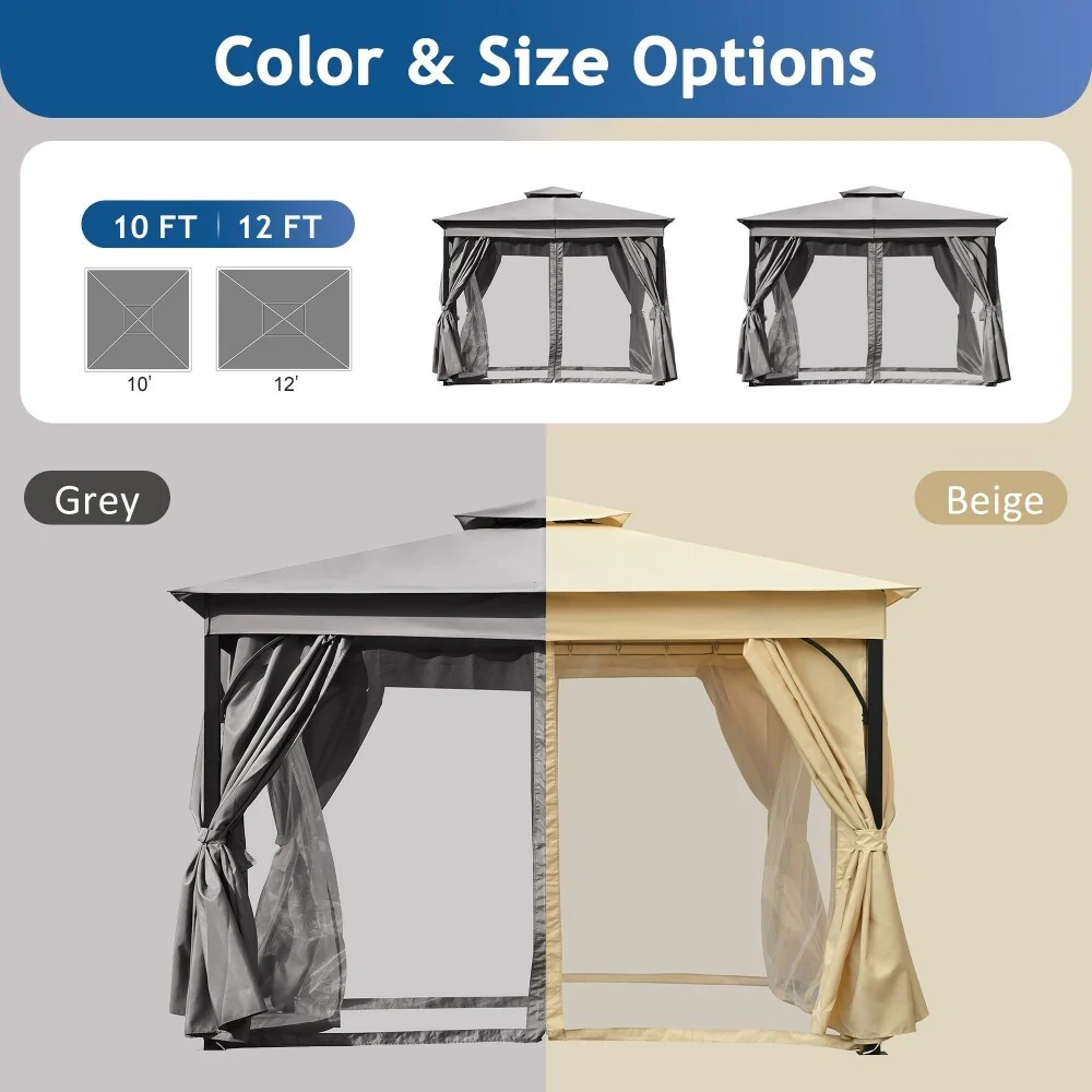 10"��12" Outdoor Gazebo Tent with Double Roofs and Mosquito Netting
