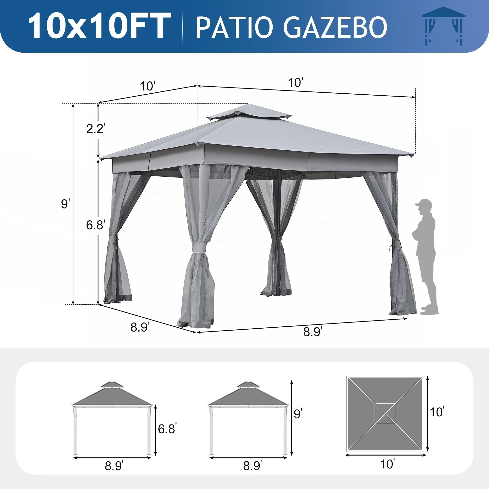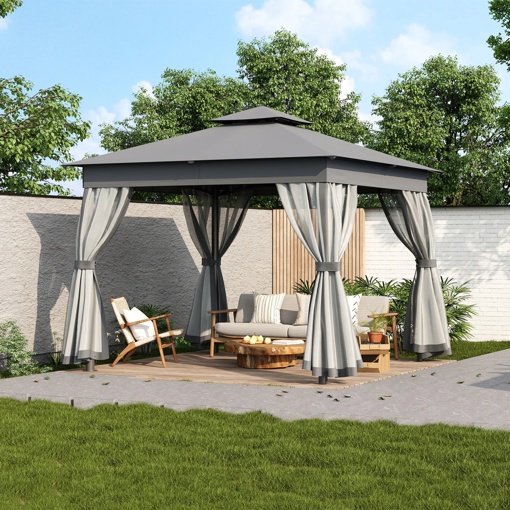 10x10 Outdoor Gazebo Tent with Double Roofs