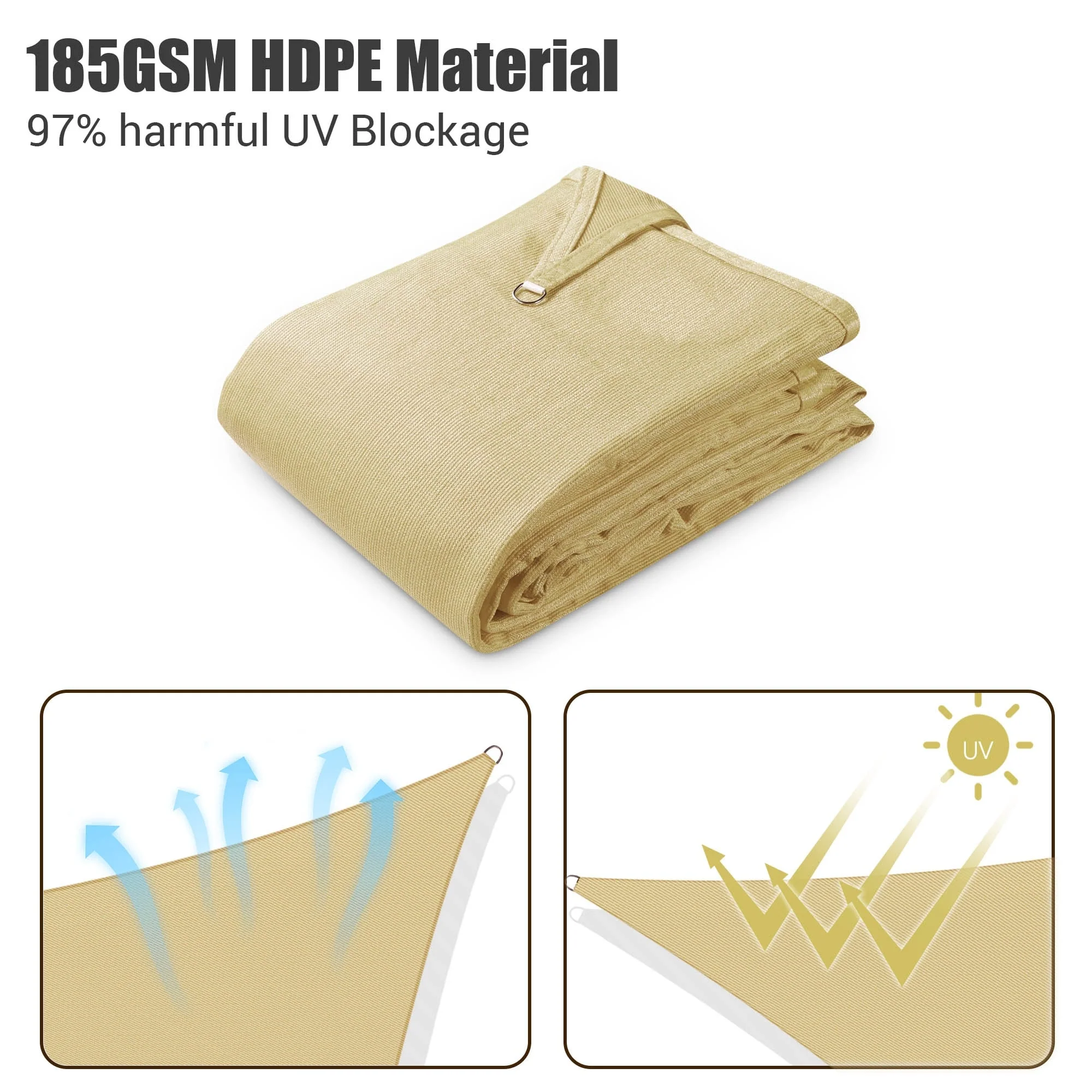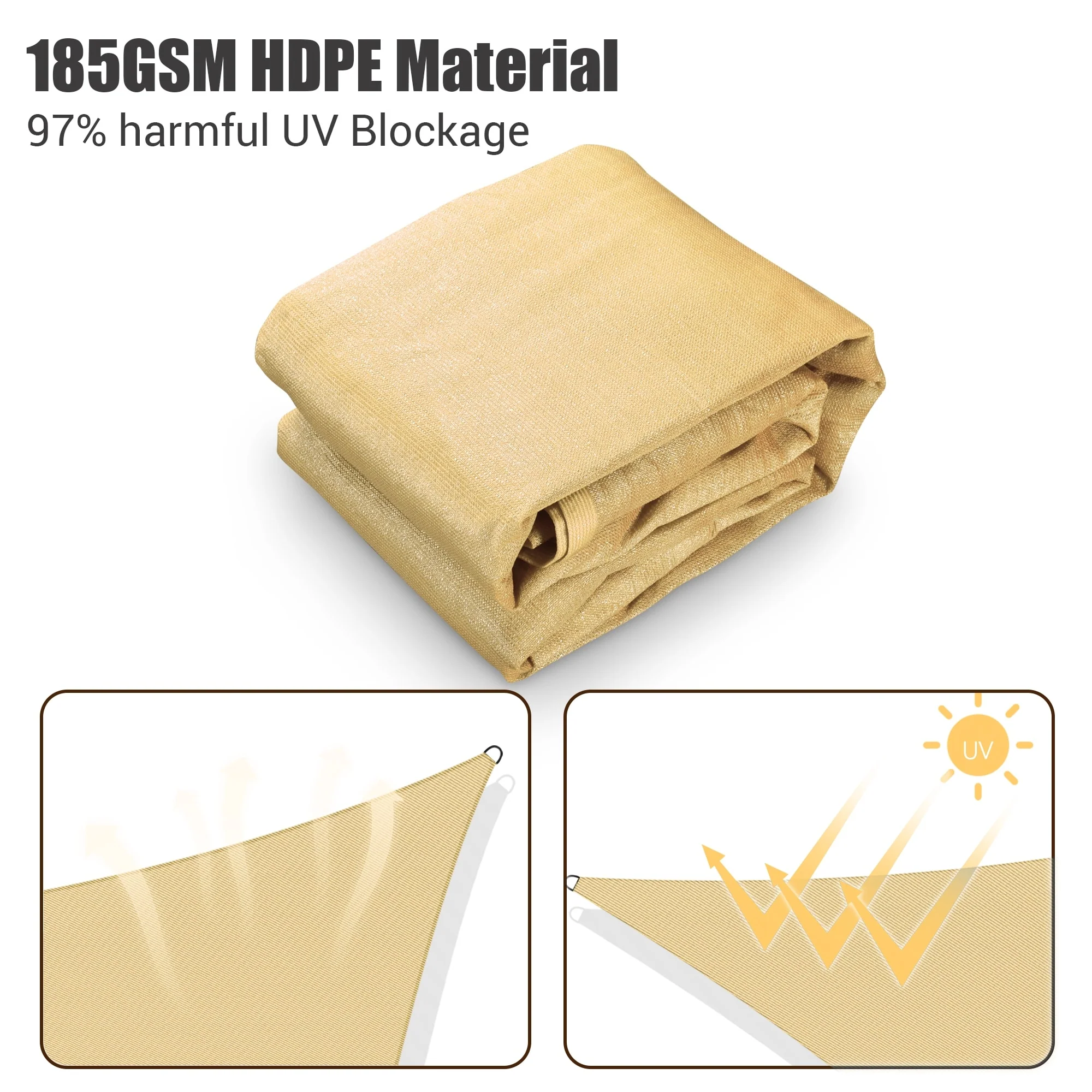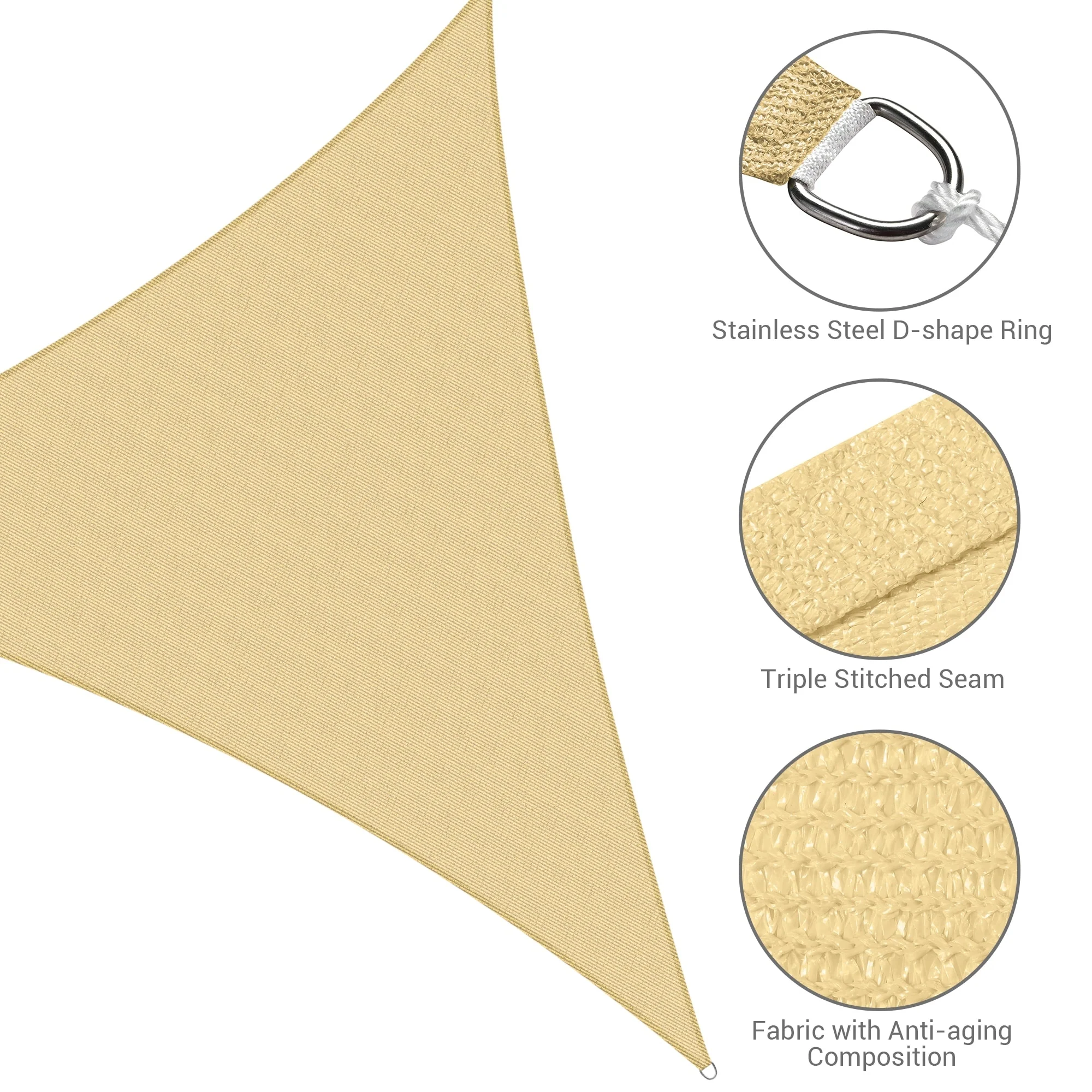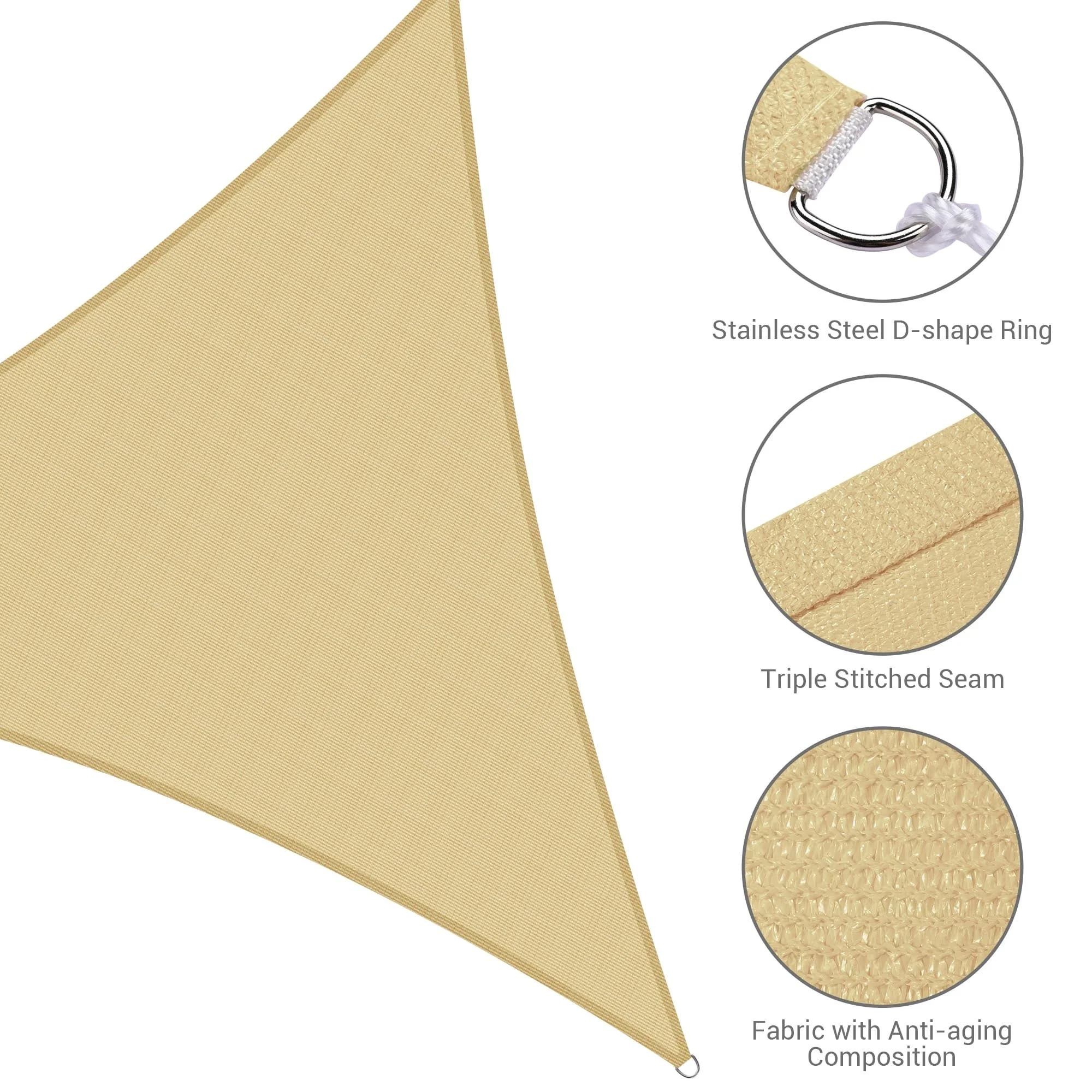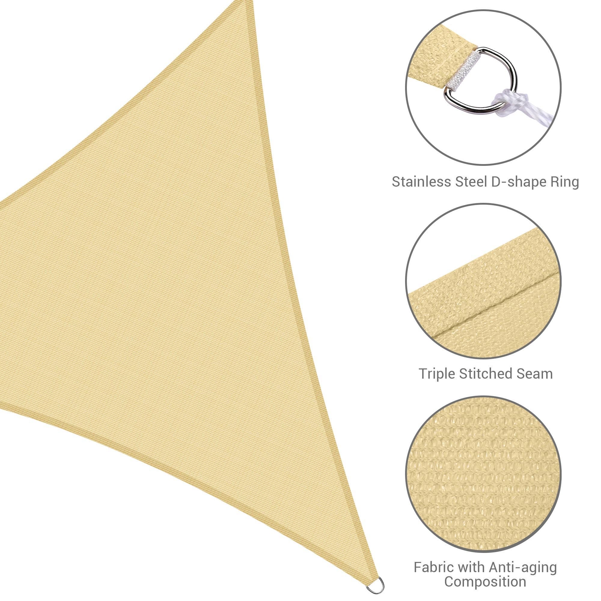 5'X7'X7' Sand Sun Shade Sail Triangle Canopy 185 GSM Durable Fabric UV Block Awning for Outdoor Patio Garden Backyard