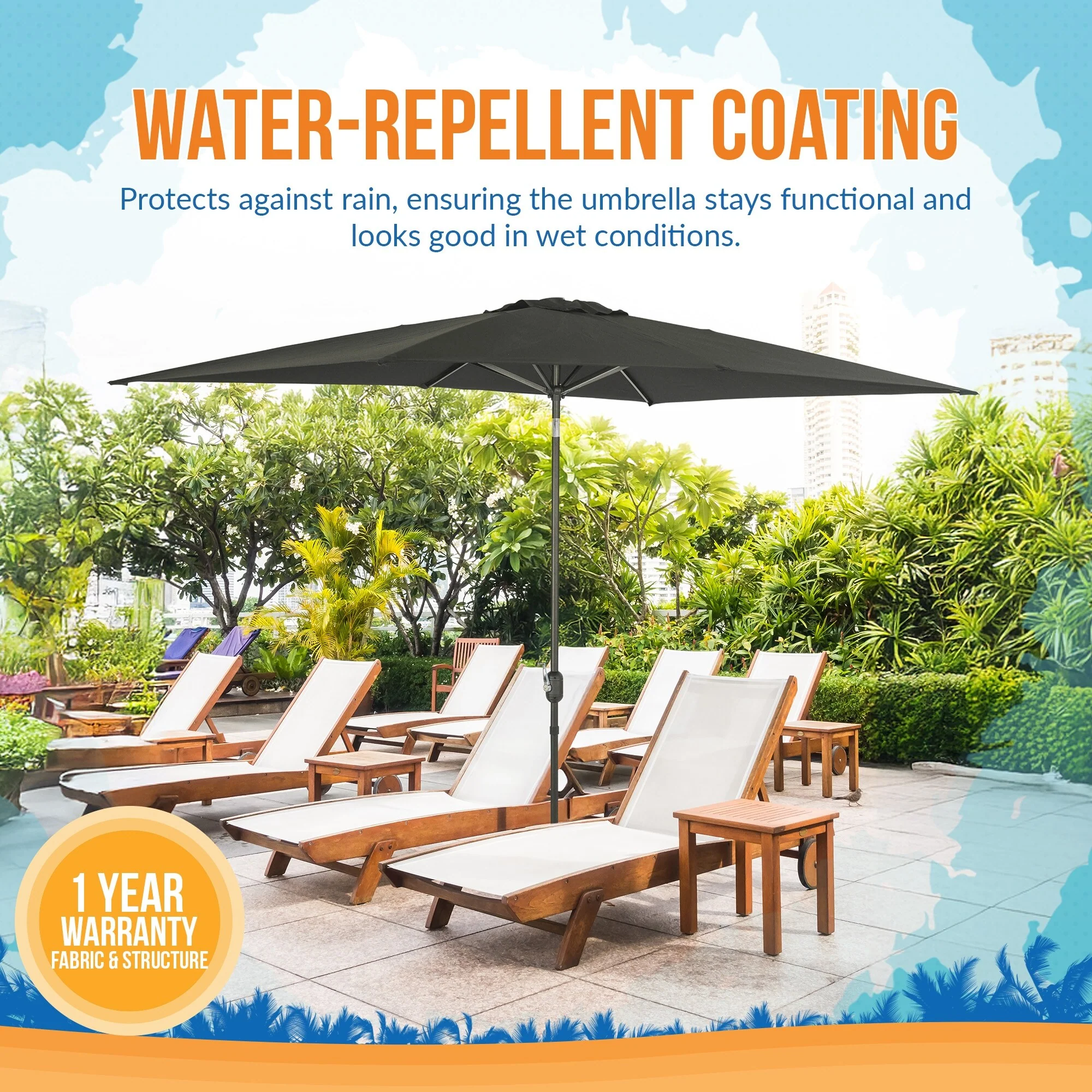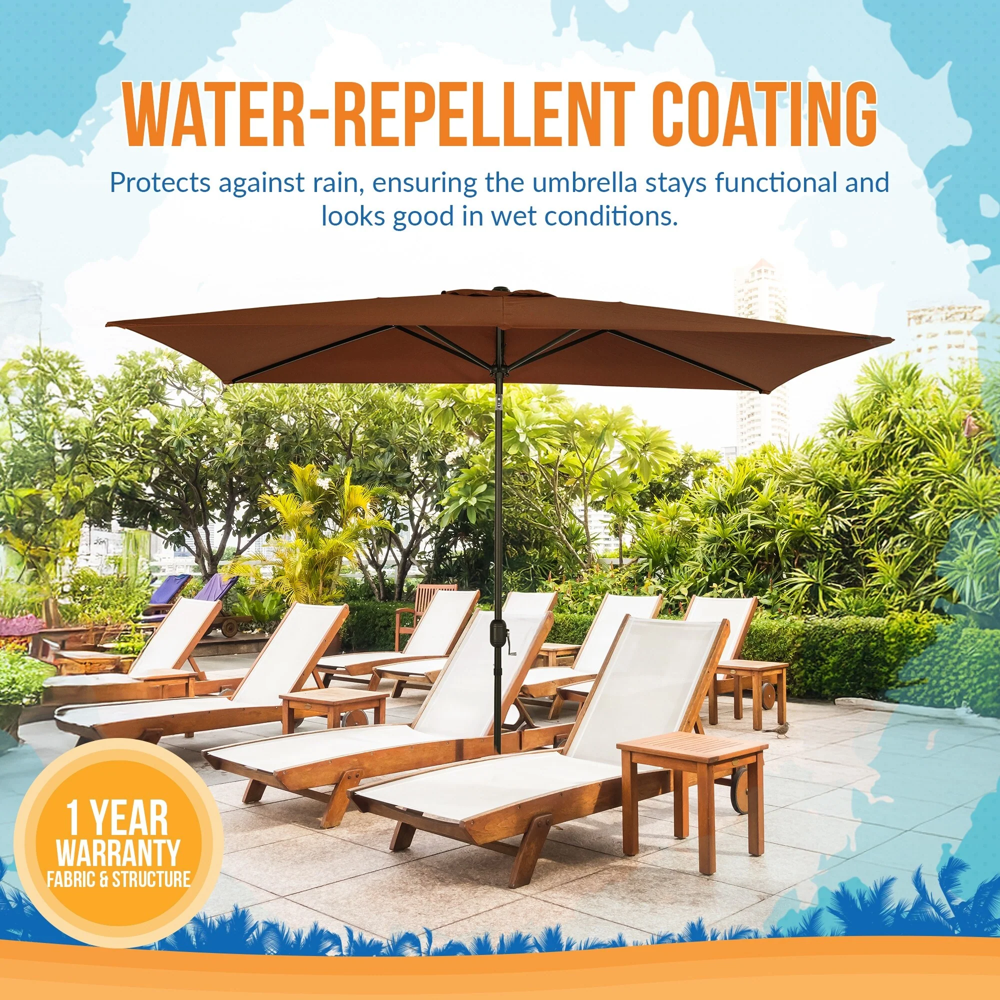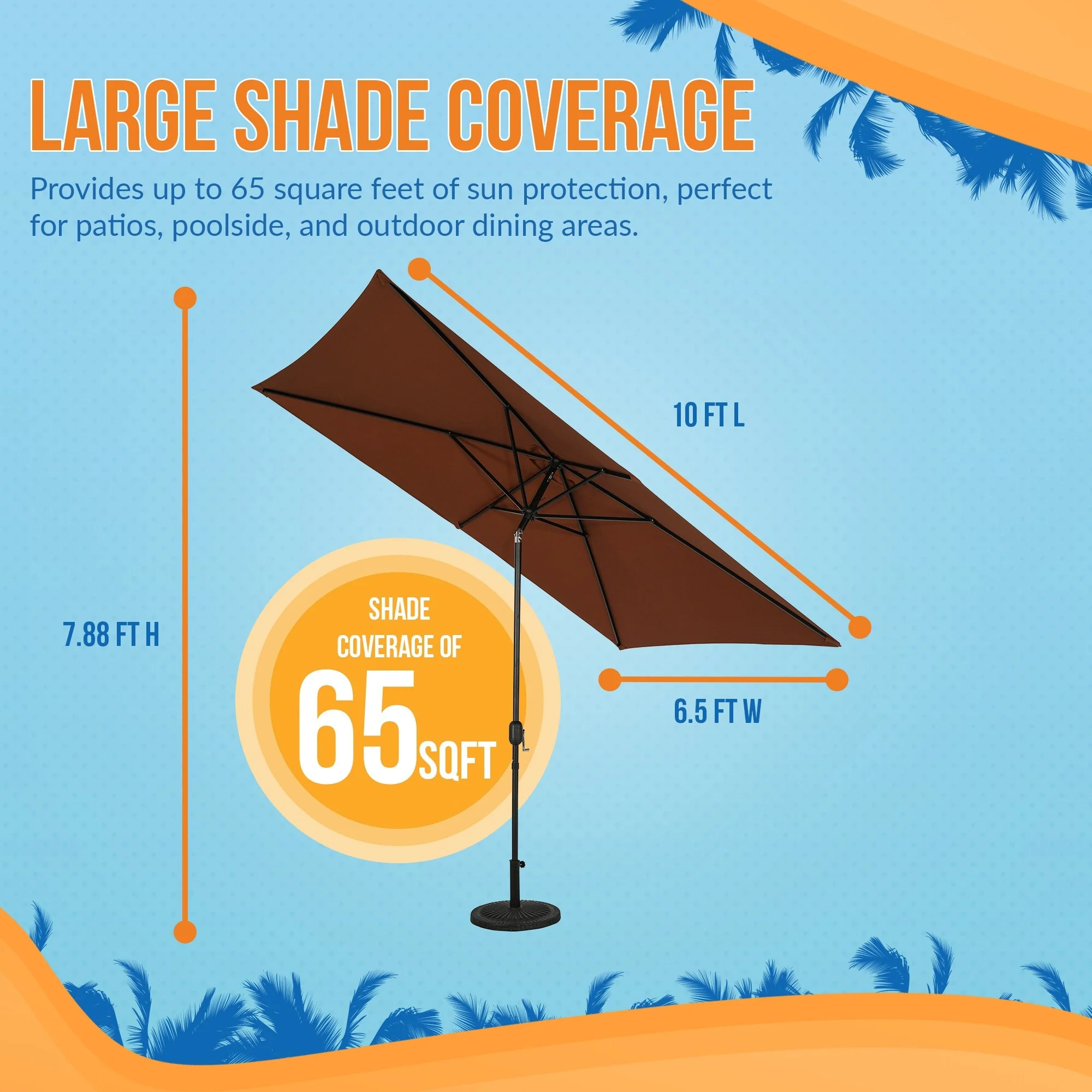 SAFAVIEH Outdoor Karma 6.5 x 10 Ft Rectangle Crank Umbrella