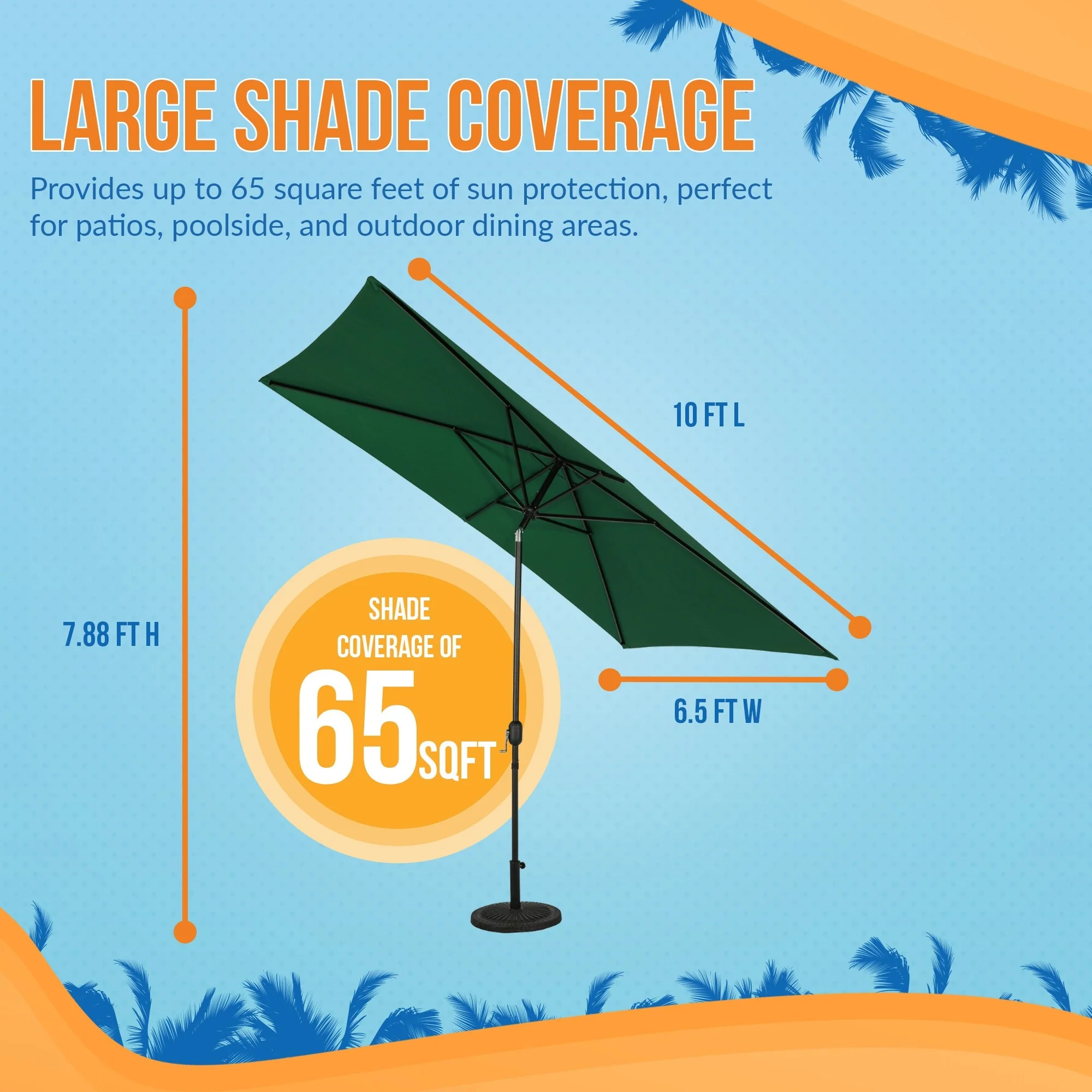 SAFAVIEH Outdoor Living Zimmerman 6.5 x 10 Ft Rectangle Market Umbrella