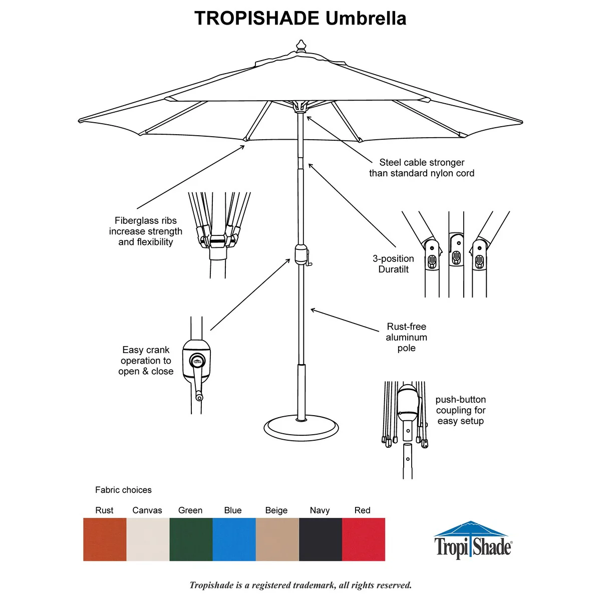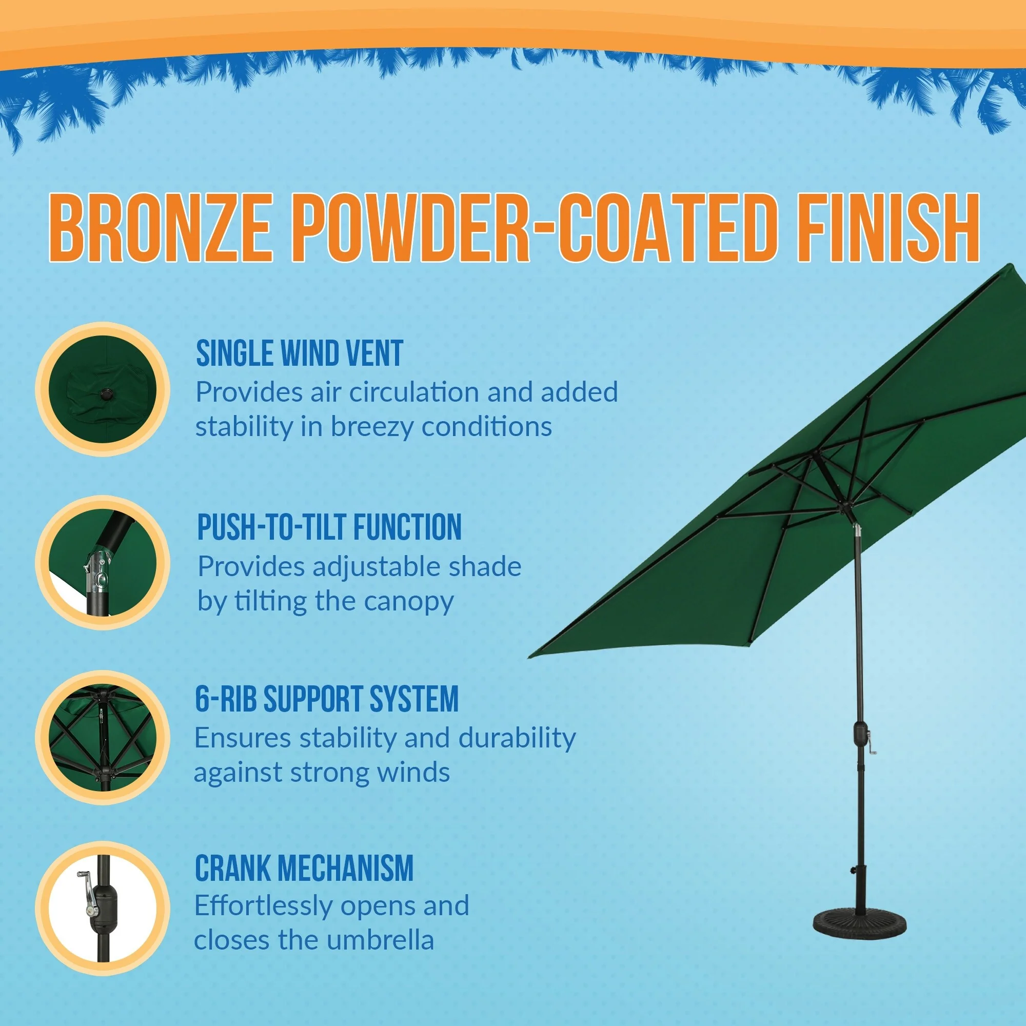 Tropishade Aluminum Patio Umbrella with Green Canopy