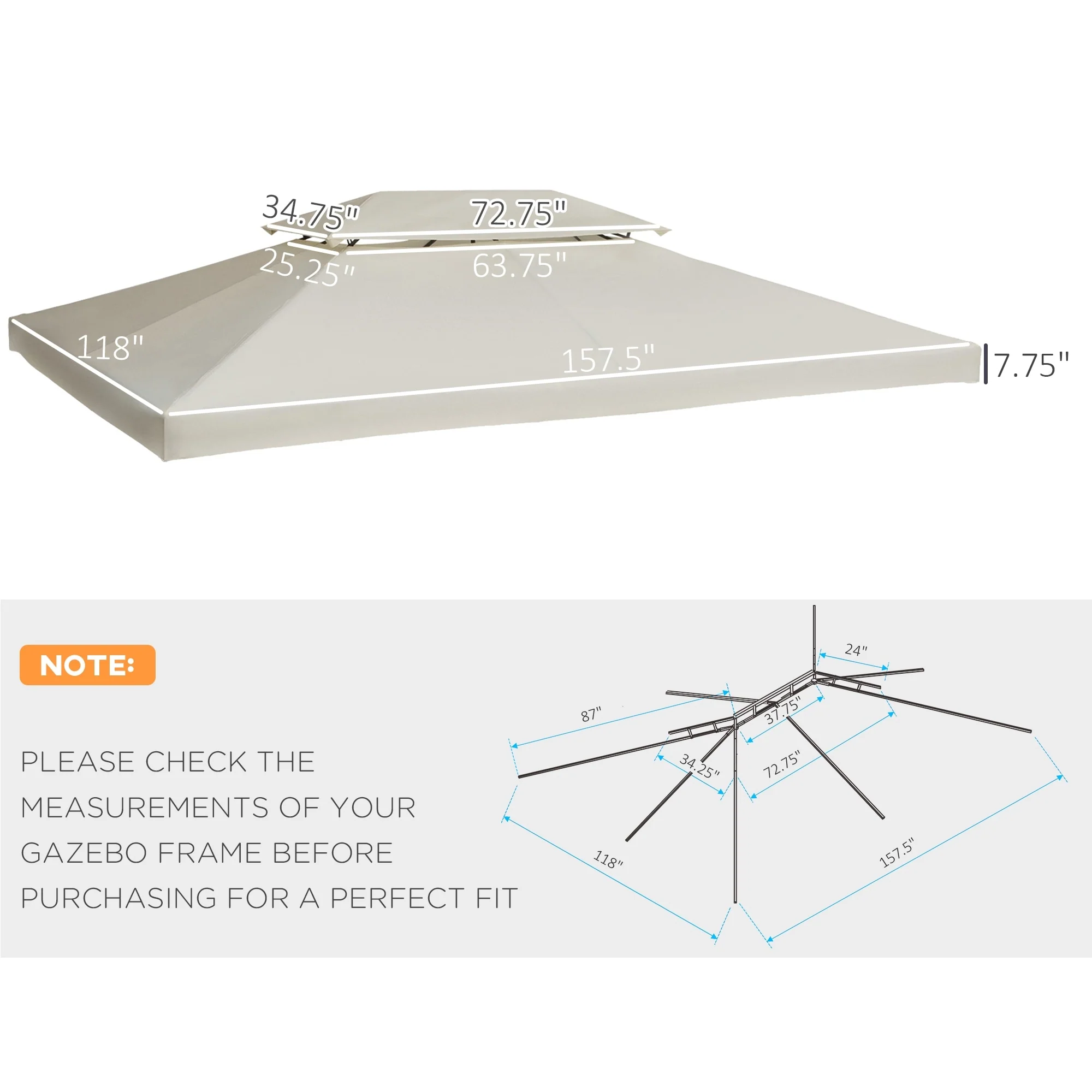 Outsunny 13' x 10' Gazebo Replacement Canopy 2 Tier Top UV Cover Pavilion Garden Patio Outdoor, Cream White (TOP ONLY)
