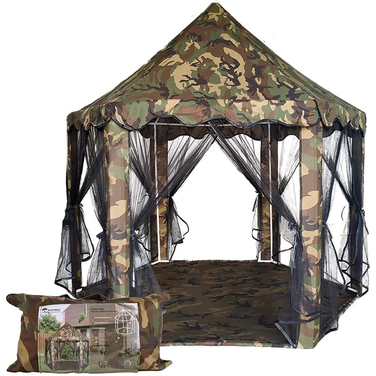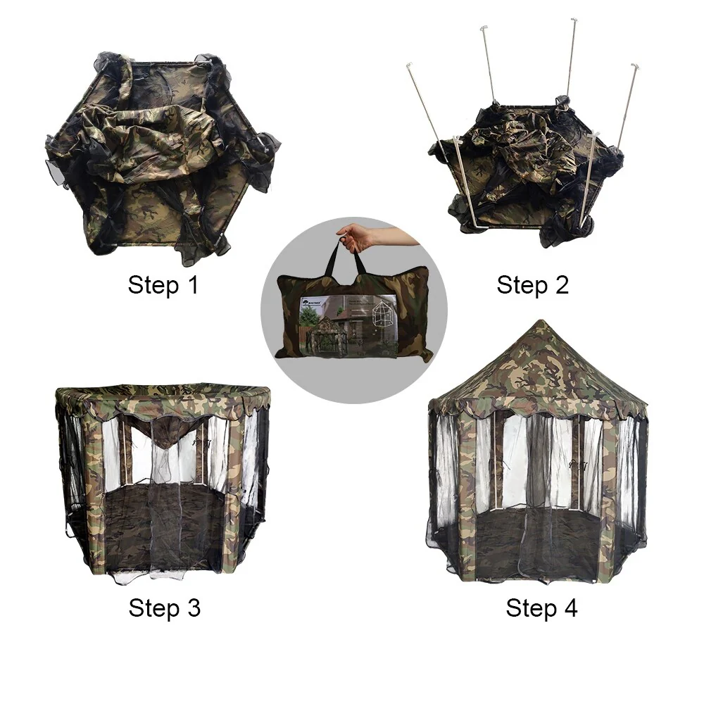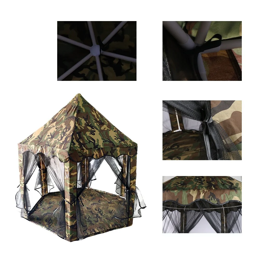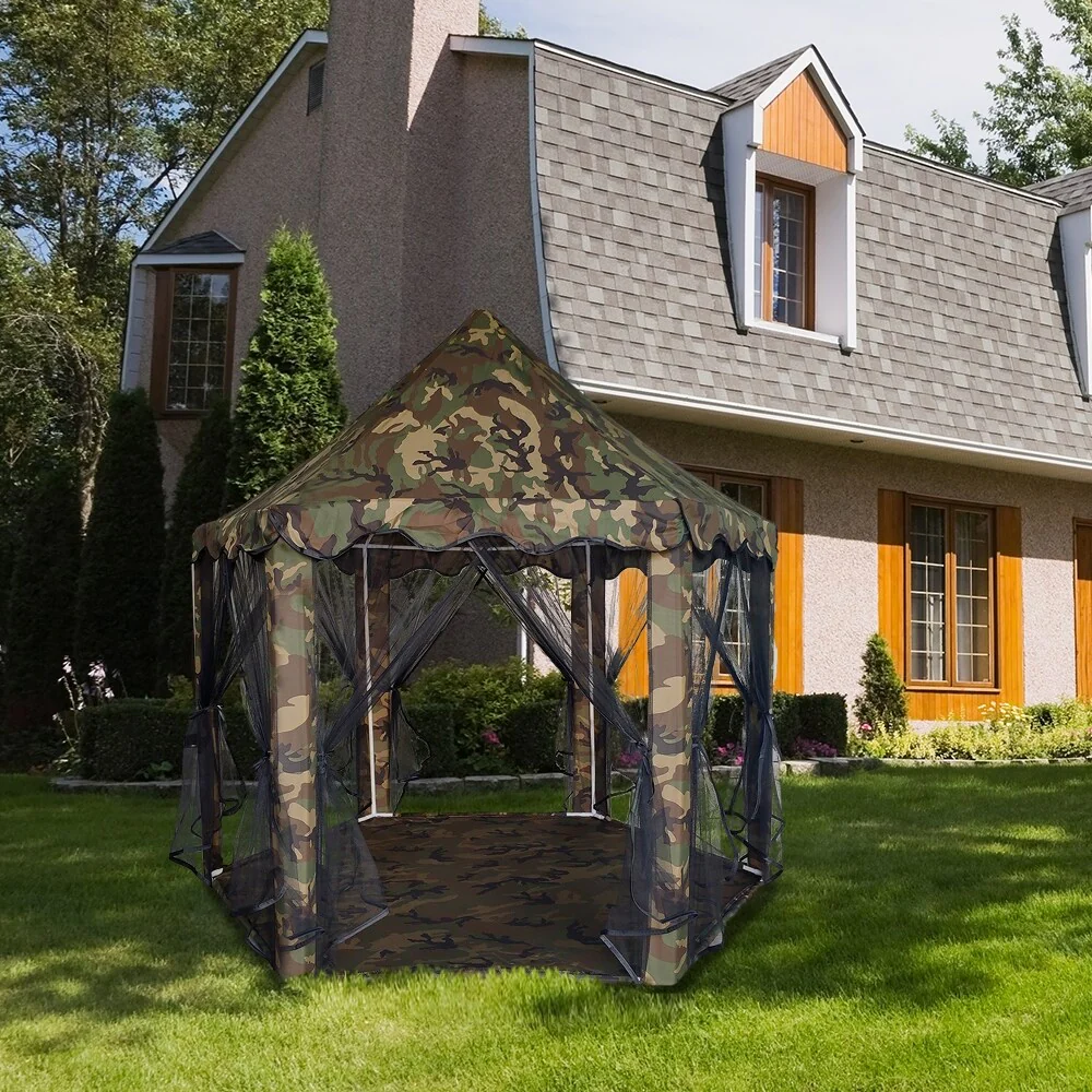 Outdoor Play Tent Children's Hexagon Camping Tent 55x53" Camouflage - �� 55.12" x H 53.15"