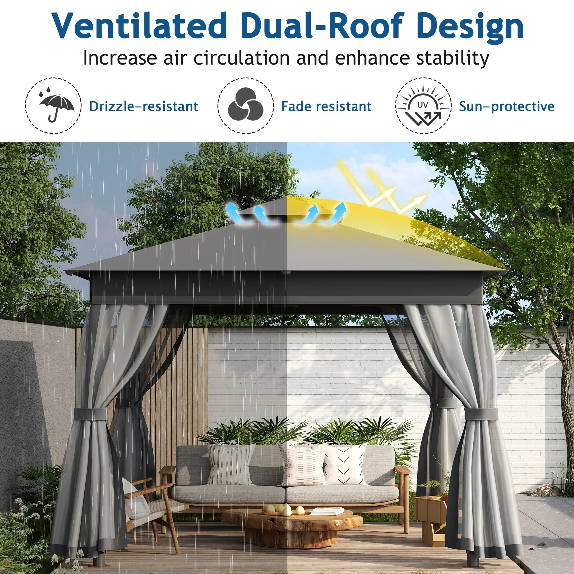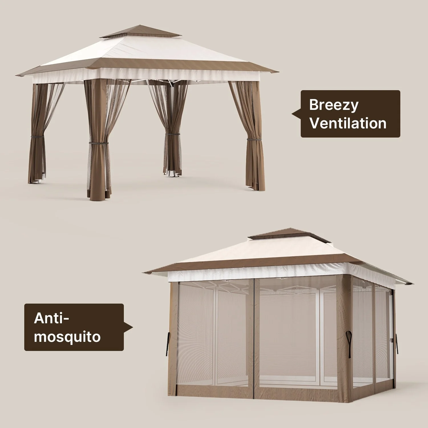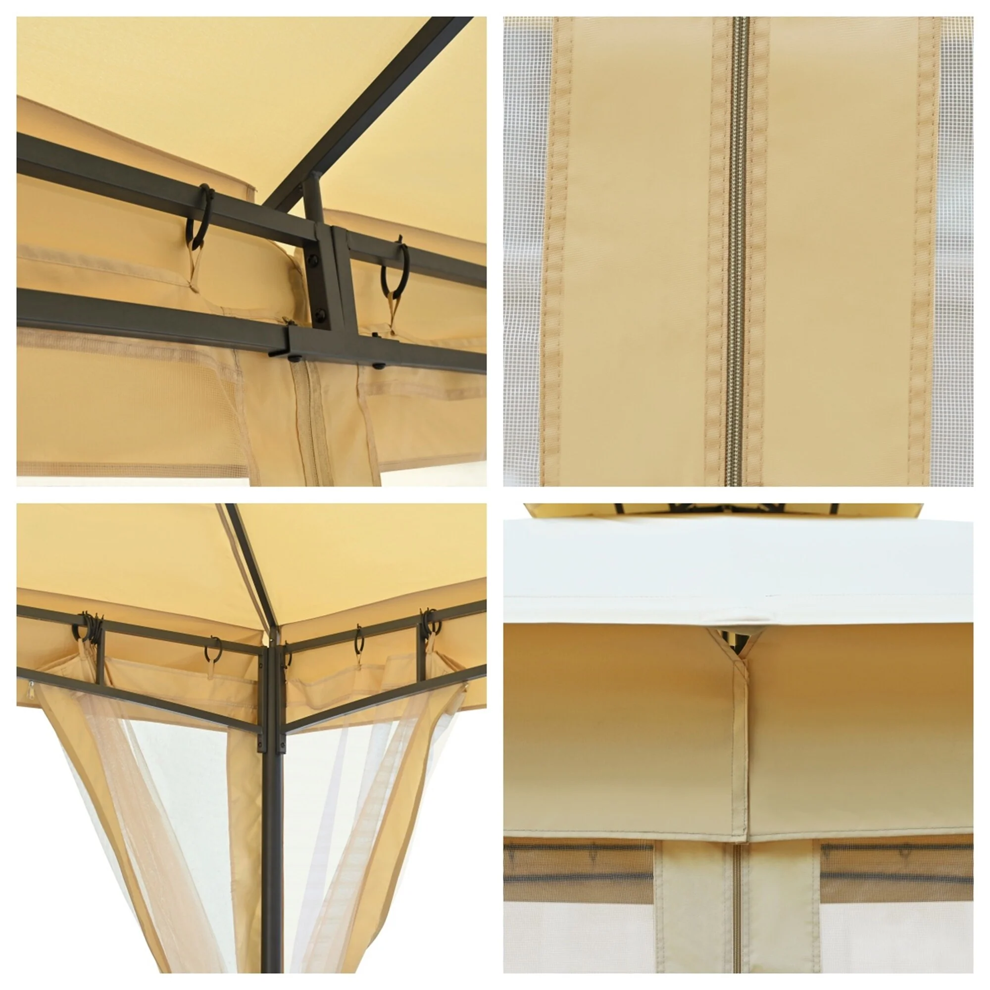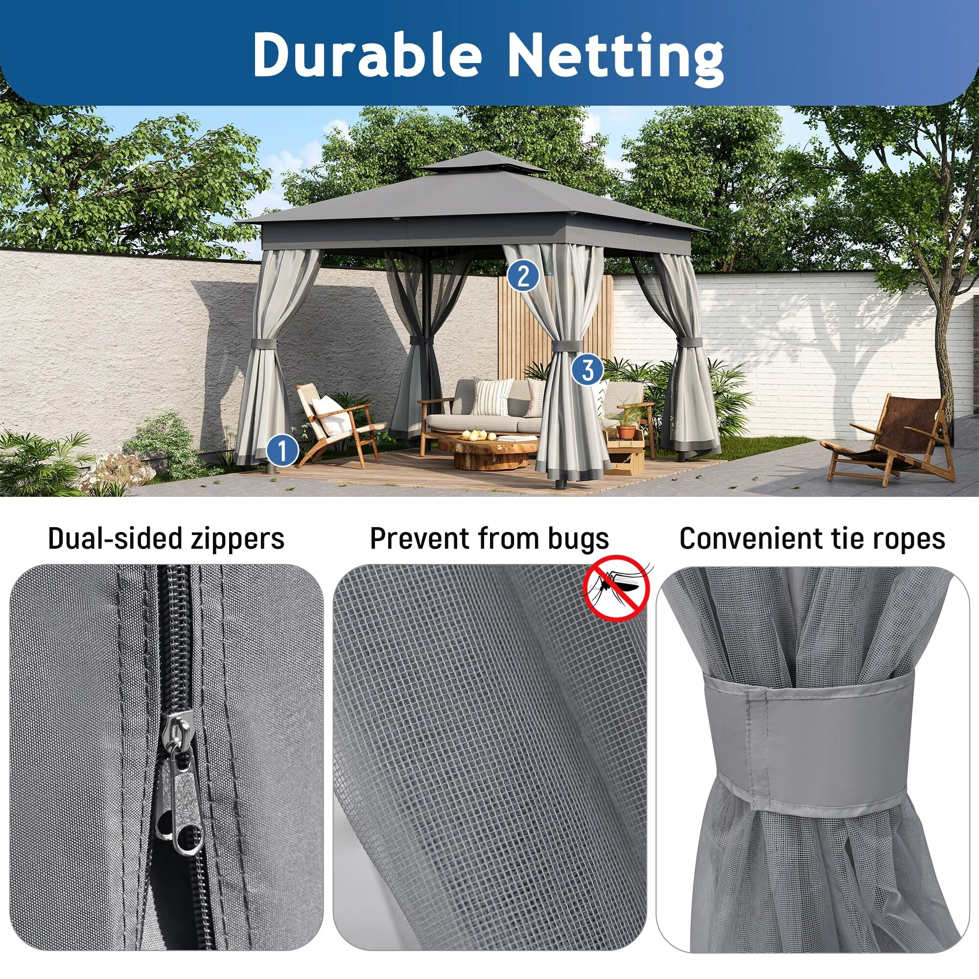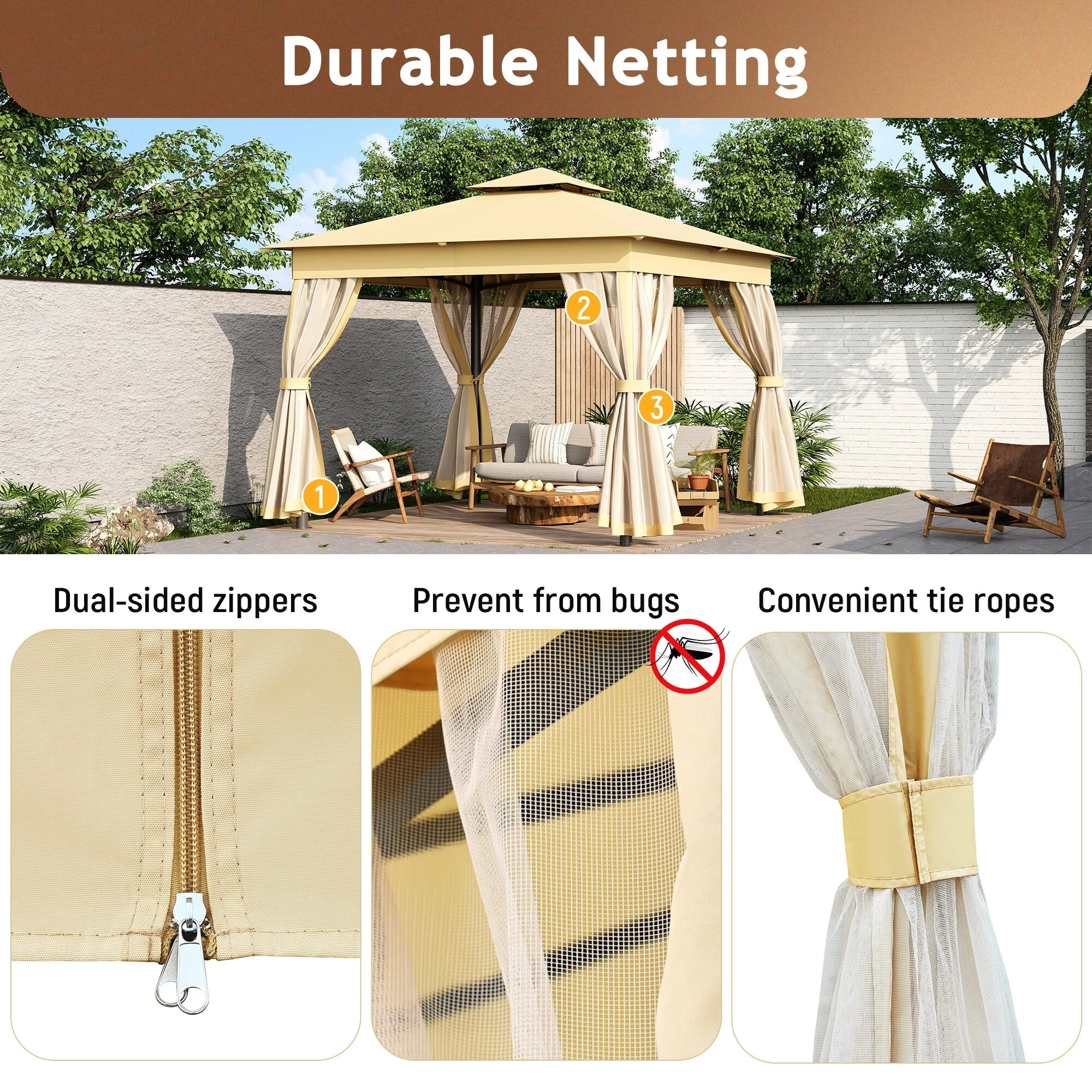 Patio Gazebo Tent with Double Roofs and Mosquito Netting for Backyard